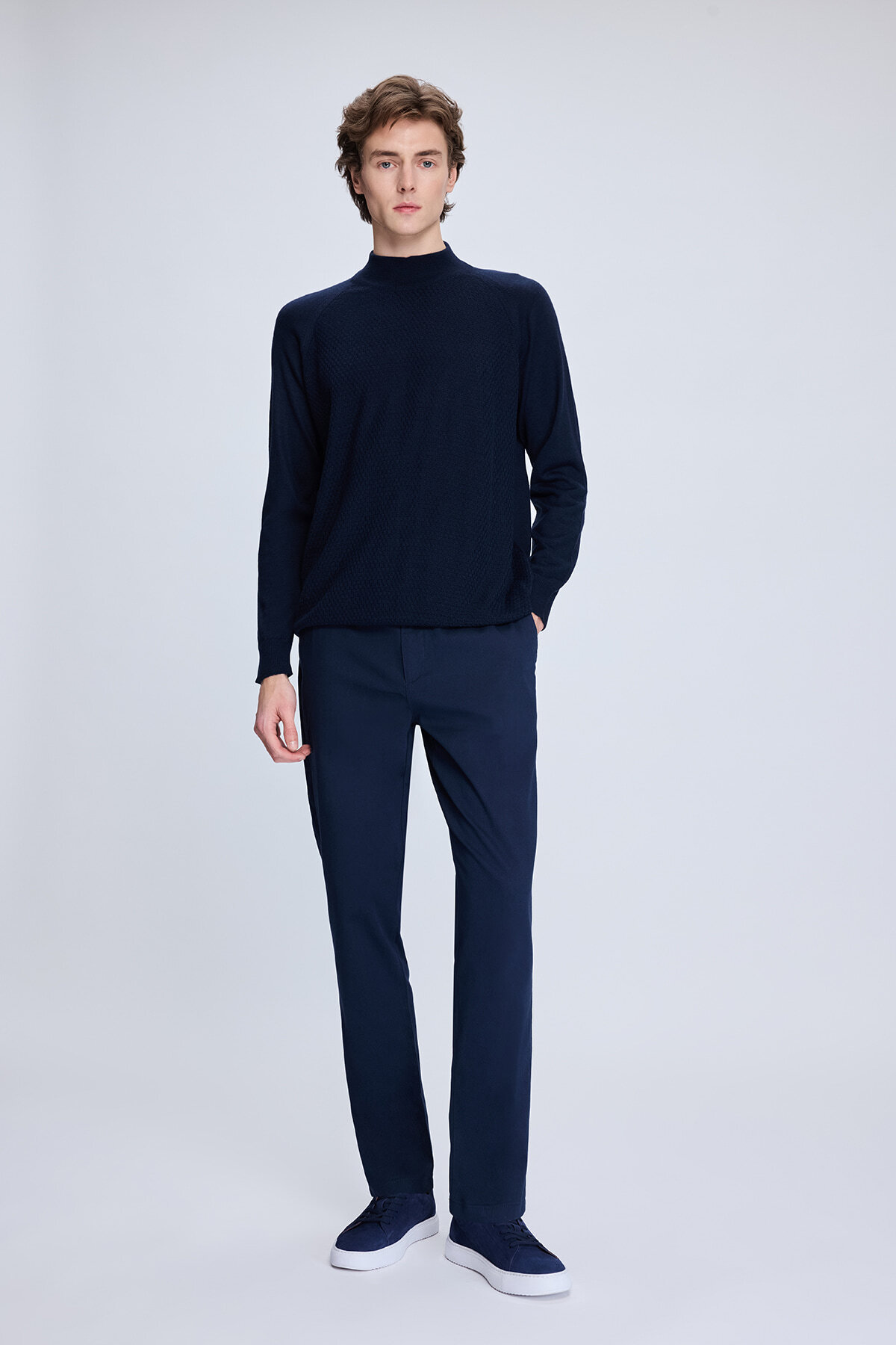Lacivert Regular Fit Jakarlı Yarım Balıkçı Yaka Yünlü Kazak
