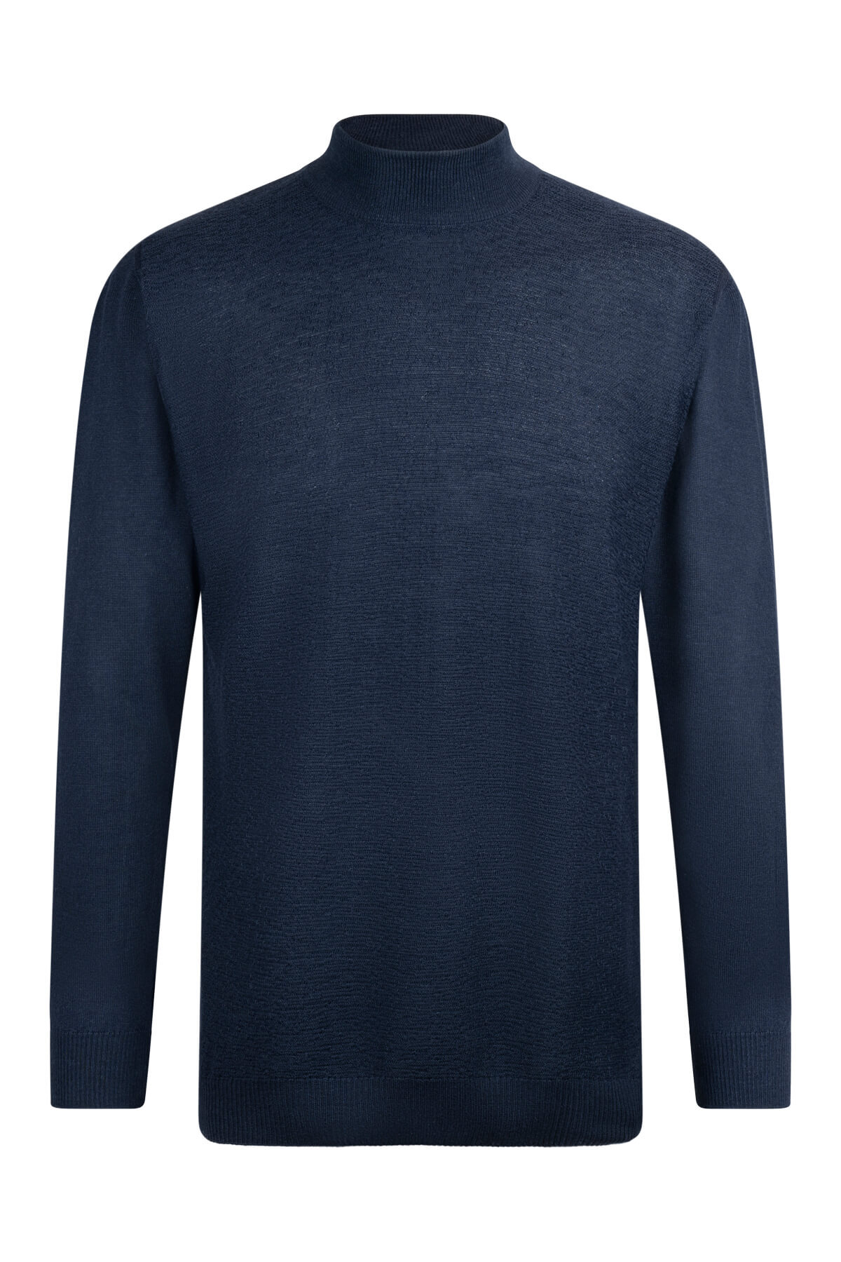 Lacivert Regular Fit Jakarlı Yarım Balıkçı Yaka Yünlü Kazak