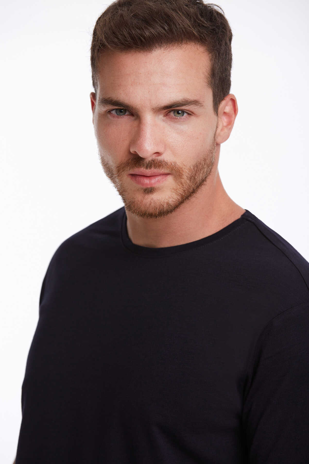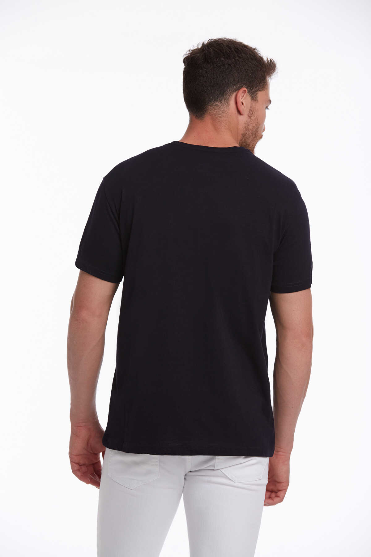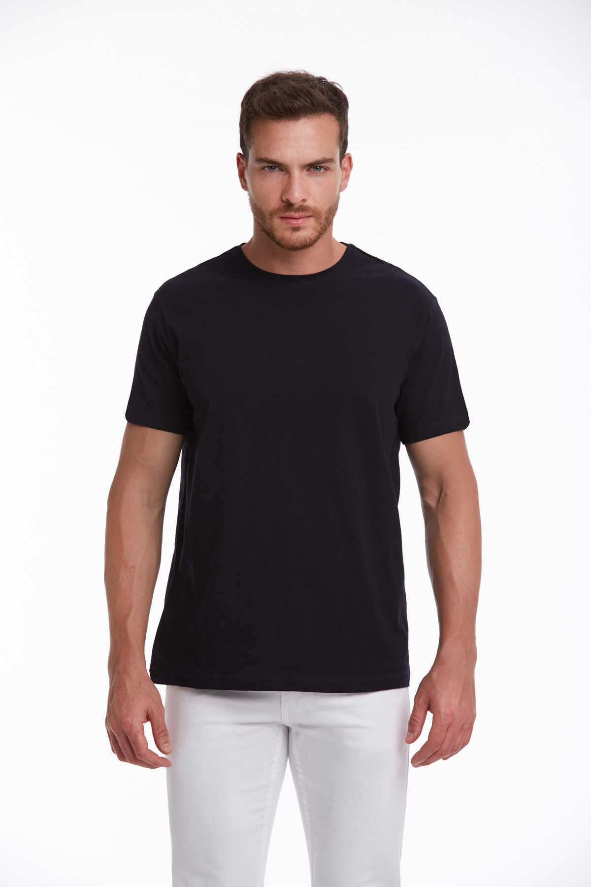 Lacivert Slim Fit 100% Pamuk Bisiklet Yaka Tişört