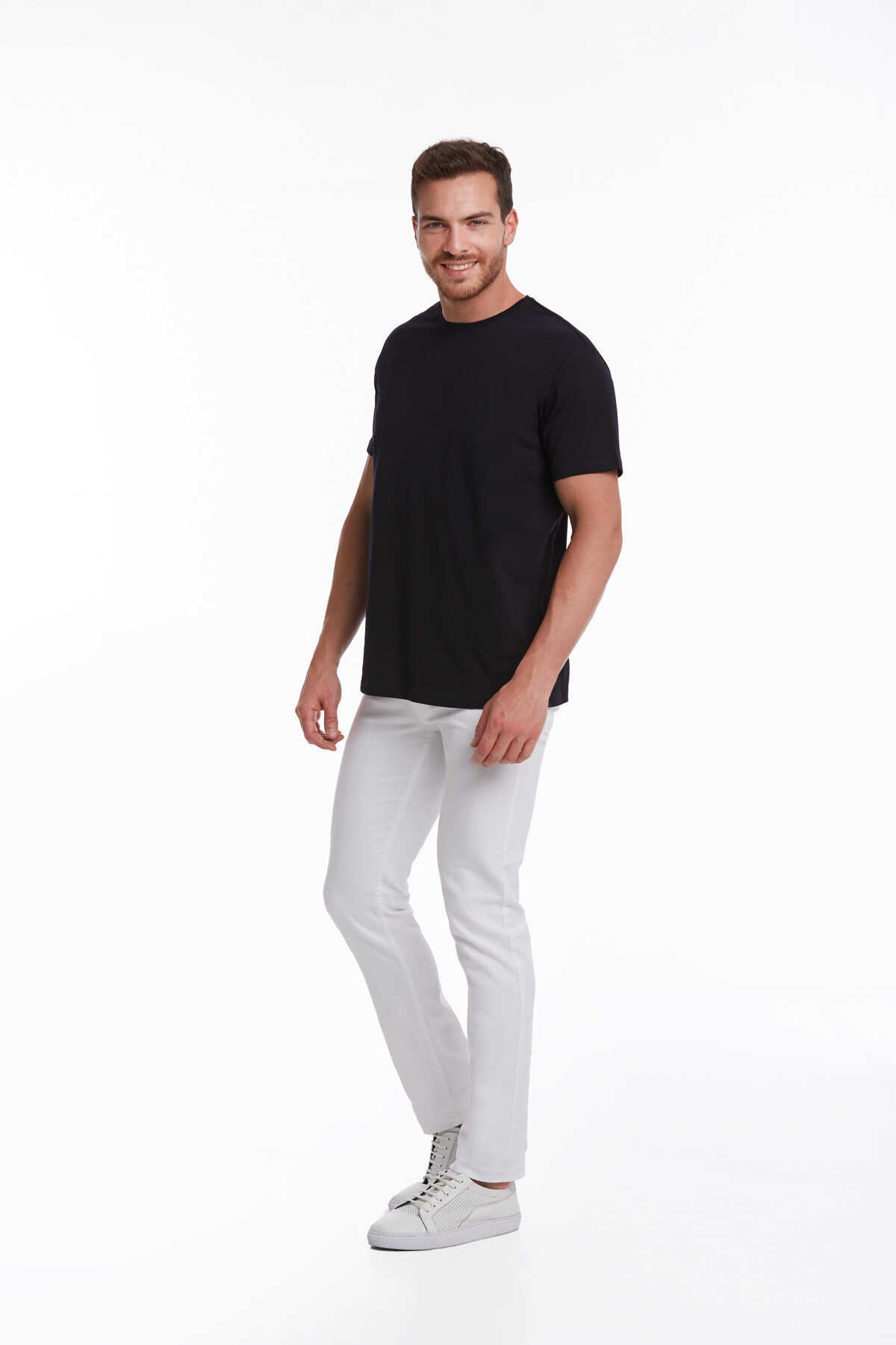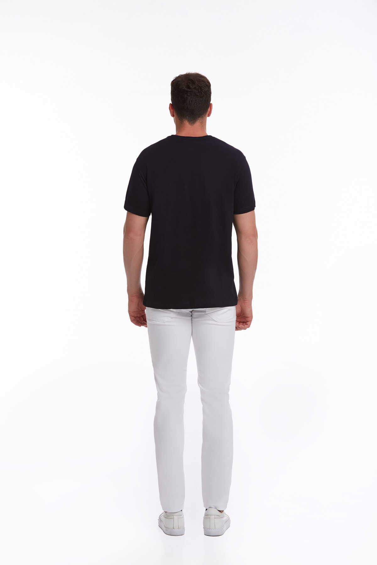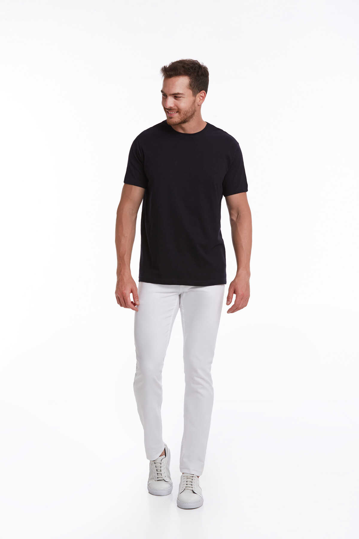 Lacivert Slim Fit 100% Pamuk Bisiklet Yaka Tişört