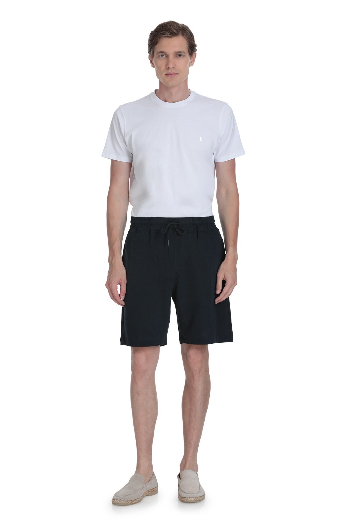 Lacivert Regular Fit Pamuklu Basic Örme Yandan Cepli Şort - 5