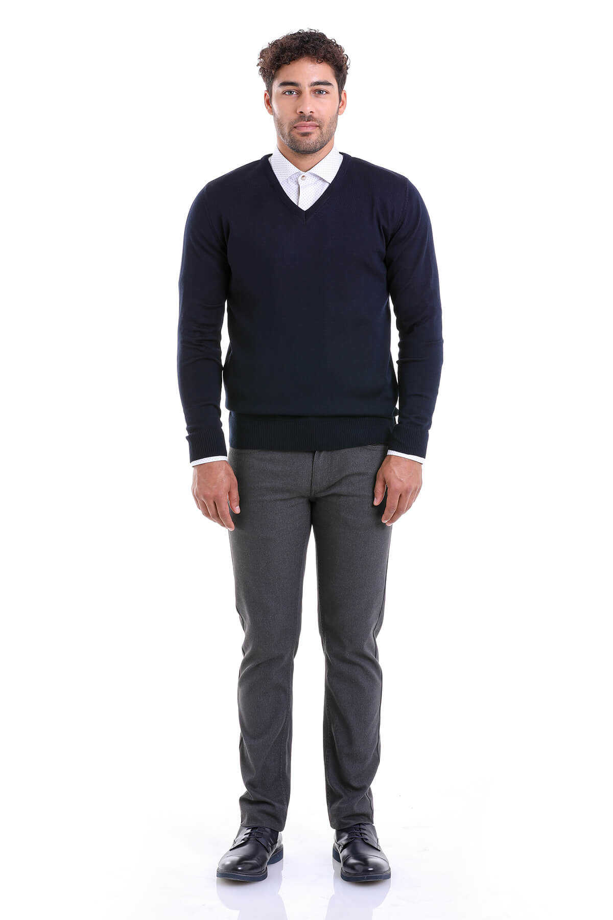 Lacivert Comfort Fit V Yaka Yünlü Kazak