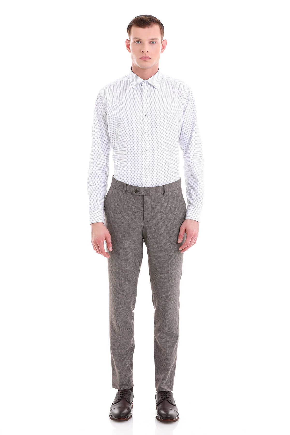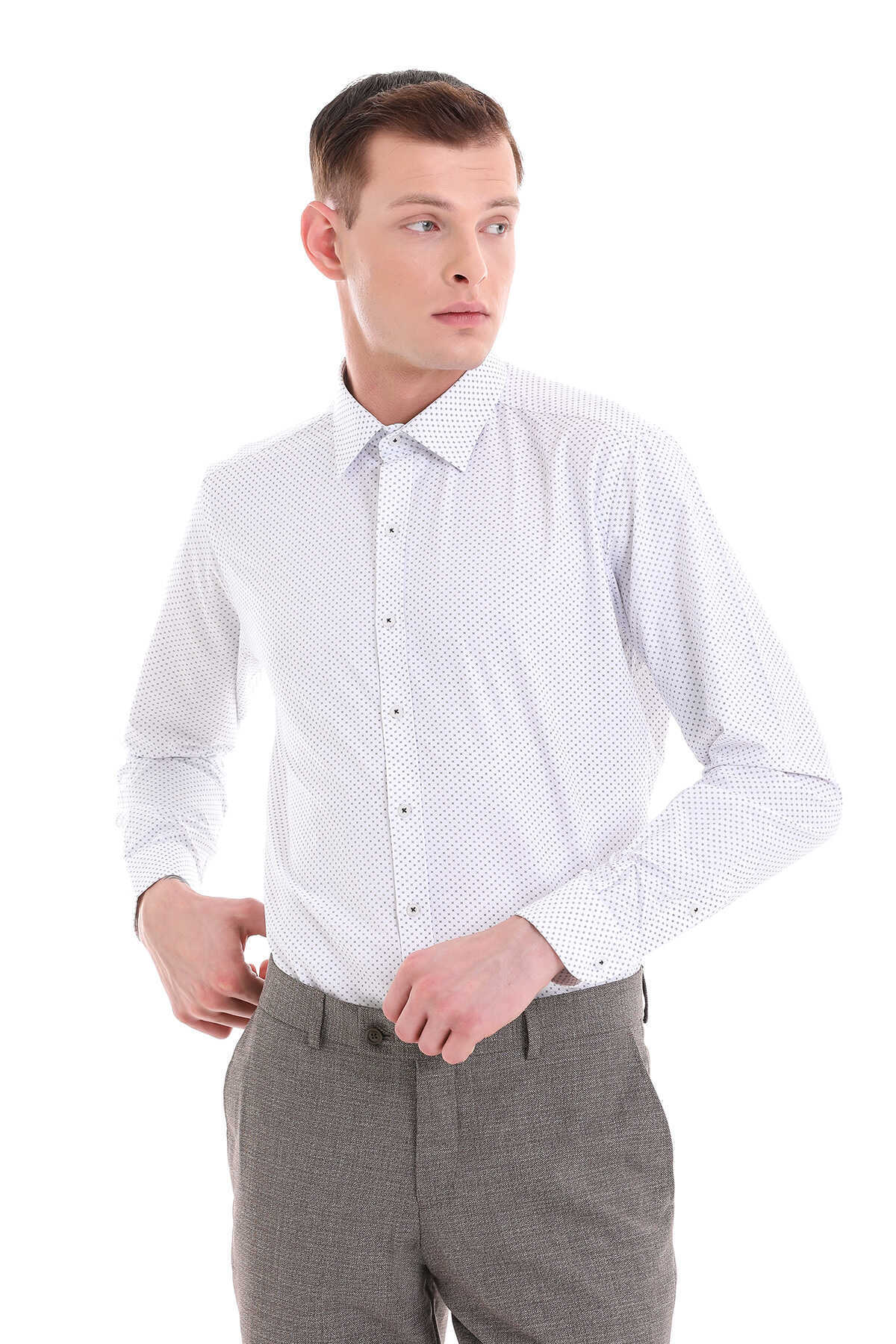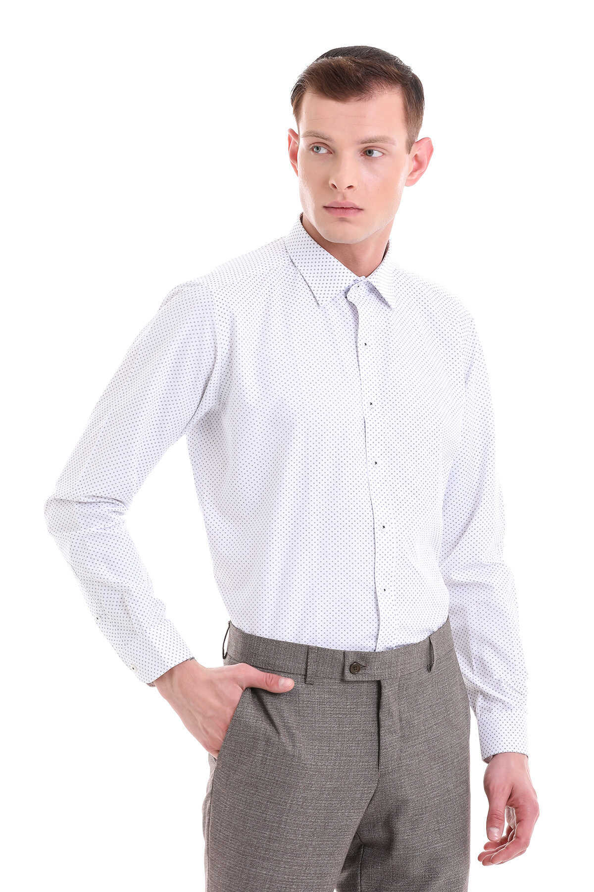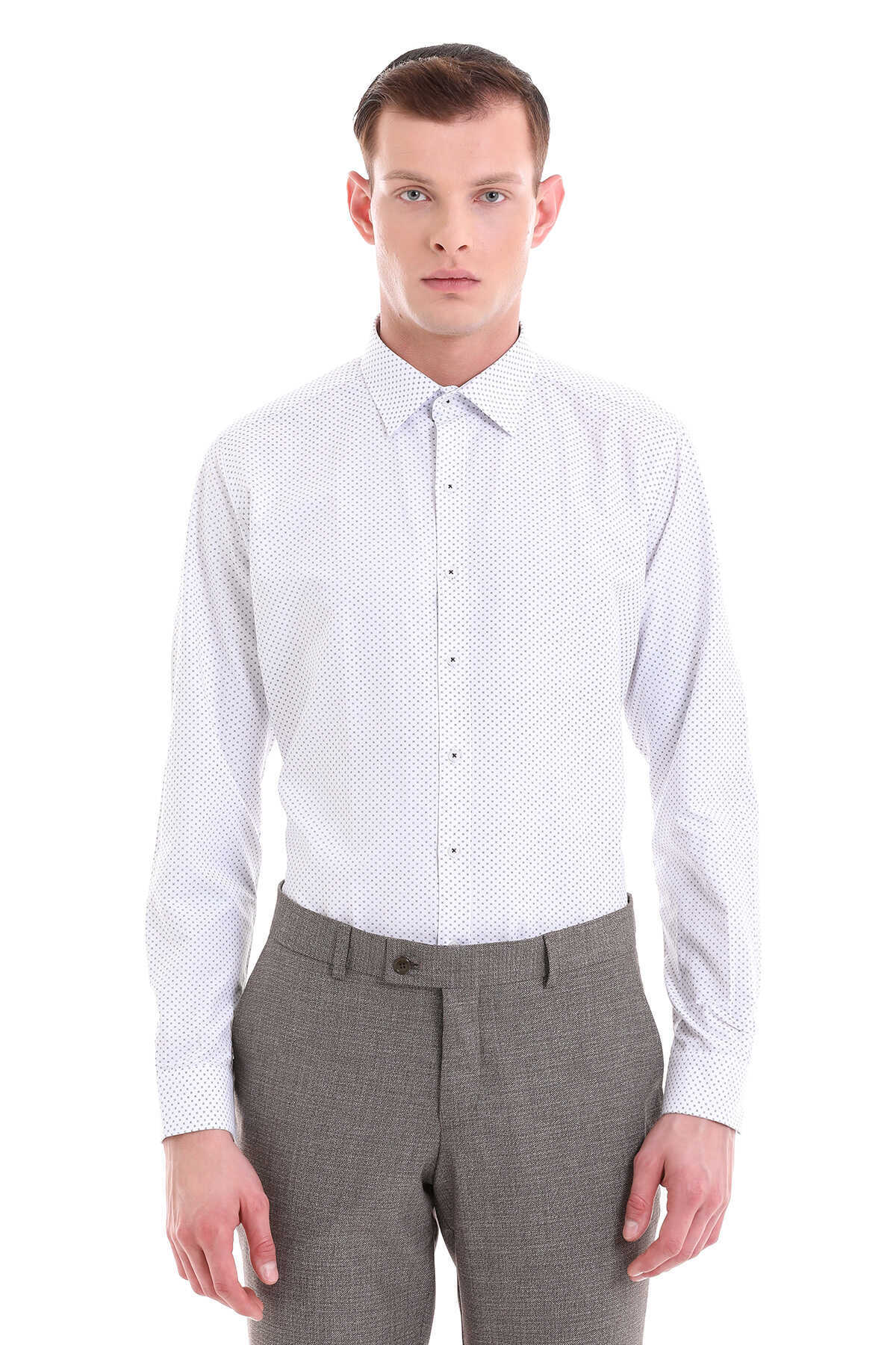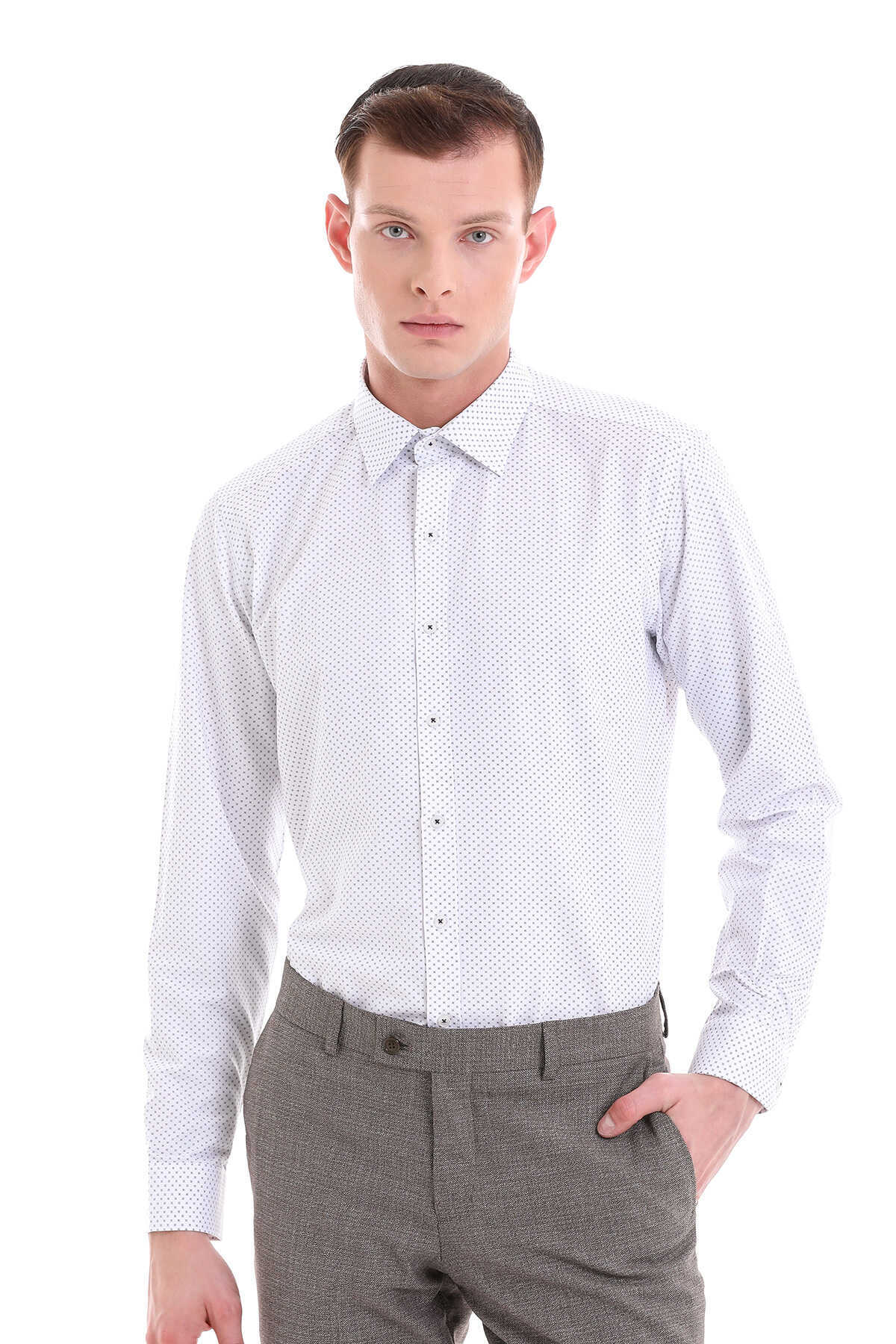 Beyaz Slim Fit Baskılı Pamuklu Slim Yaka Uzun Kollu Klasik Gömlek