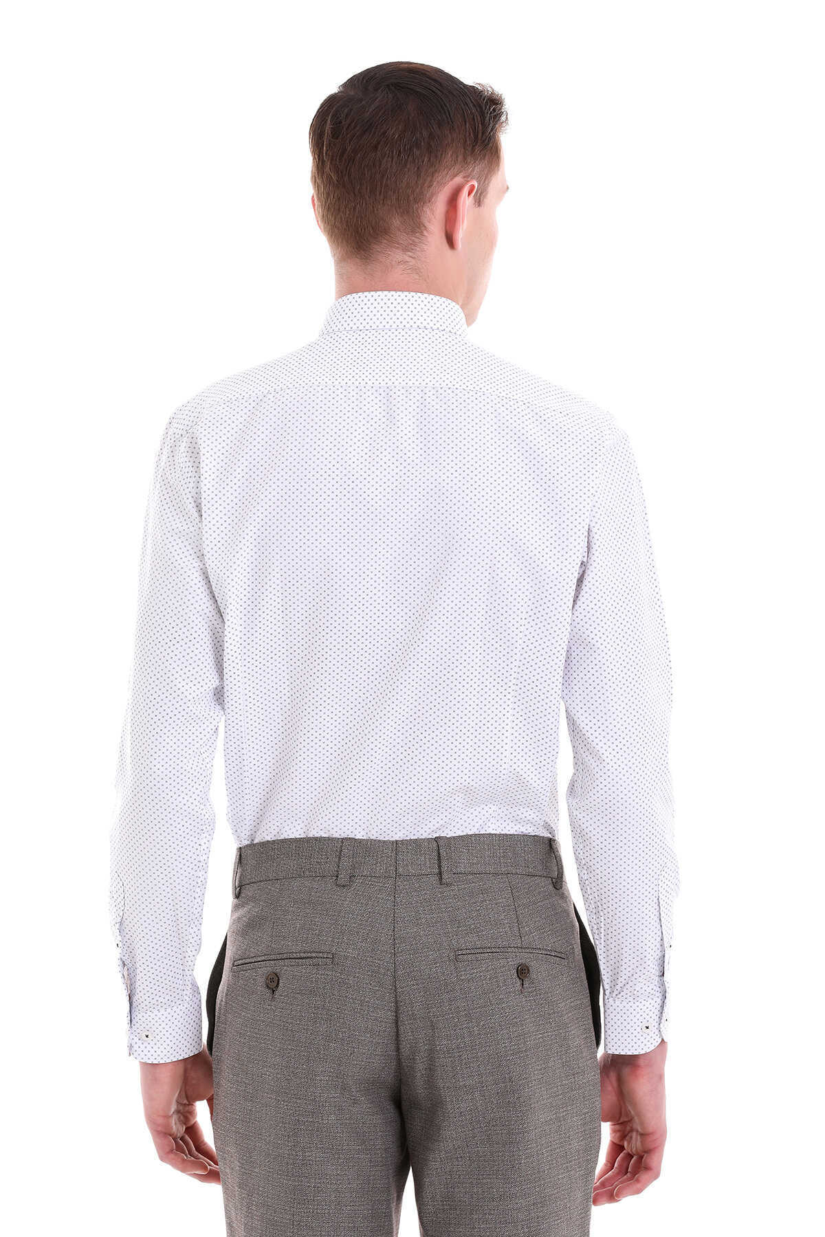 Beyaz Slim Fit Baskılı Pamuklu Slim Yaka Uzun Kollu Klasik Gömlek - 7