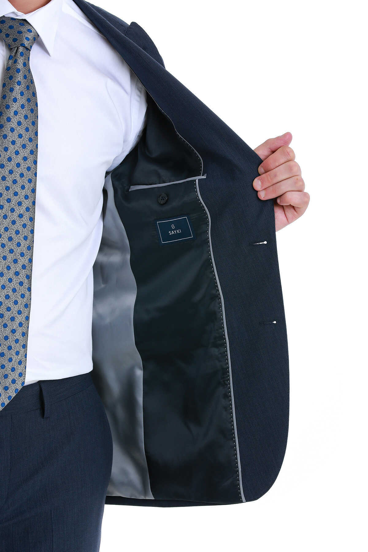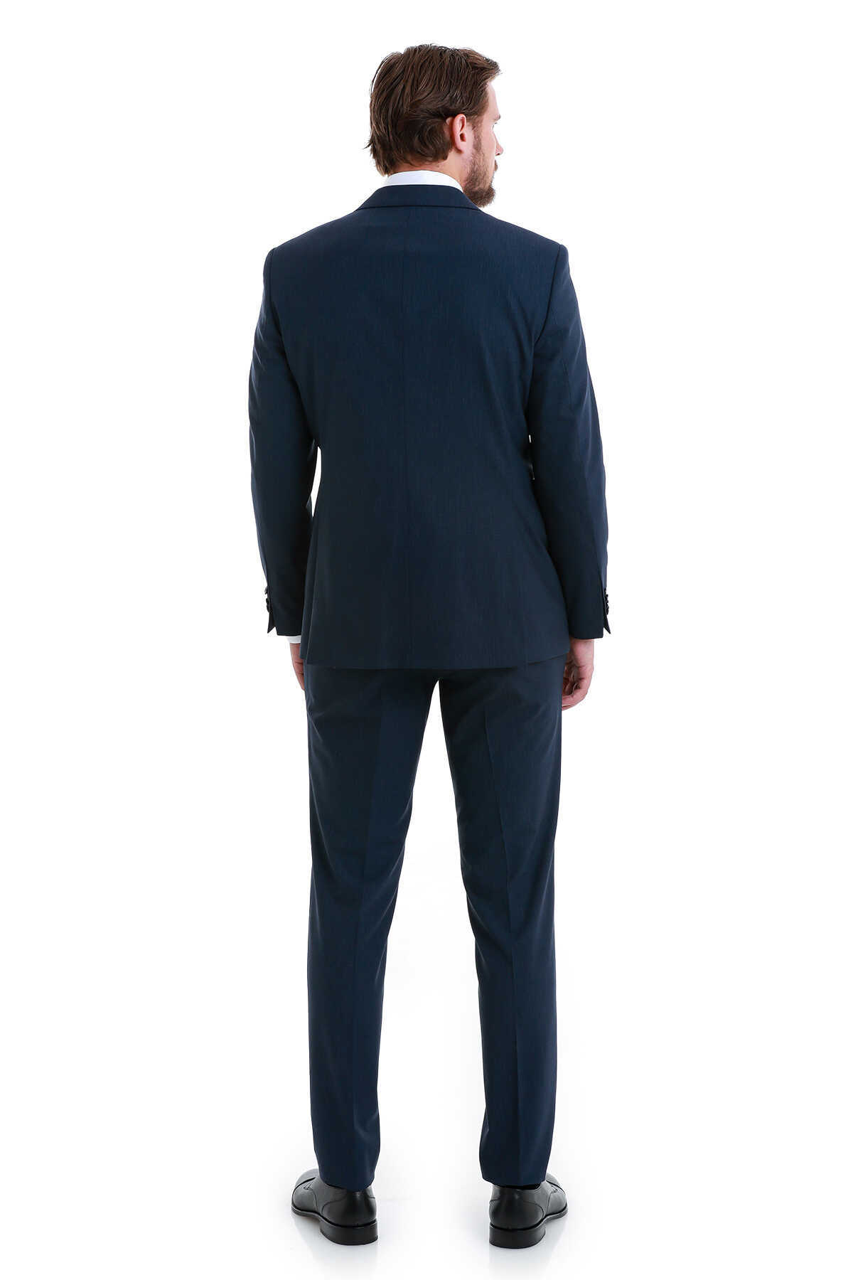 Lacivert Slim Fit Çizgili Sivri Yaka Klasik Takım Elbise - 7