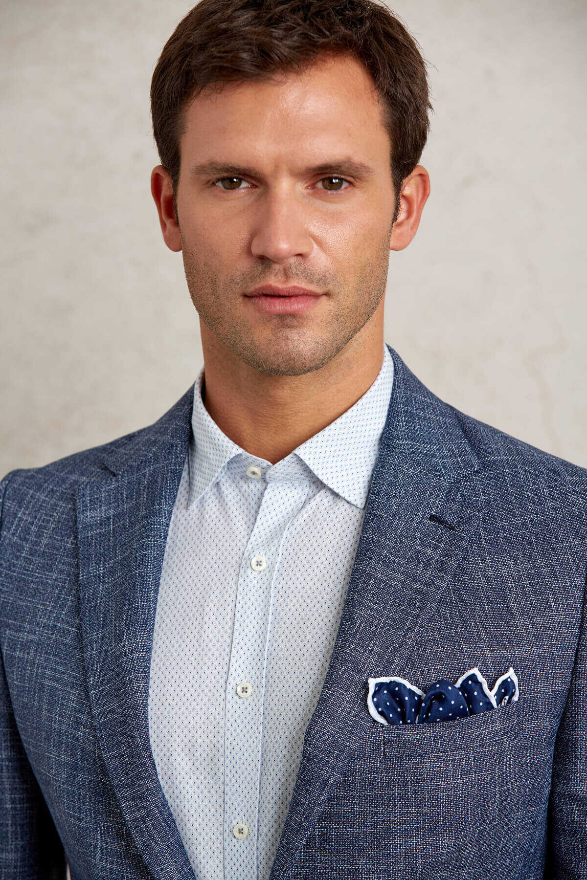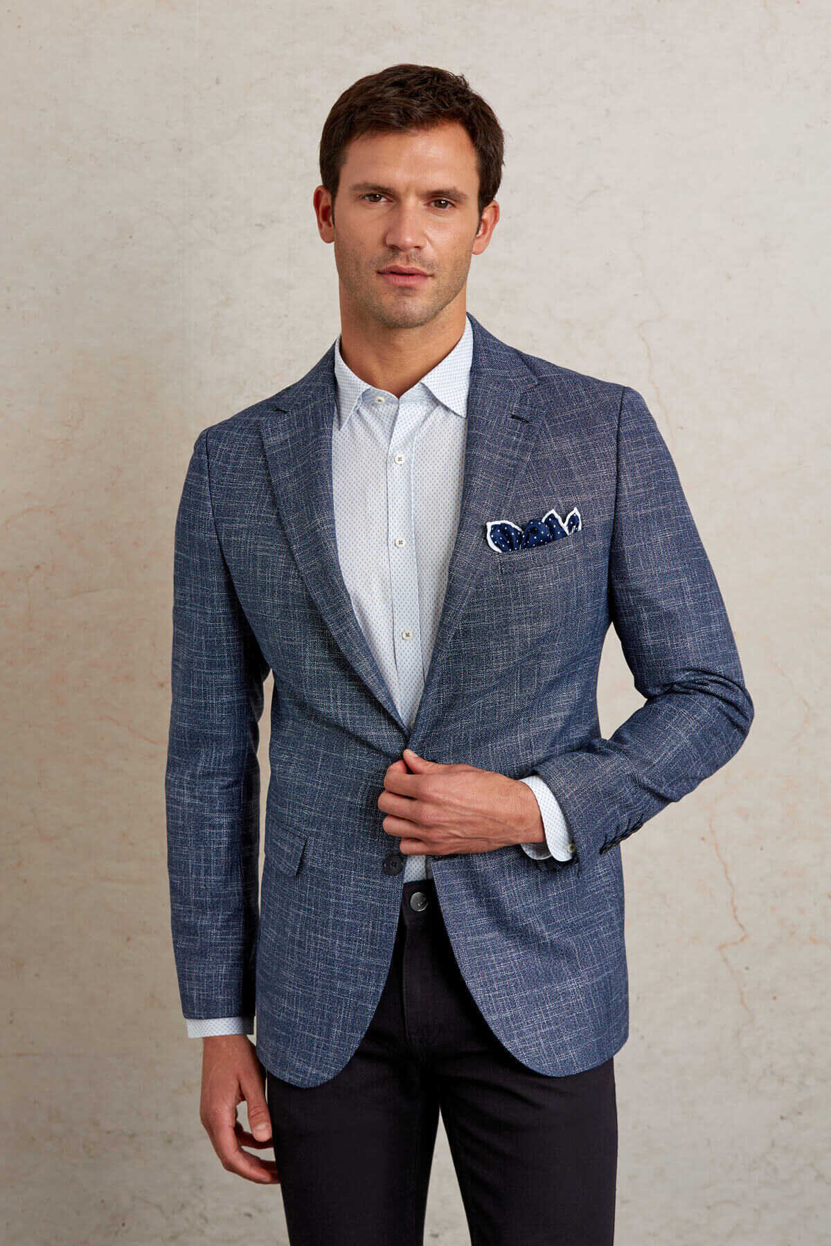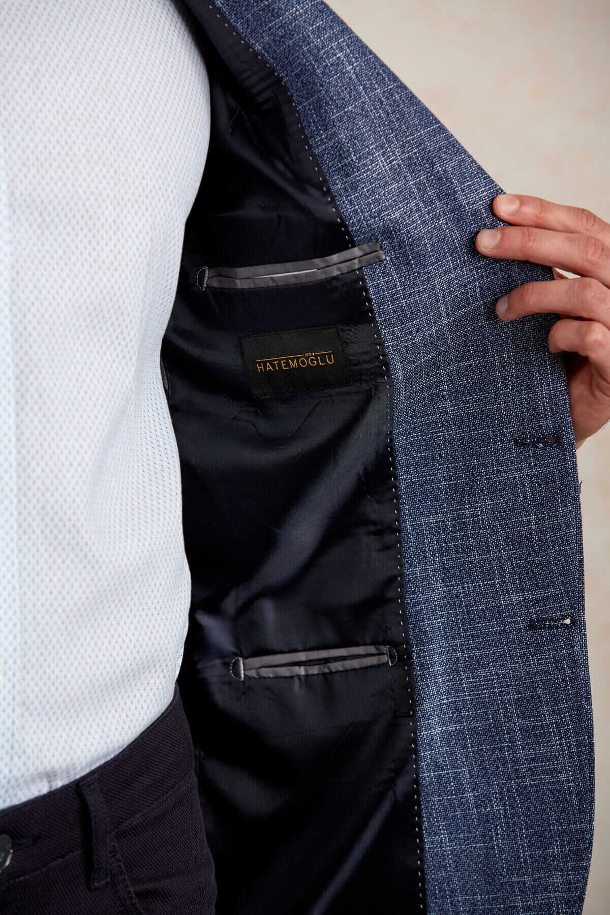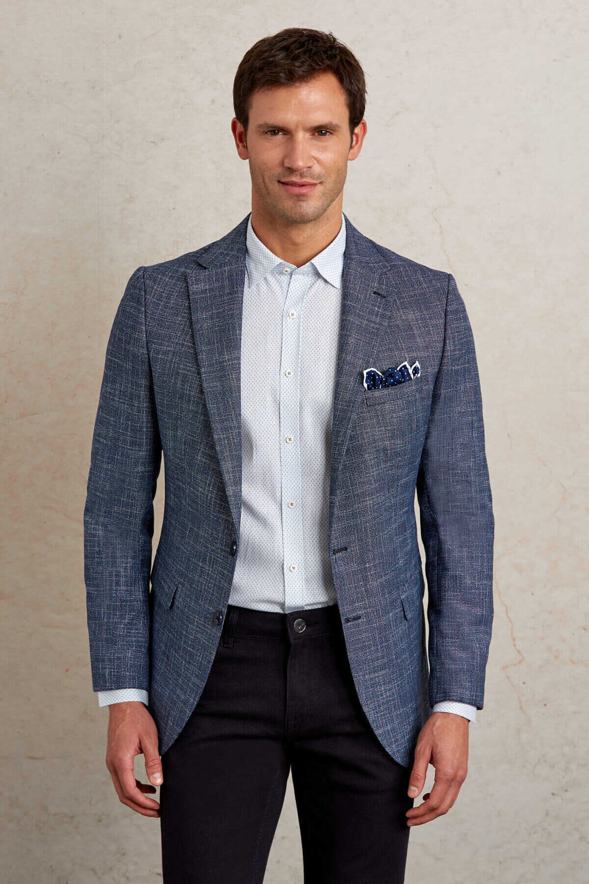 Lacivert Slim Fit Desenli Mono Yaka Casual Ceket