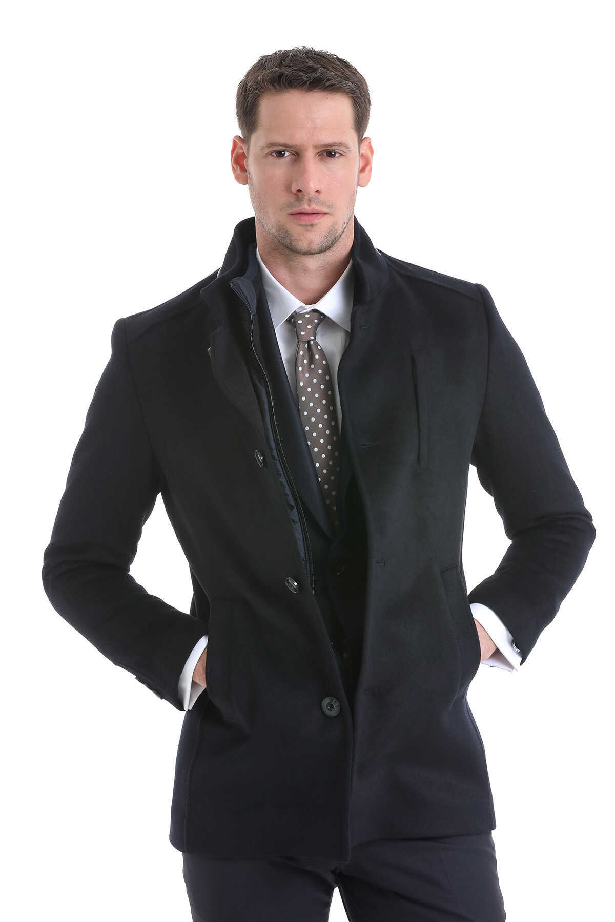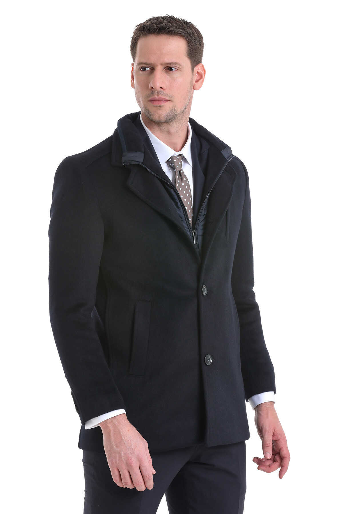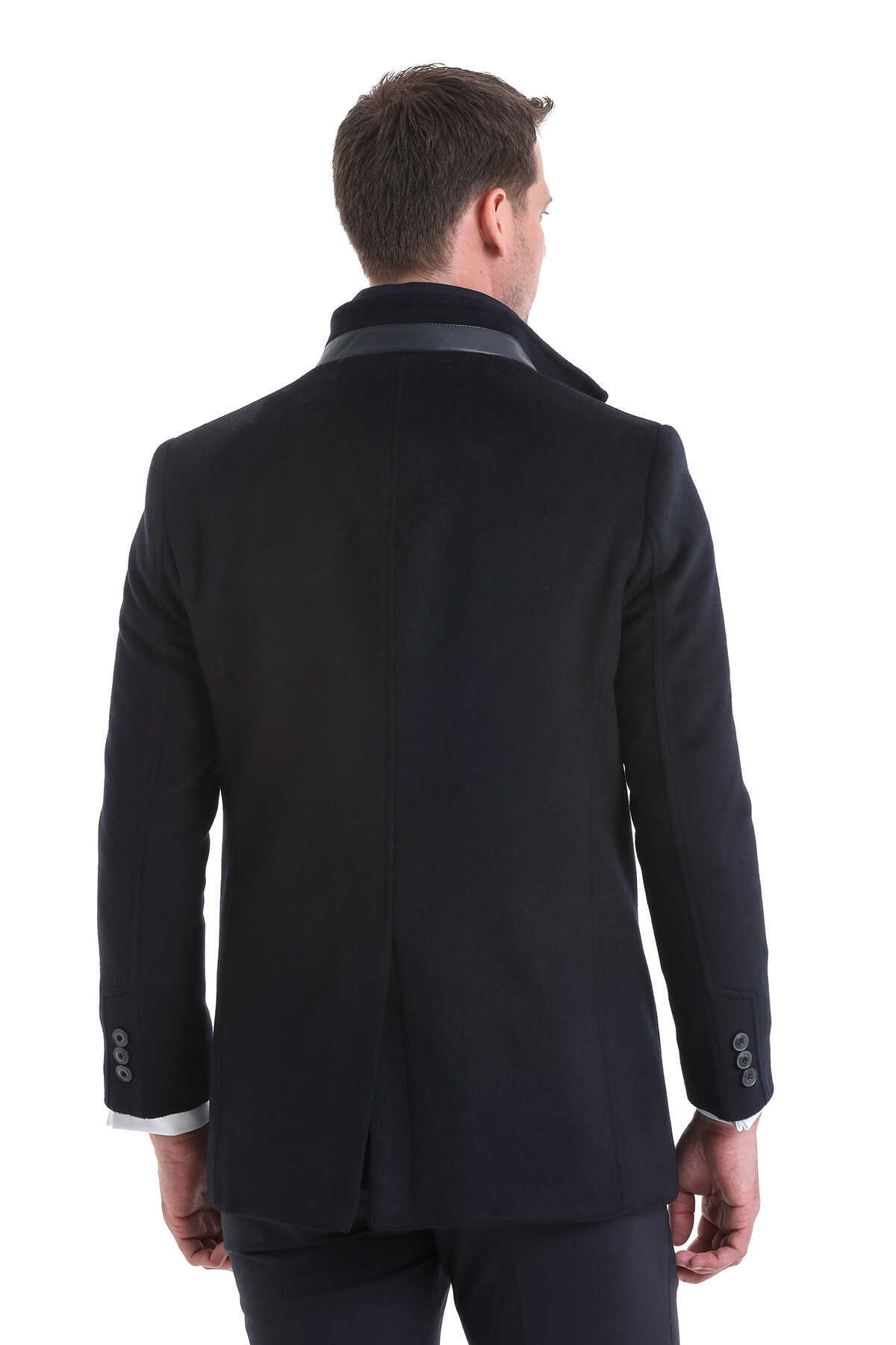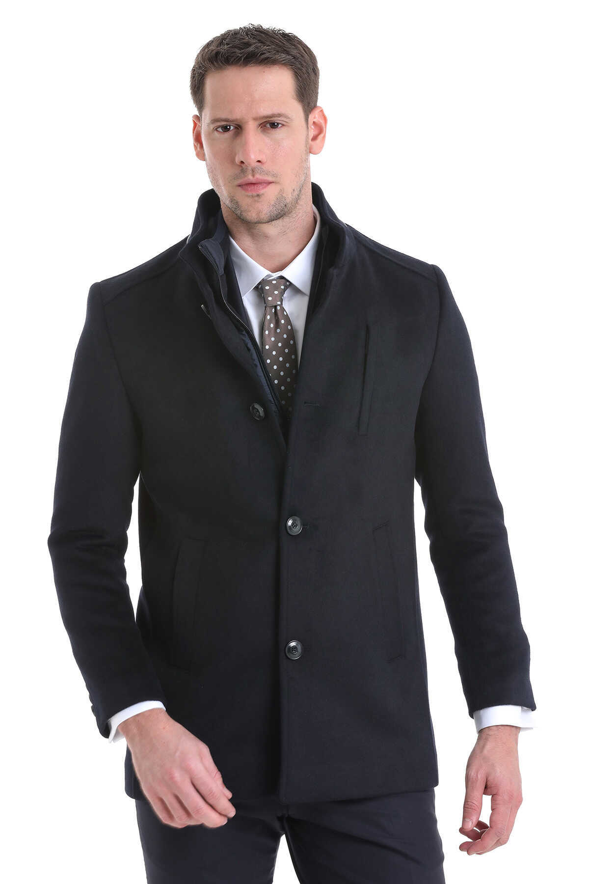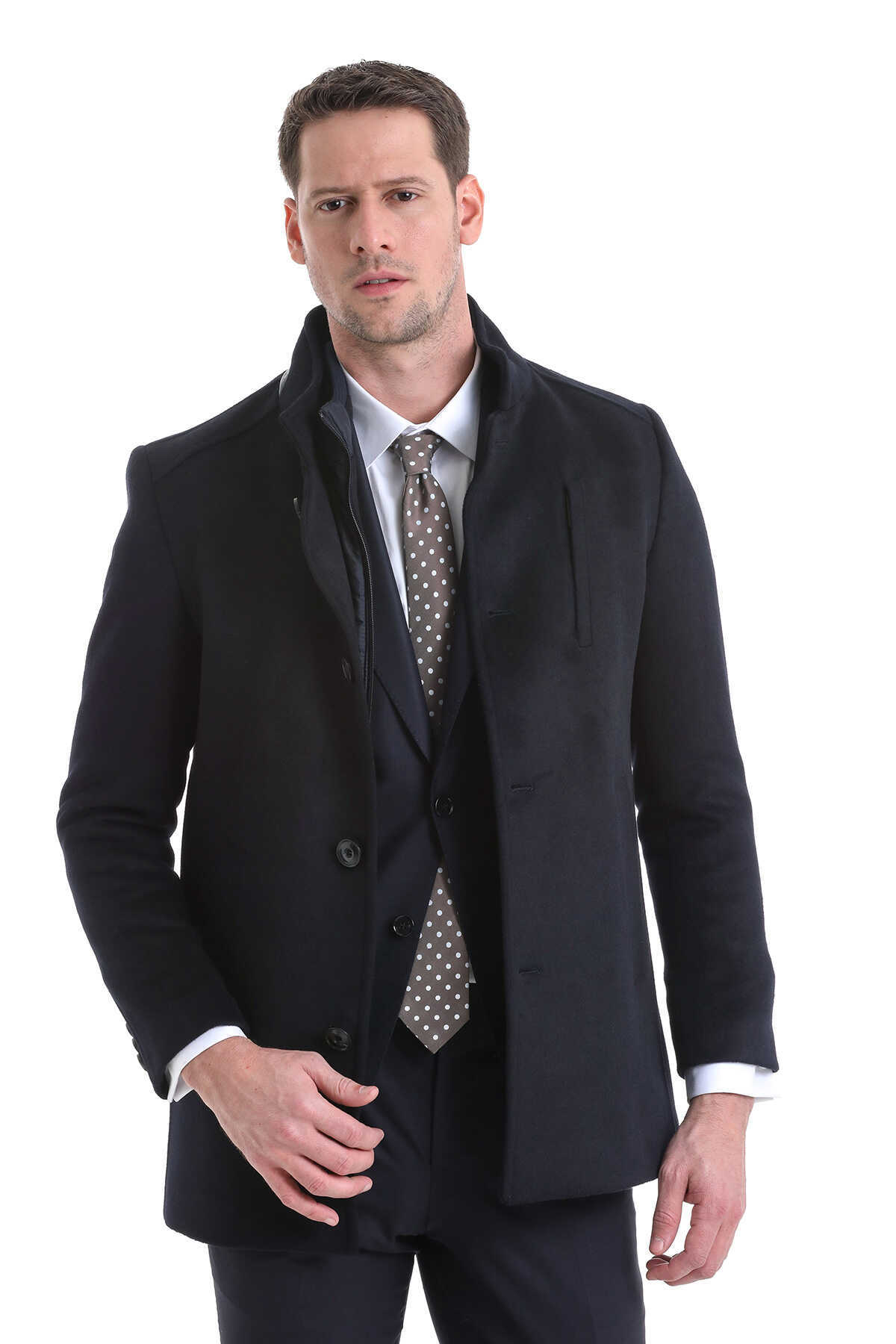 Lacivert Slim Fit Hakim Yaka Yünlü Basic Palto