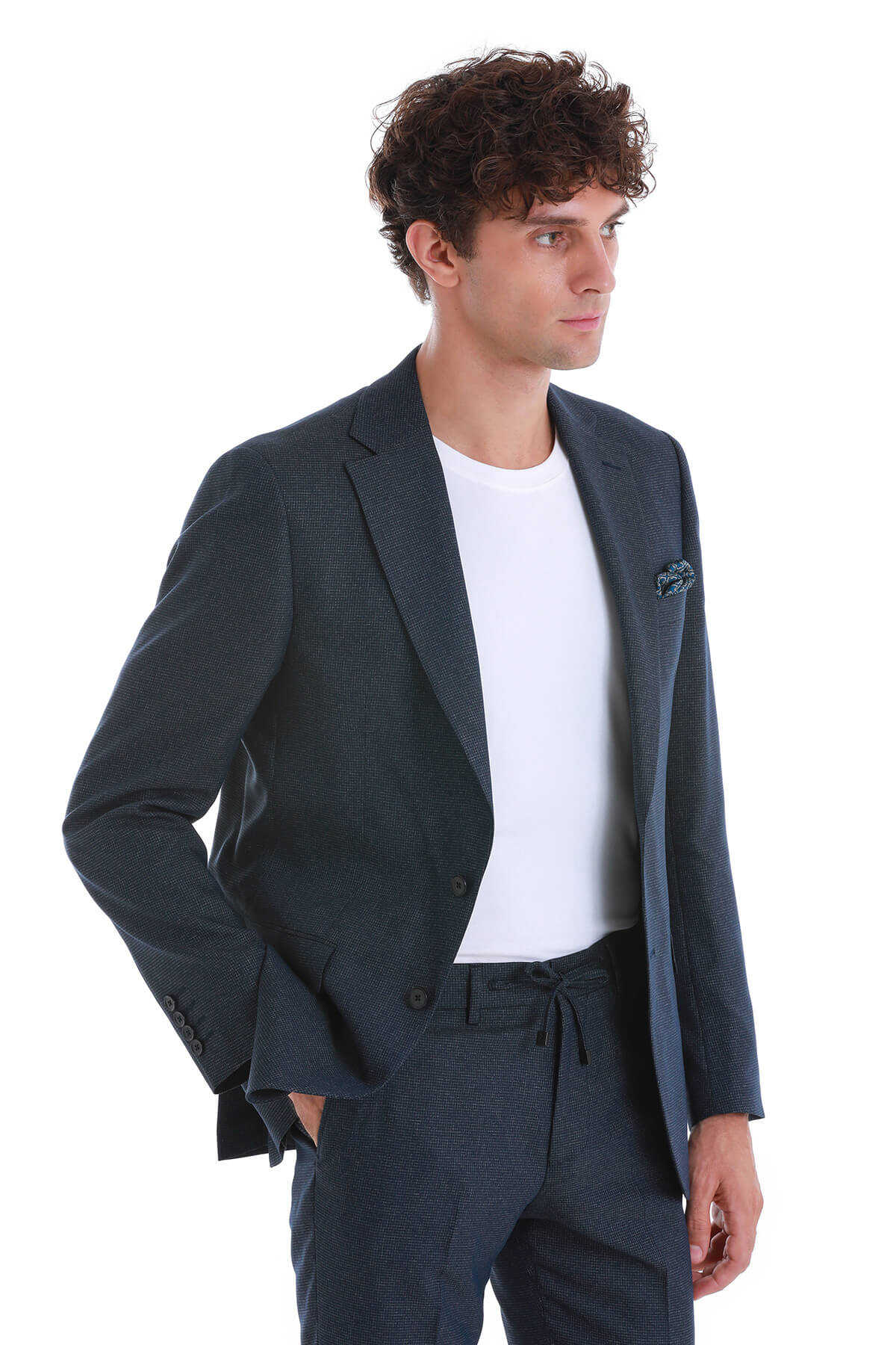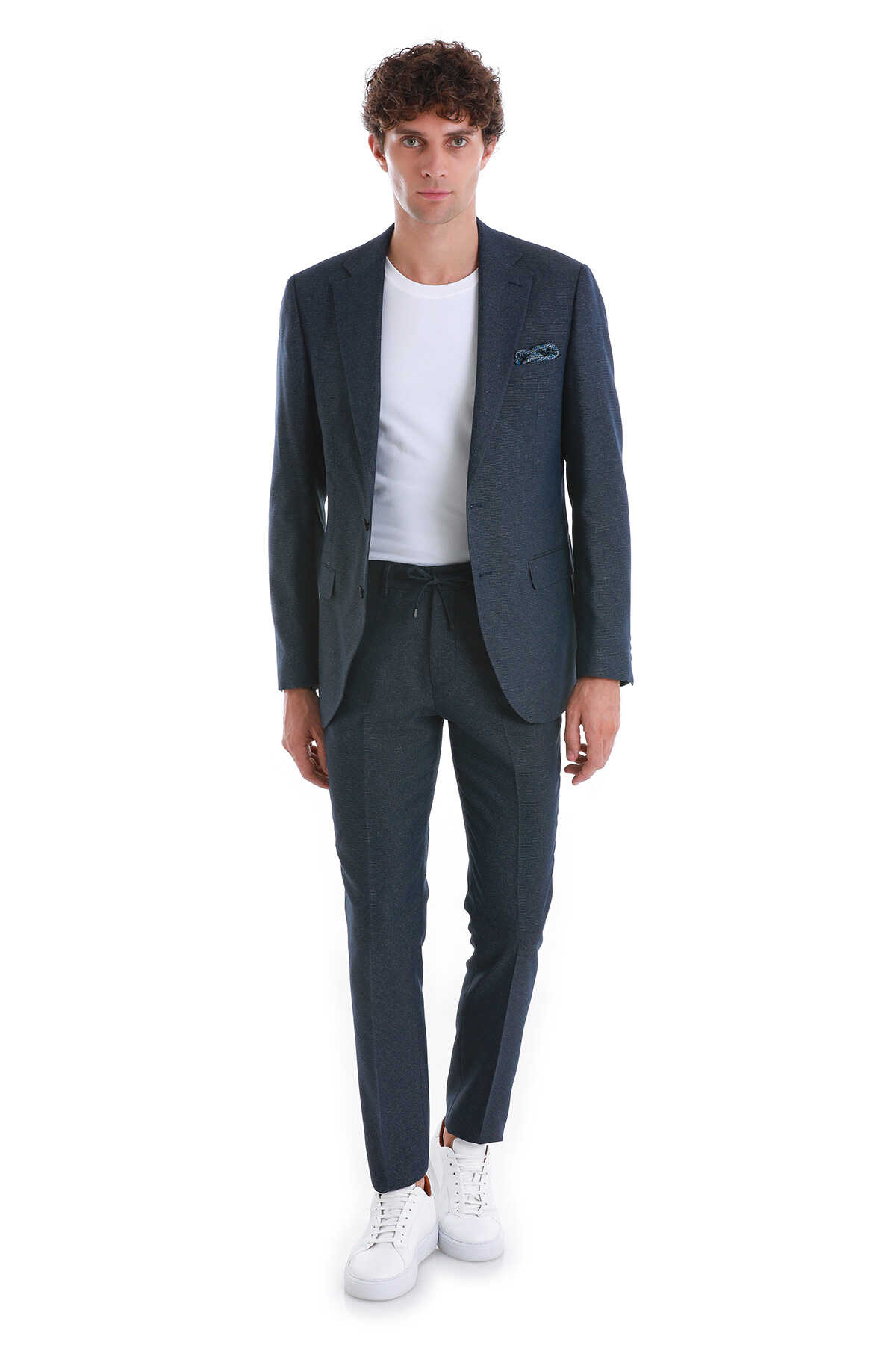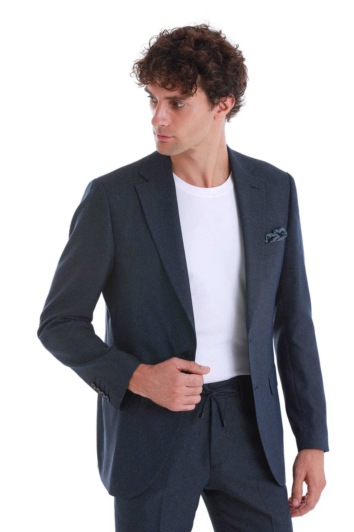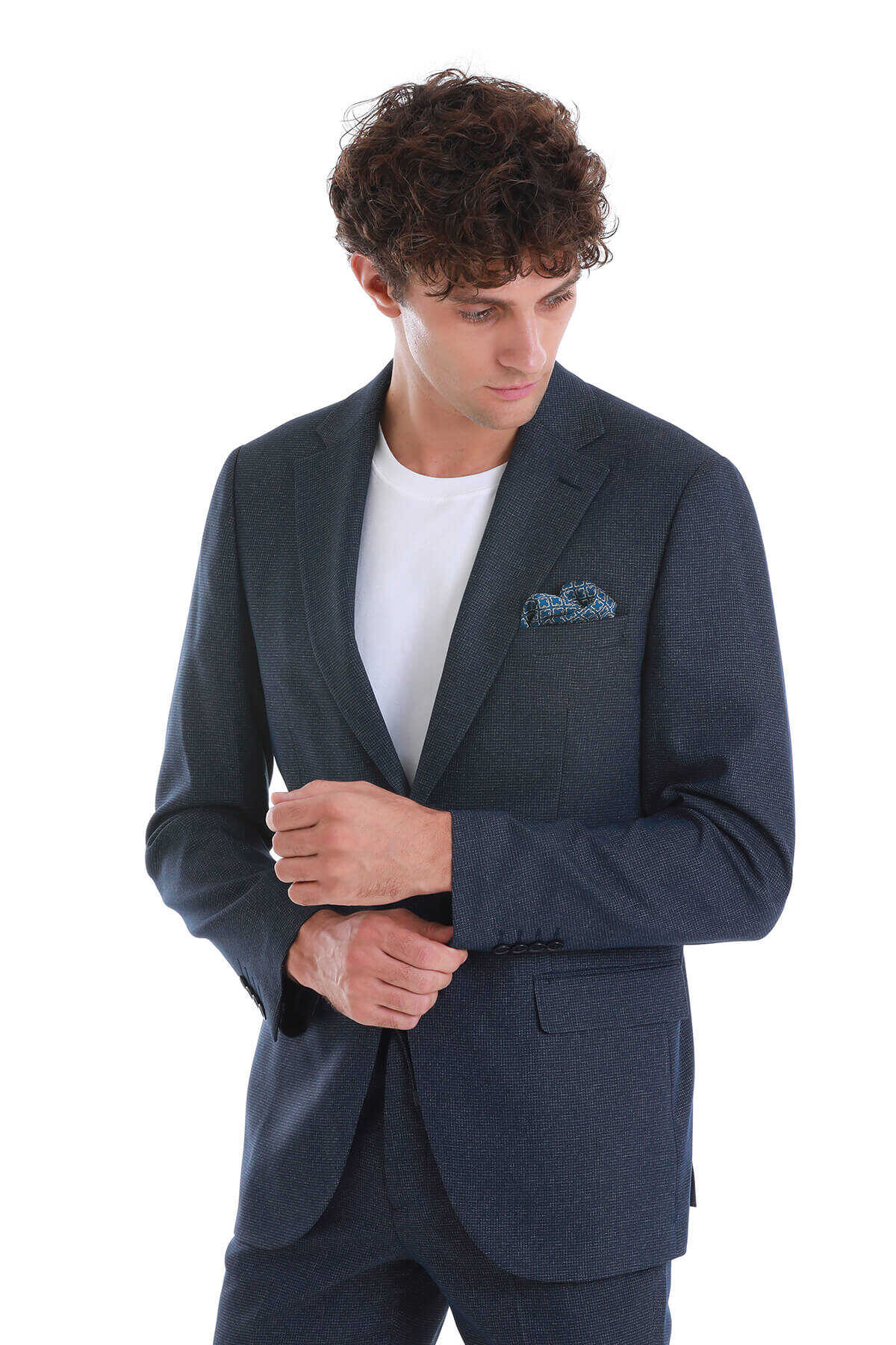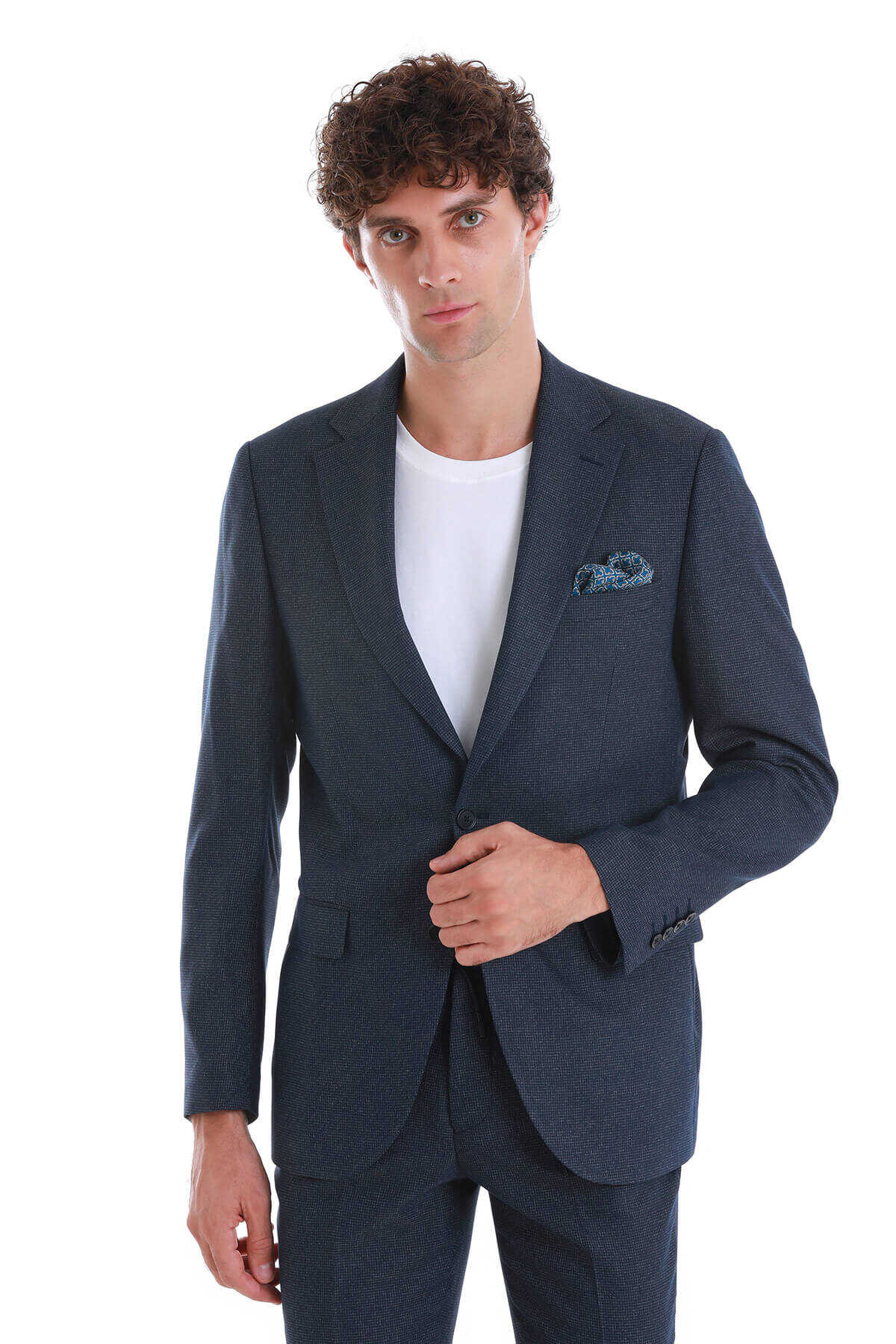 Lacivert Slim Fit Mono Yaka Klasik Takım Elbise