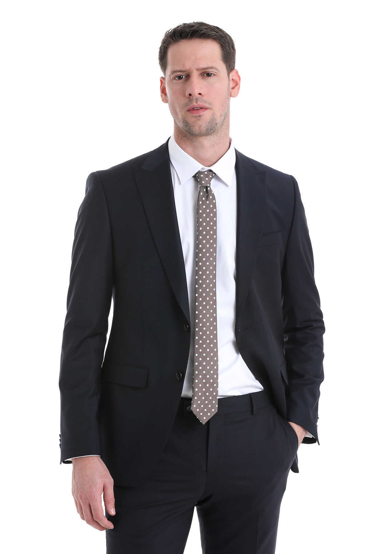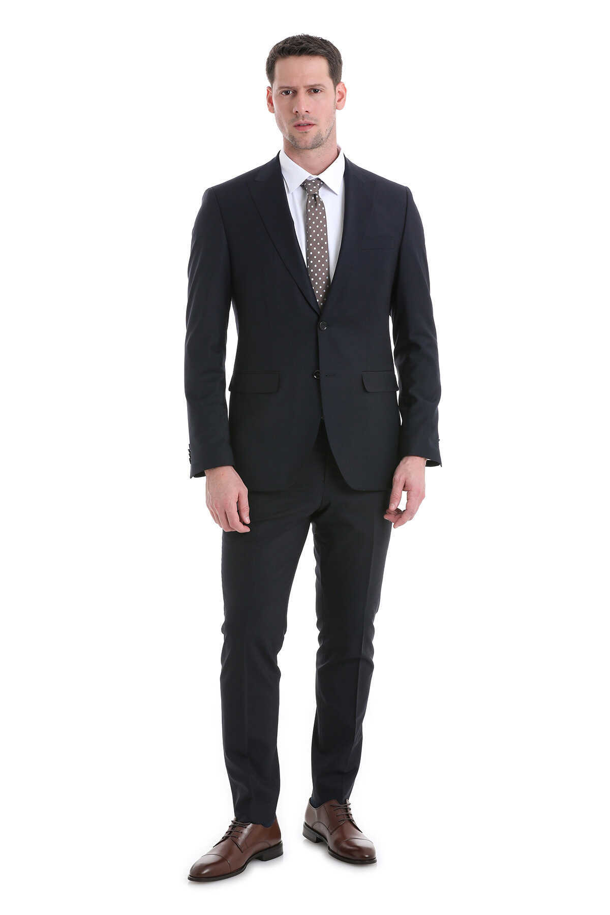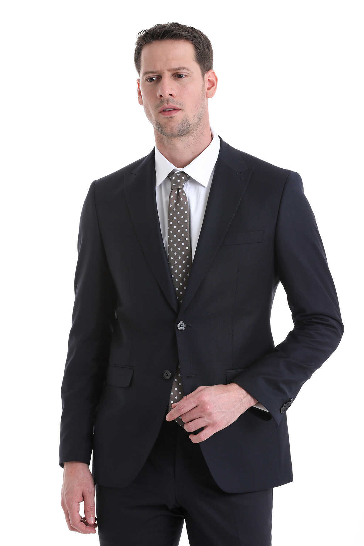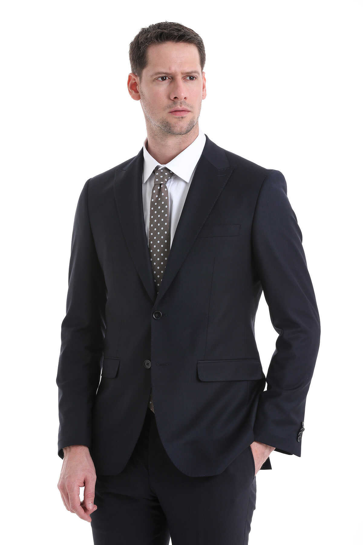 Lacivert Slim Fit Sivri Yaka Klasik Takım Elbise