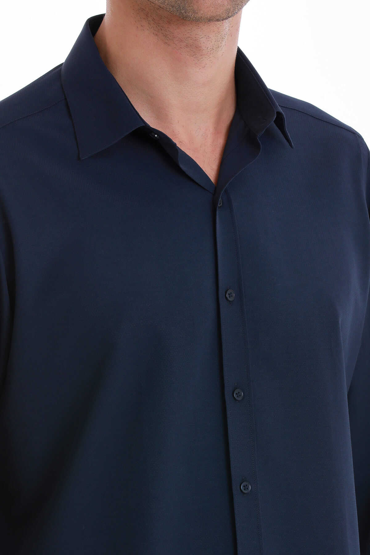 Lacivert Slim Fit Slim Yaka Pamuklu Uzun Kollu Gömlek - 6