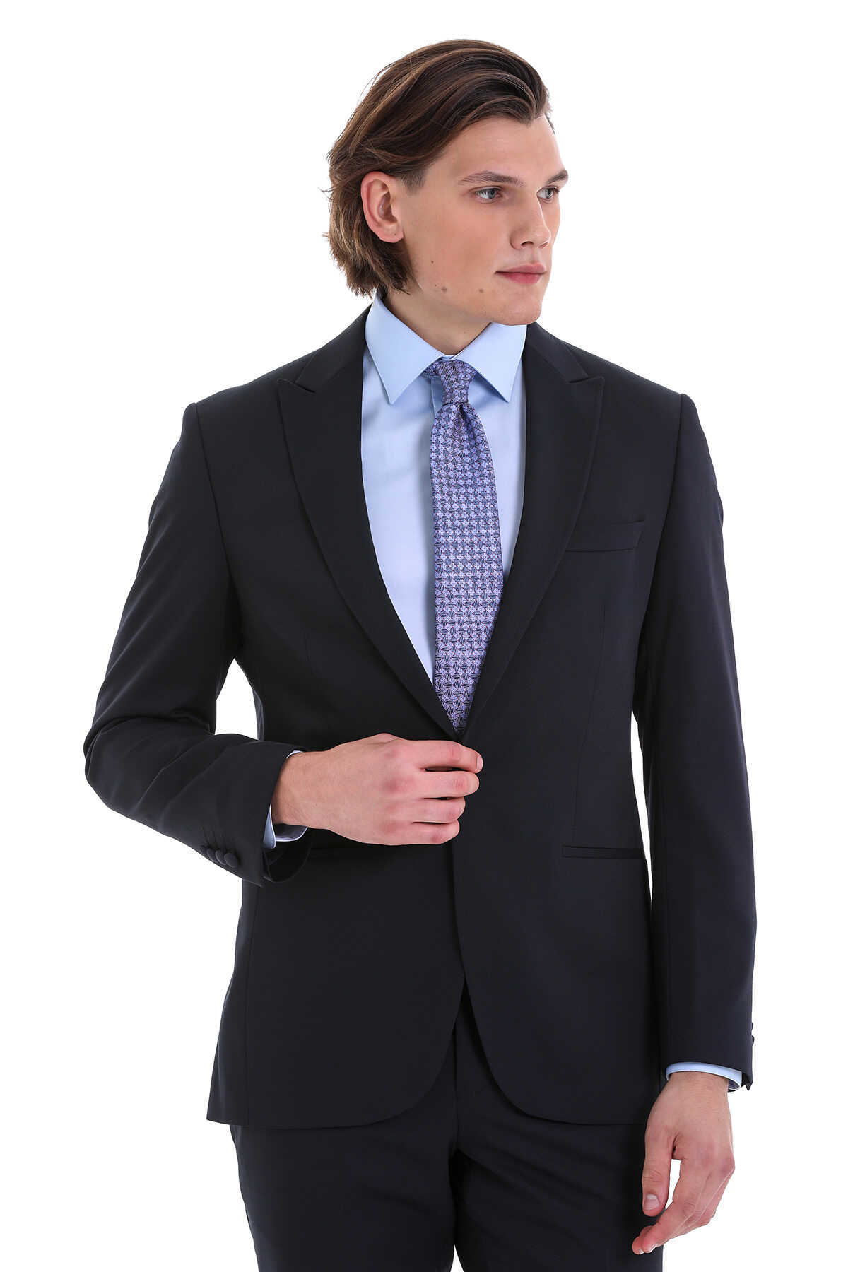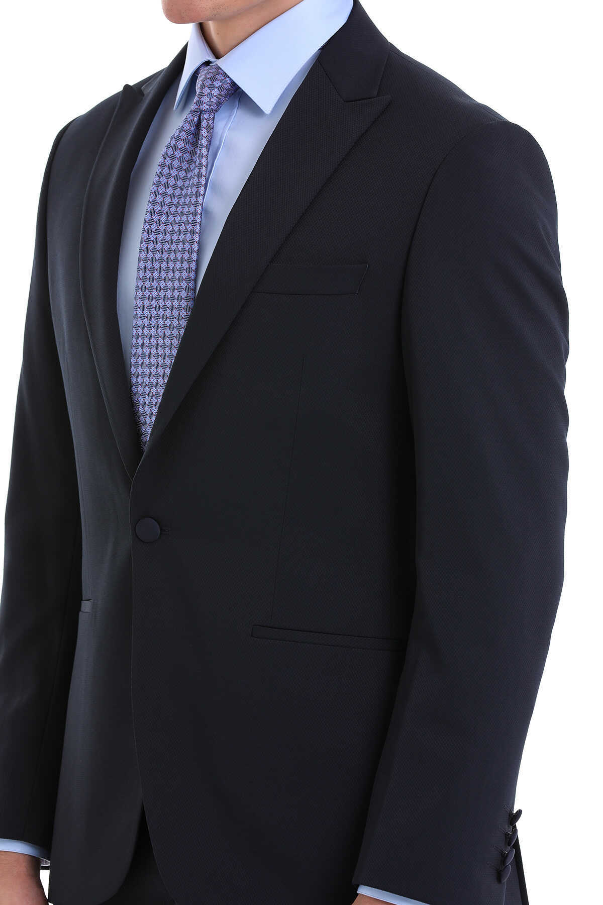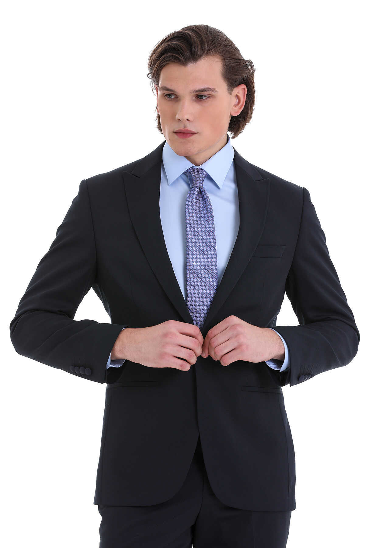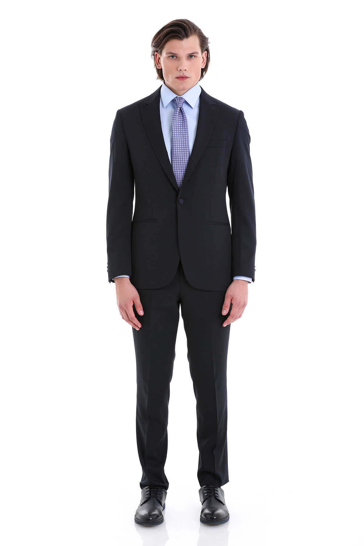 Lacivert Slim Fit Sivri Yaka Klasik Smokin Damatlık