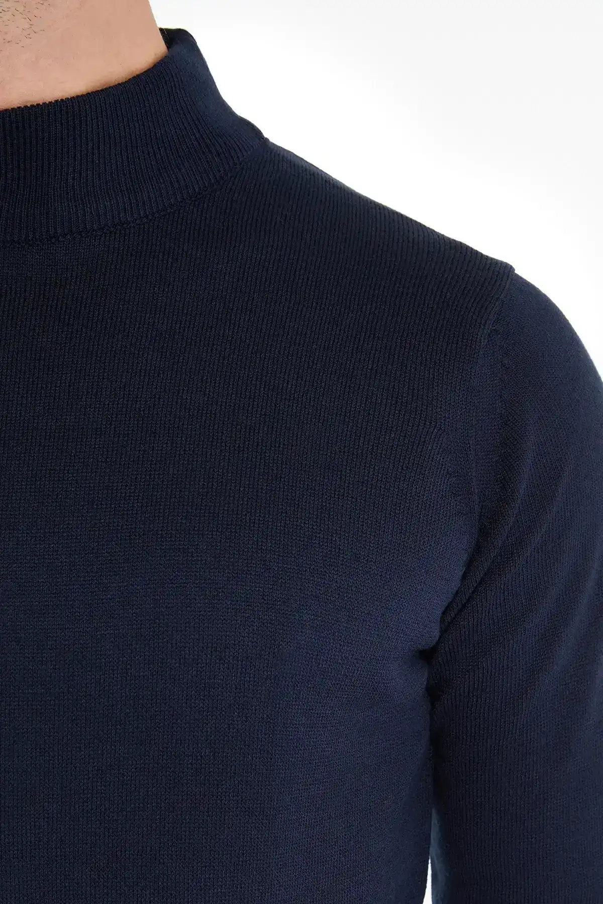 Lacivert Regular Fit Düz Yarım Balıkçı Yaka Triko Kazak