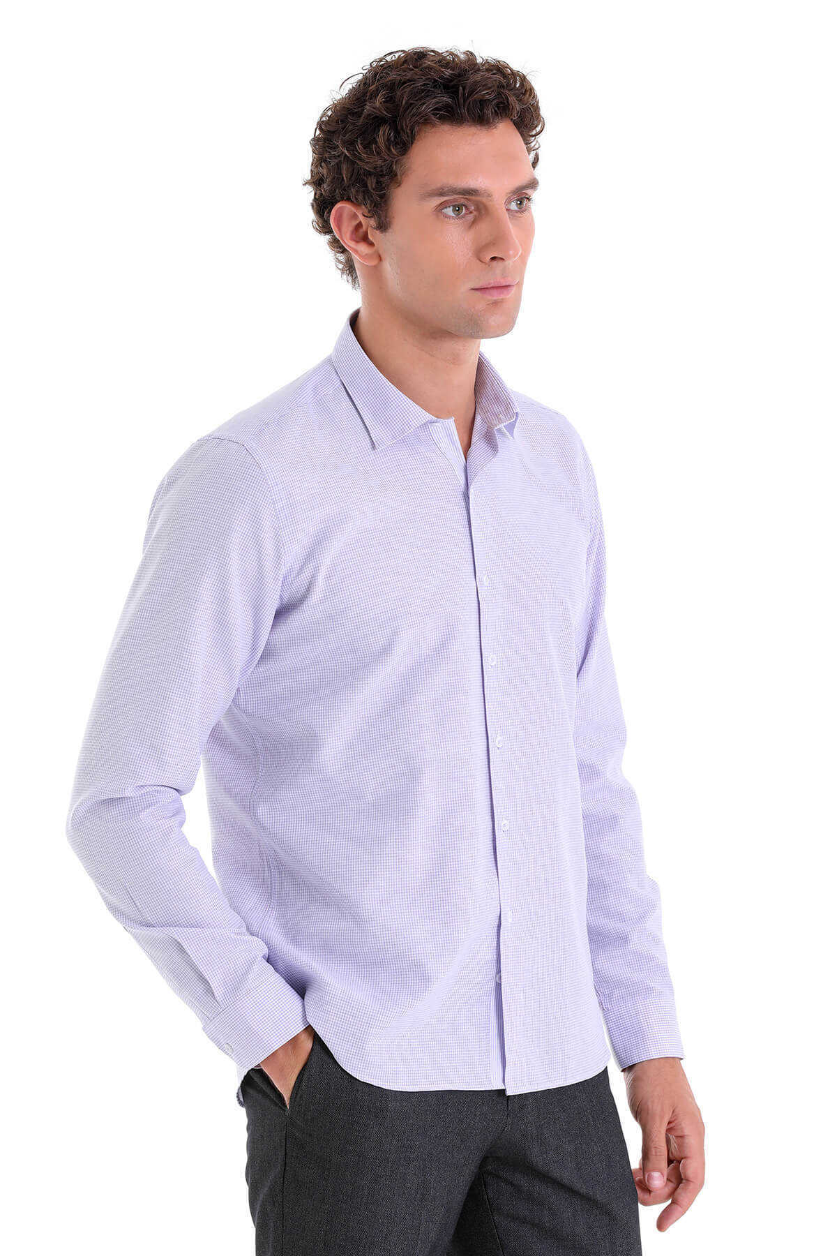 Lila Comfort Fit Çizgili Pamuklu Slim Yaka Uzun Kollu Casual Gömlek - 6