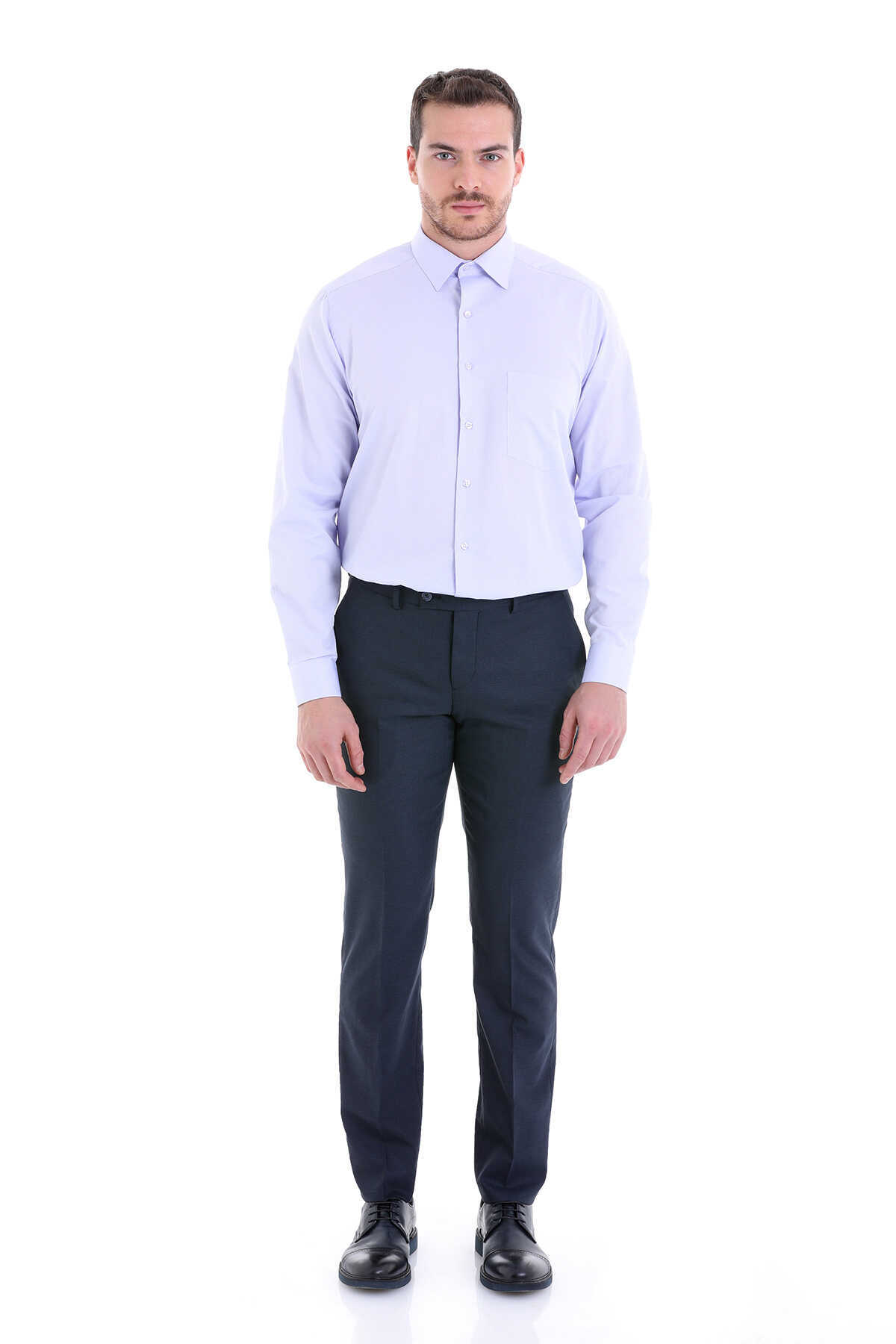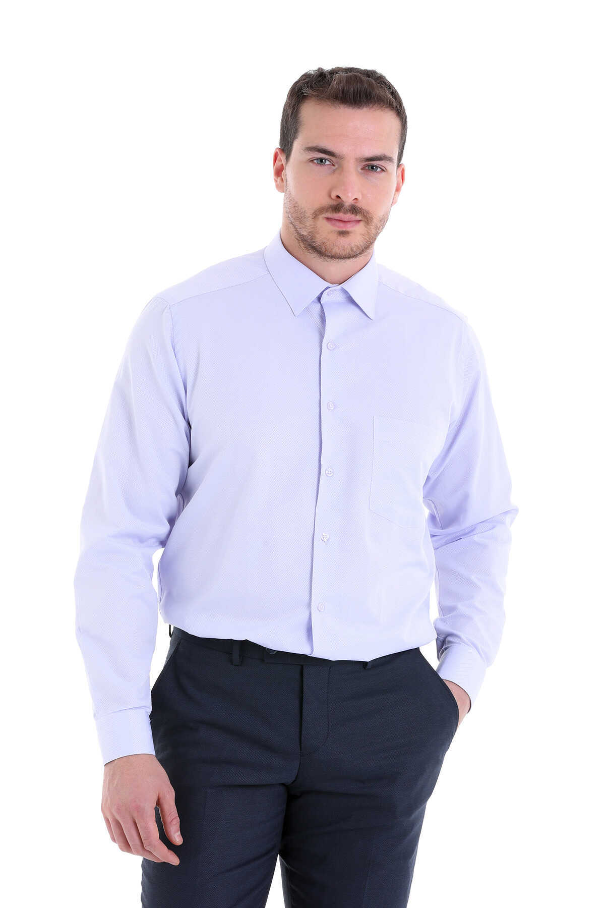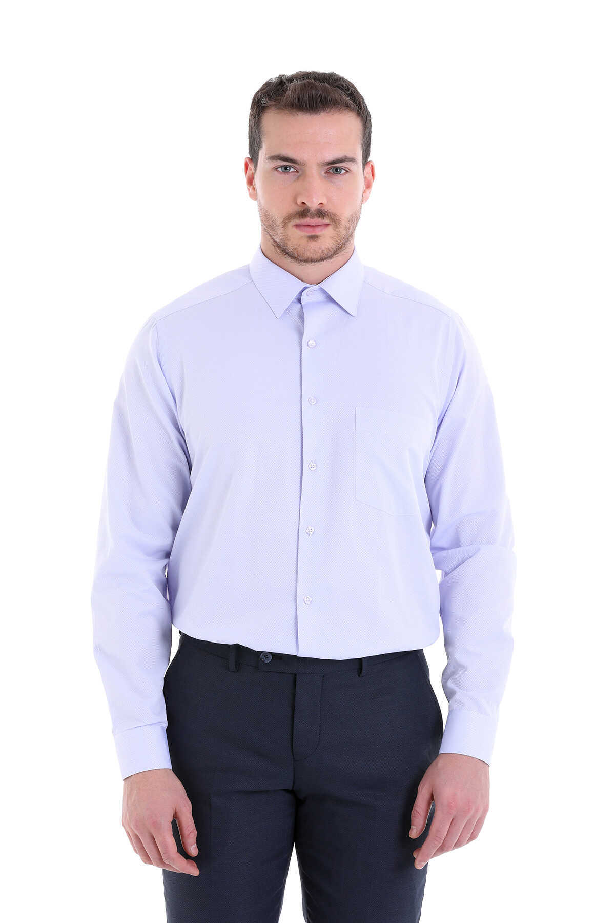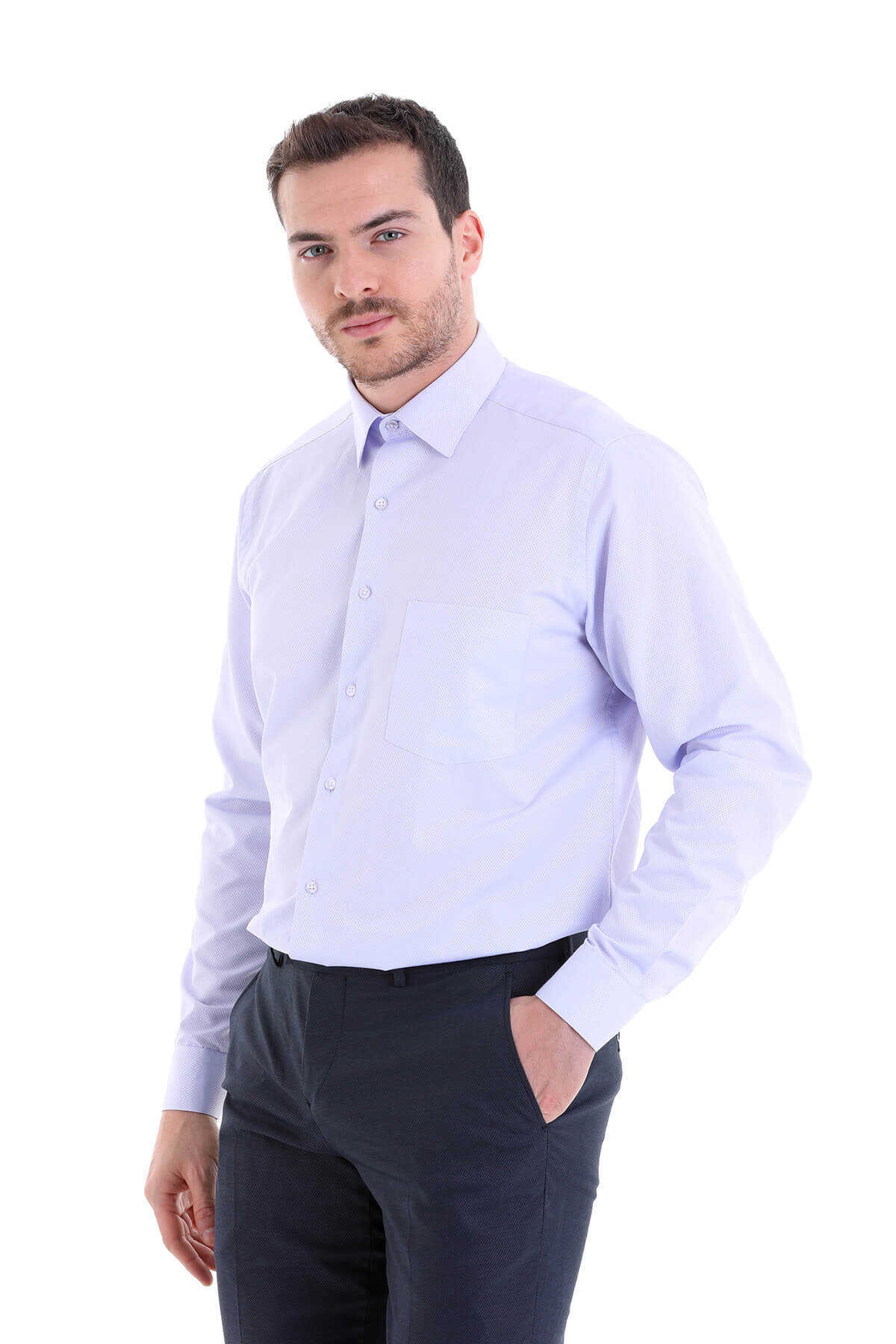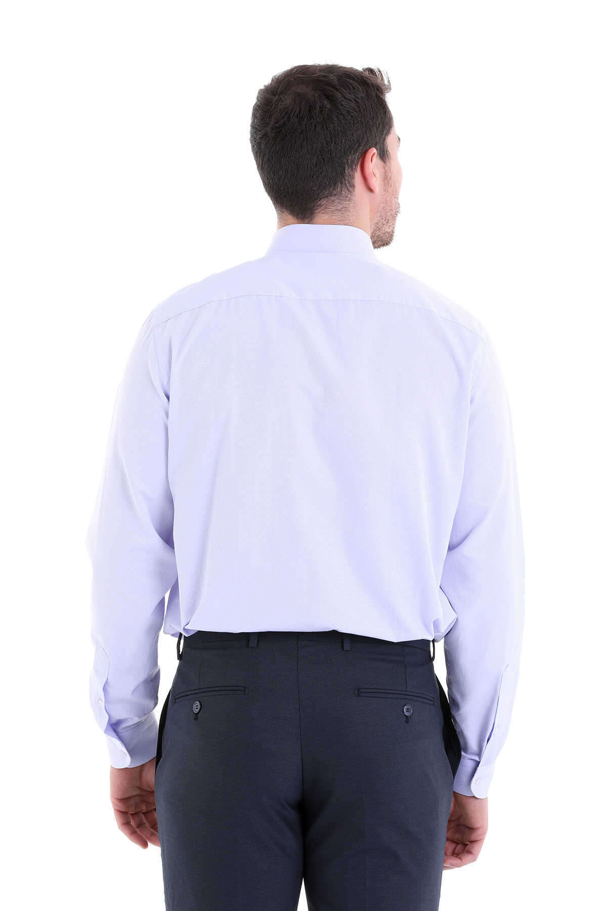 Lila Klasik Fit Desenli Pamuklu Slim Yaka Uzun Kollu Klasik Gömlek