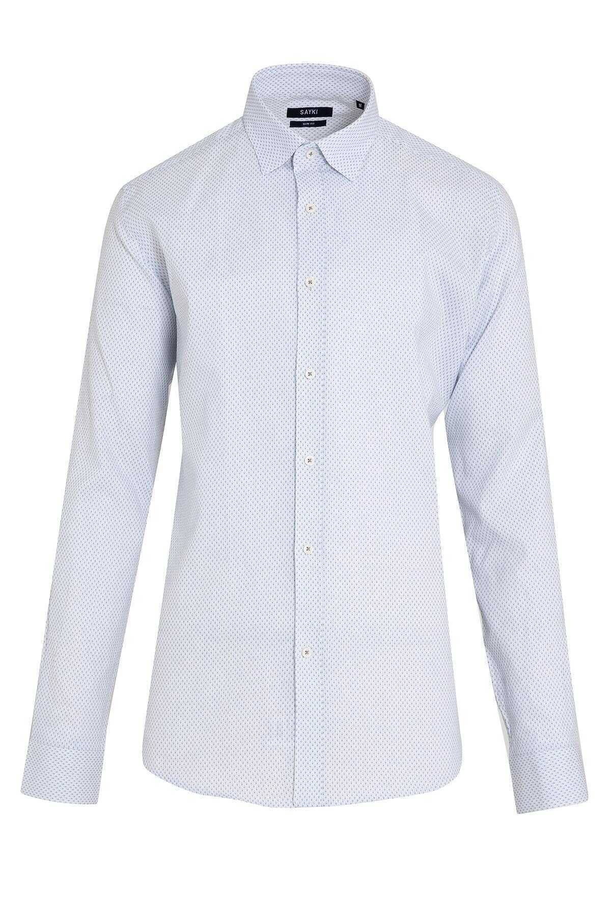 Mavi Slim Fit Baskılı Düğmeli Yaka Uzun Kollu Casual Keten Gömlek