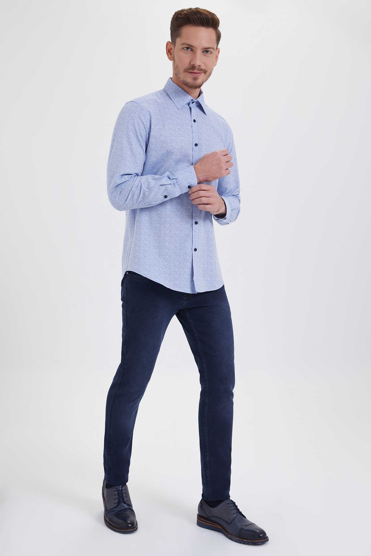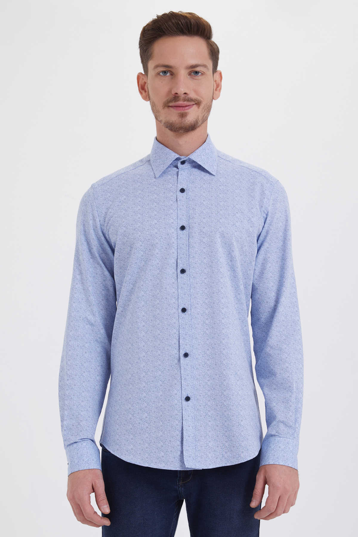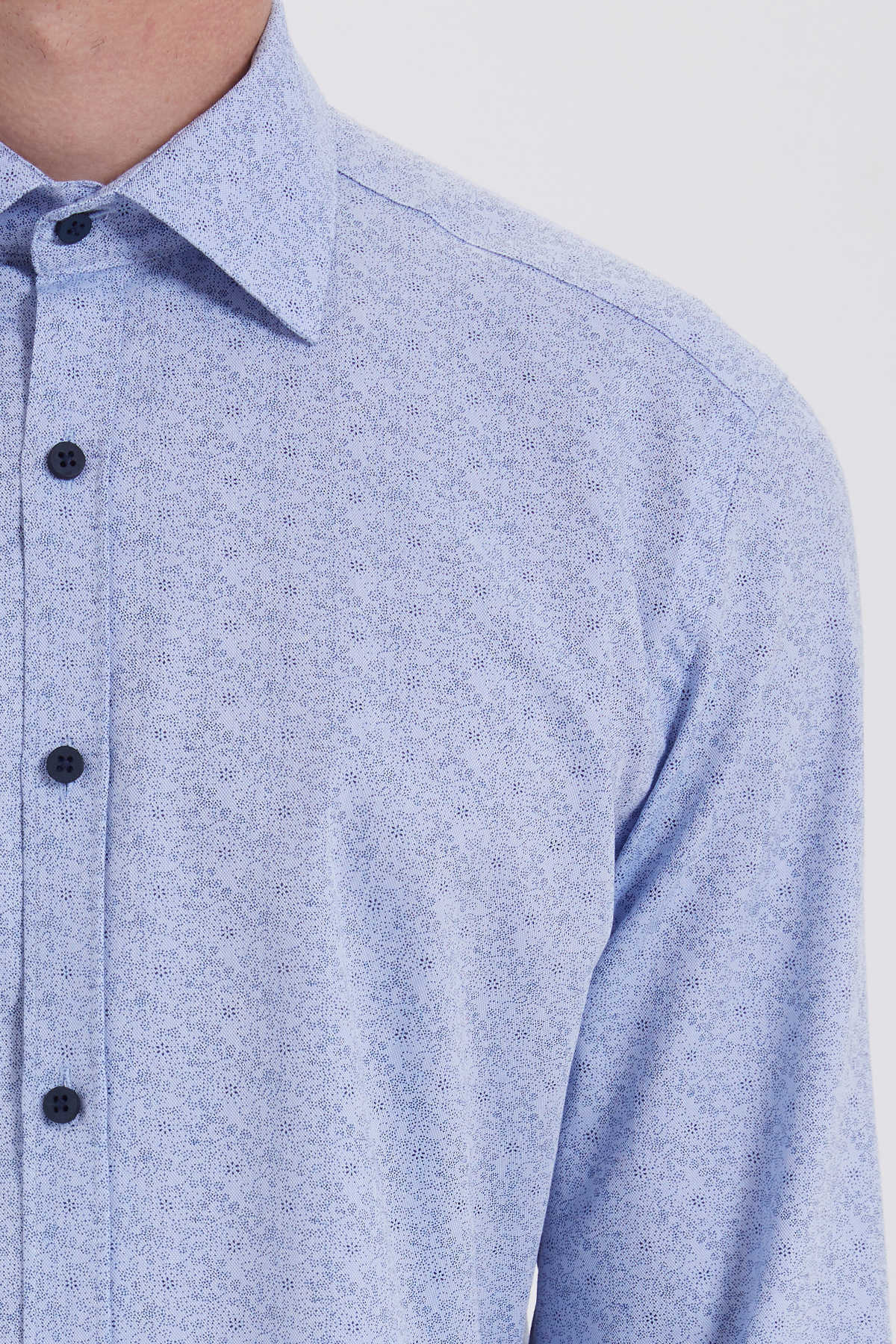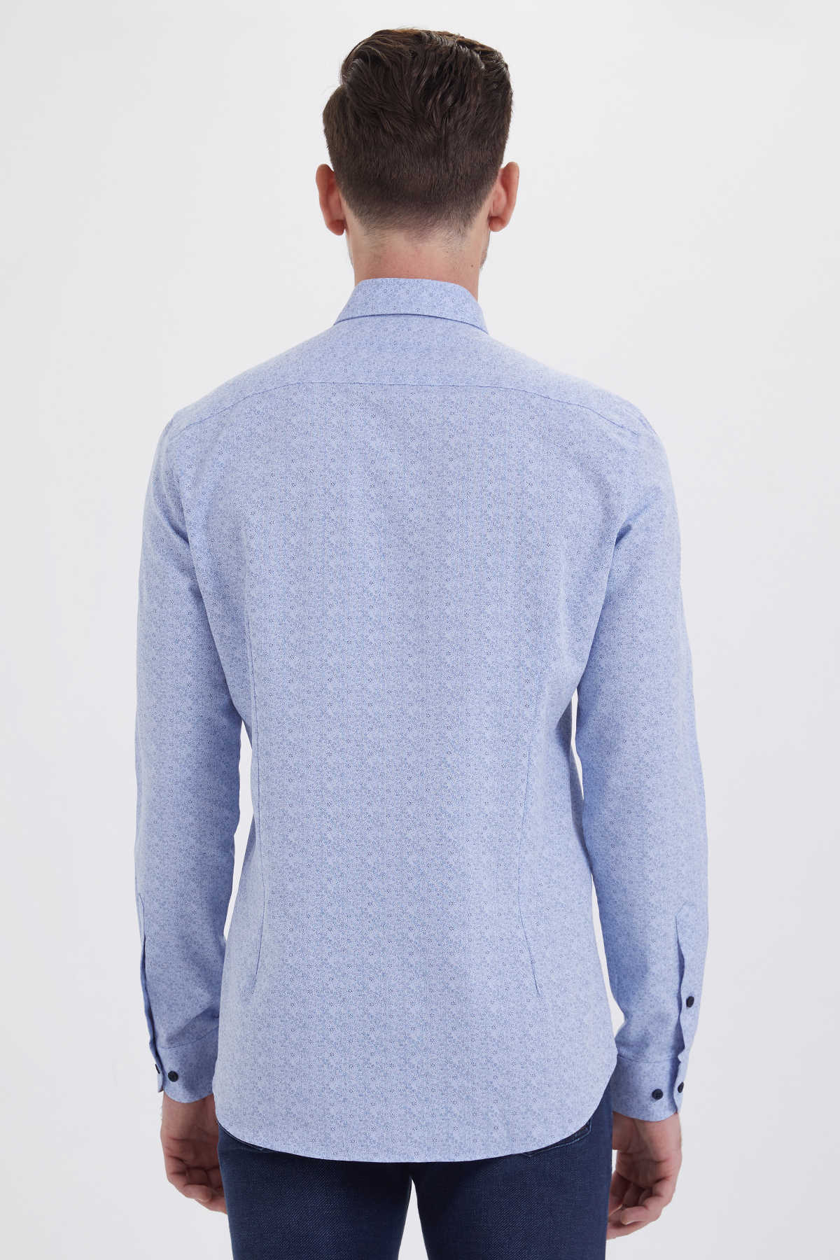 Mavi Baskılı Slim Fit Gömlek