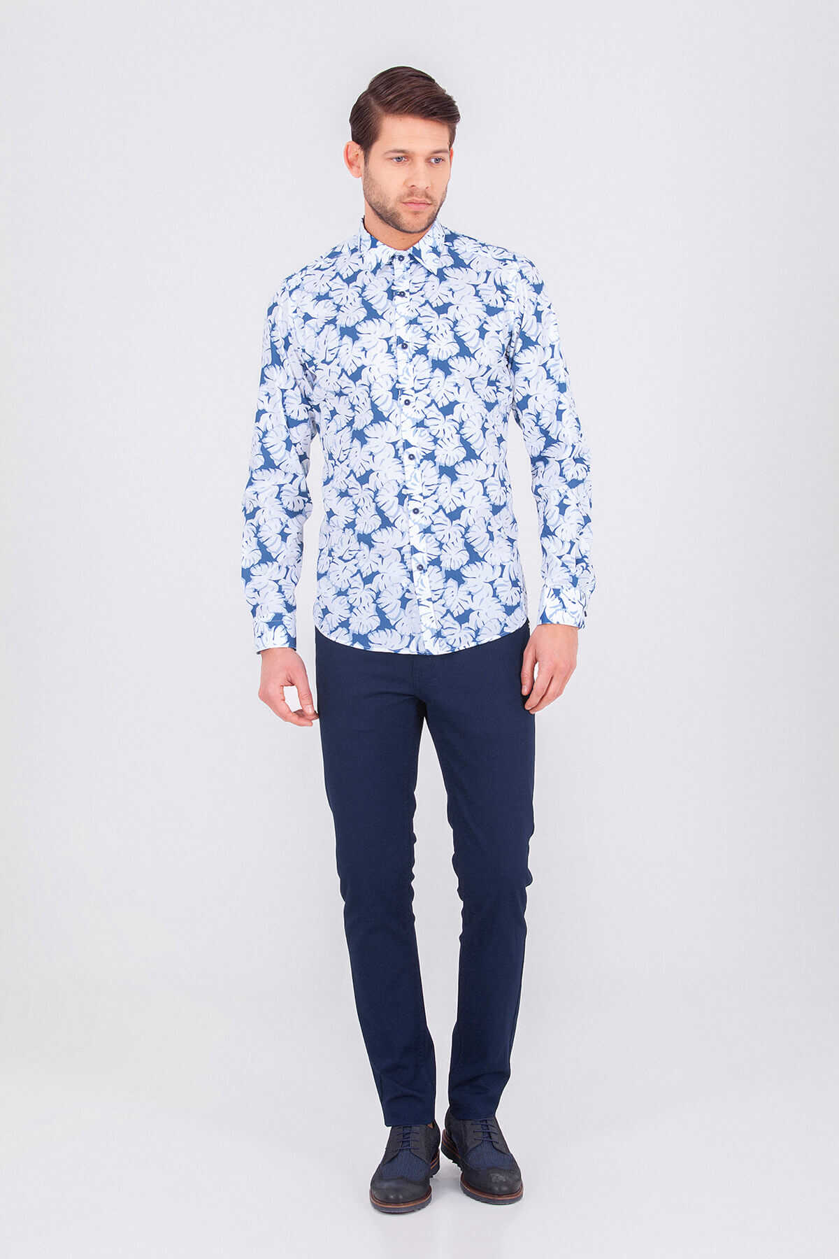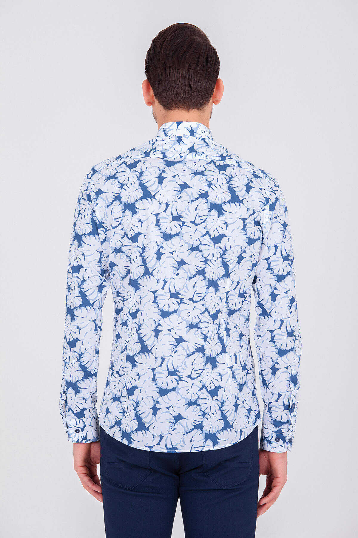 Mavi Baskılı Slim Fit Gömlek
