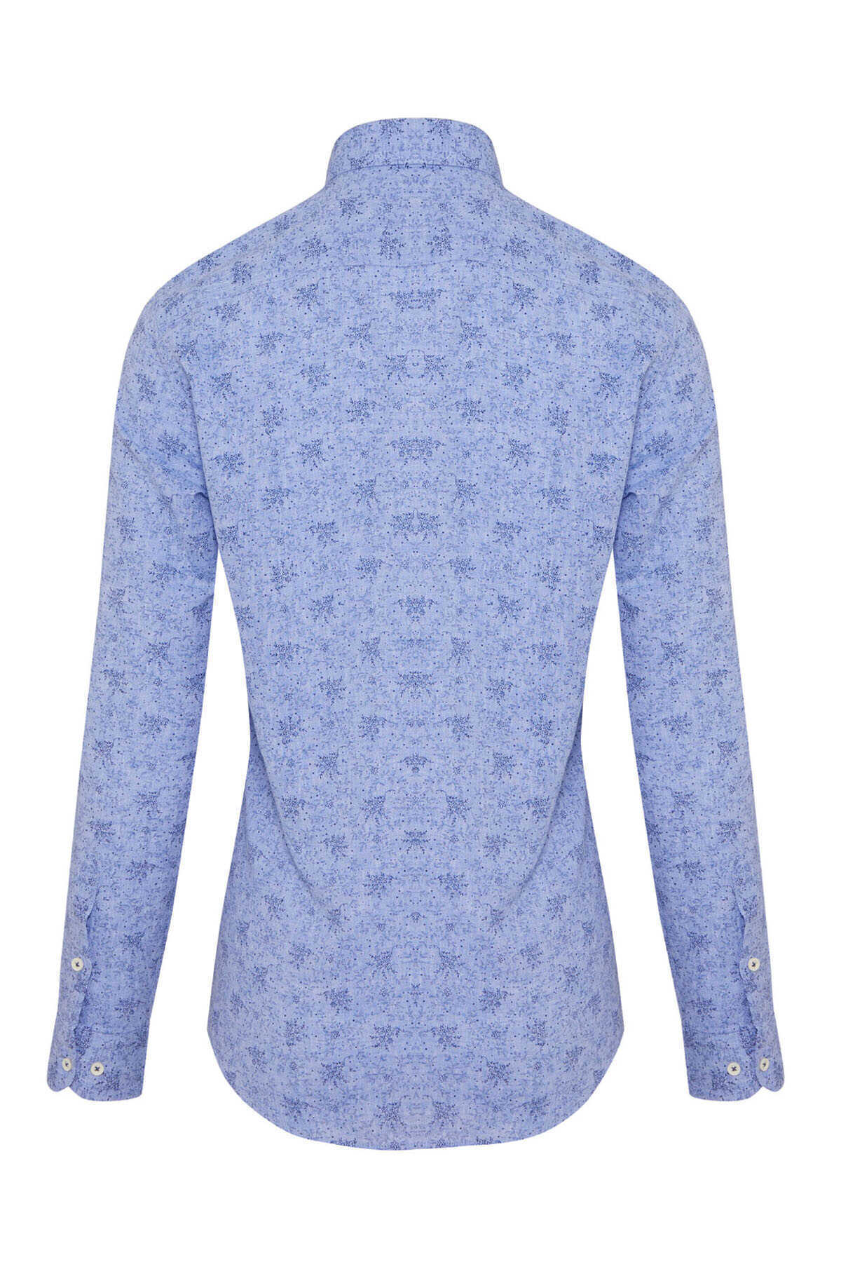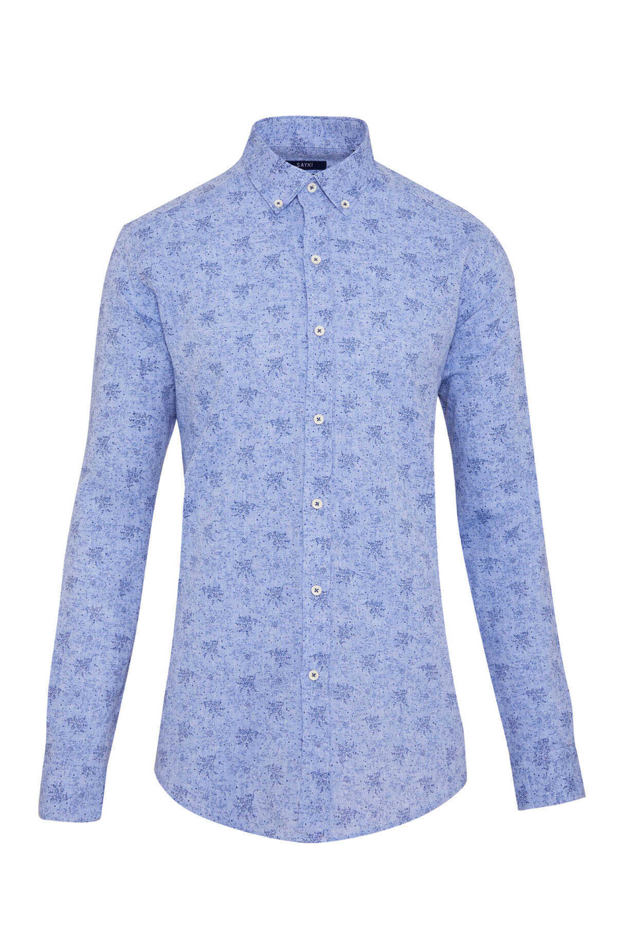 Mavi Slim Fit Baskılı Düğmeli Yaka Uzun Kollu Casual Keten Gömlek