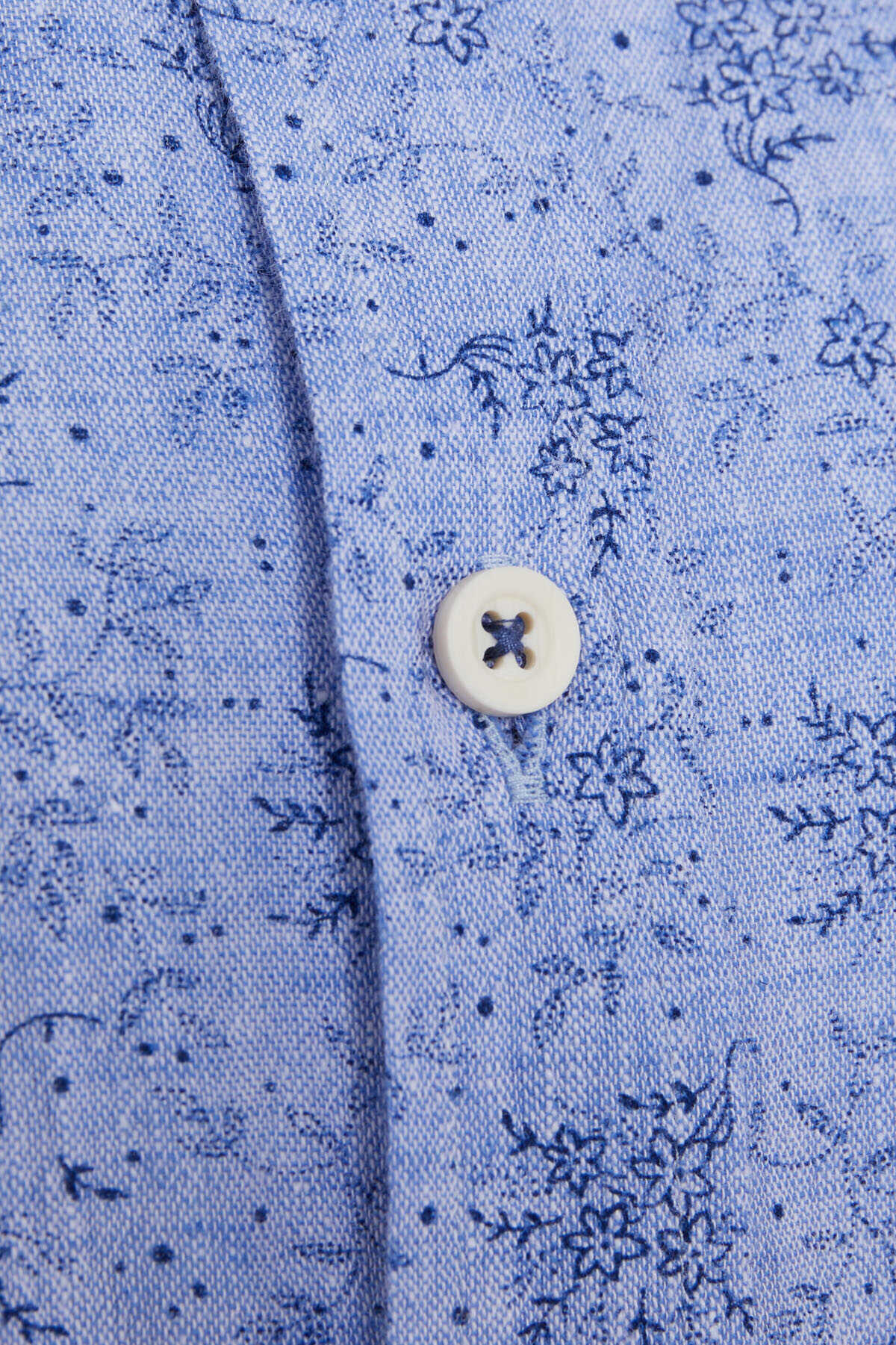 Mavi Slim Fit Baskılı Düğmeli Yaka Uzun Kollu Casual Keten Gömlek - 3