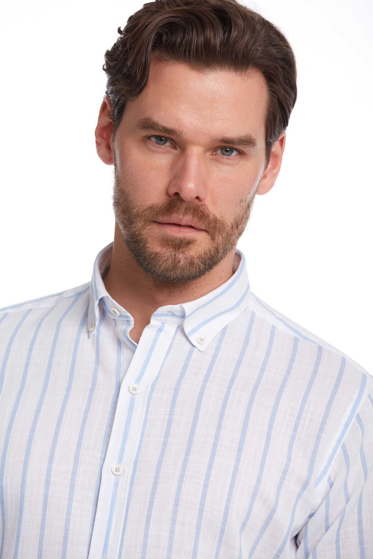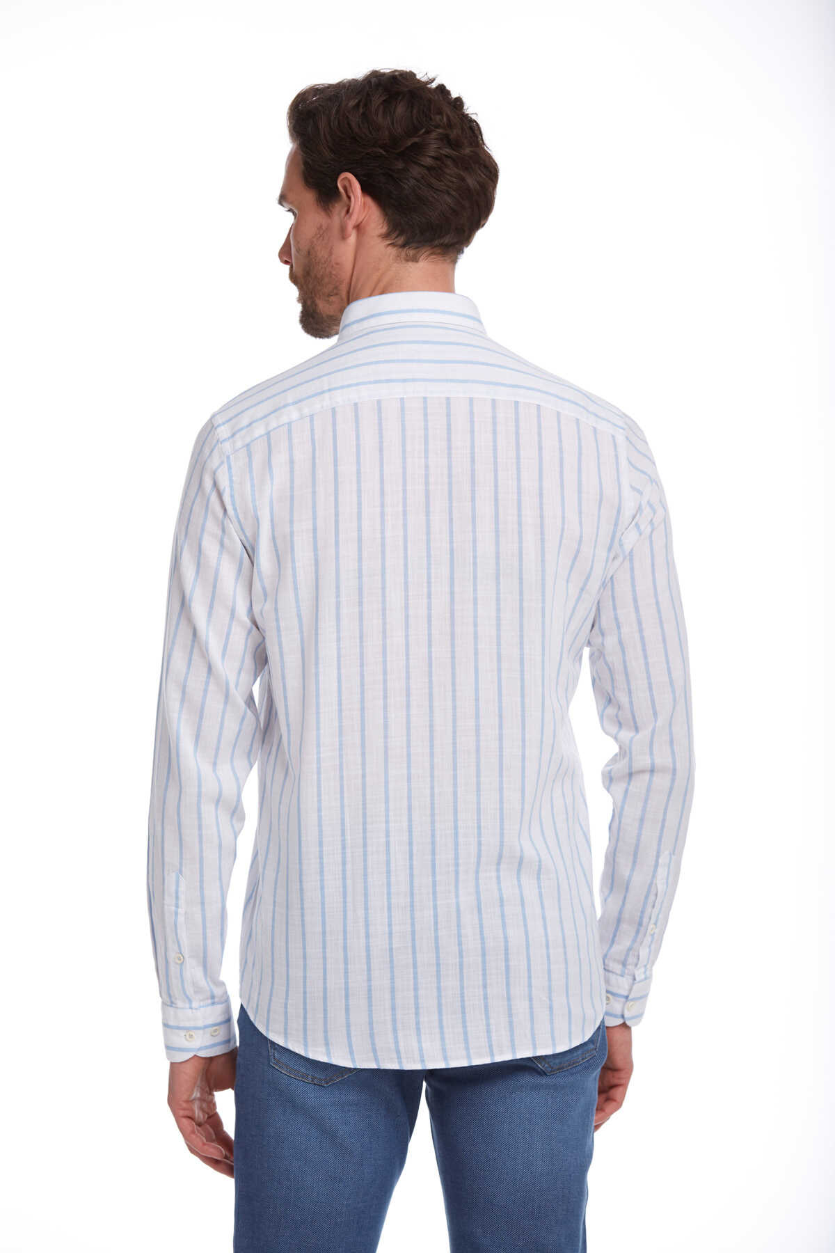 Mavi Comfort Fit Çizgili 100% Pamuk Düğmeli Yaka Uzun Kollu Casual Gömlek