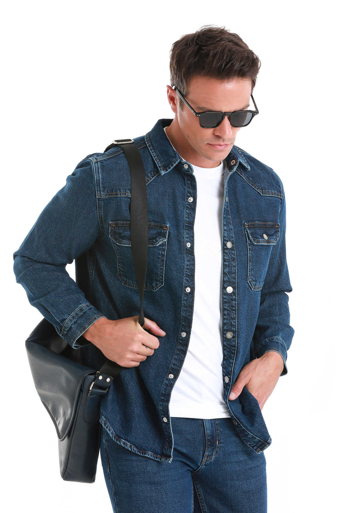 Mavi Comfort Fit 100% Pamuk Slim Yaka Uzun Kollu Kot Gömlek