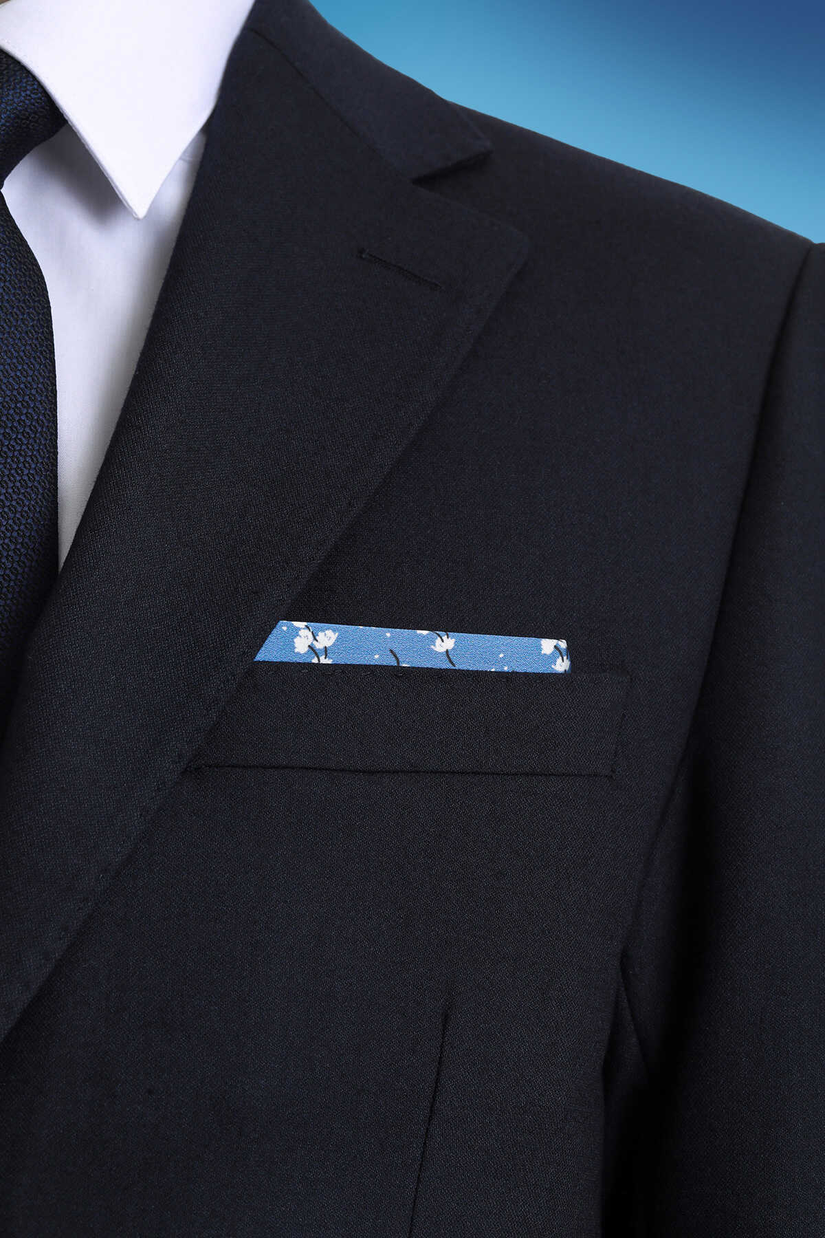 Mavi Desenli Klasik Saten Cep Mendili - 3