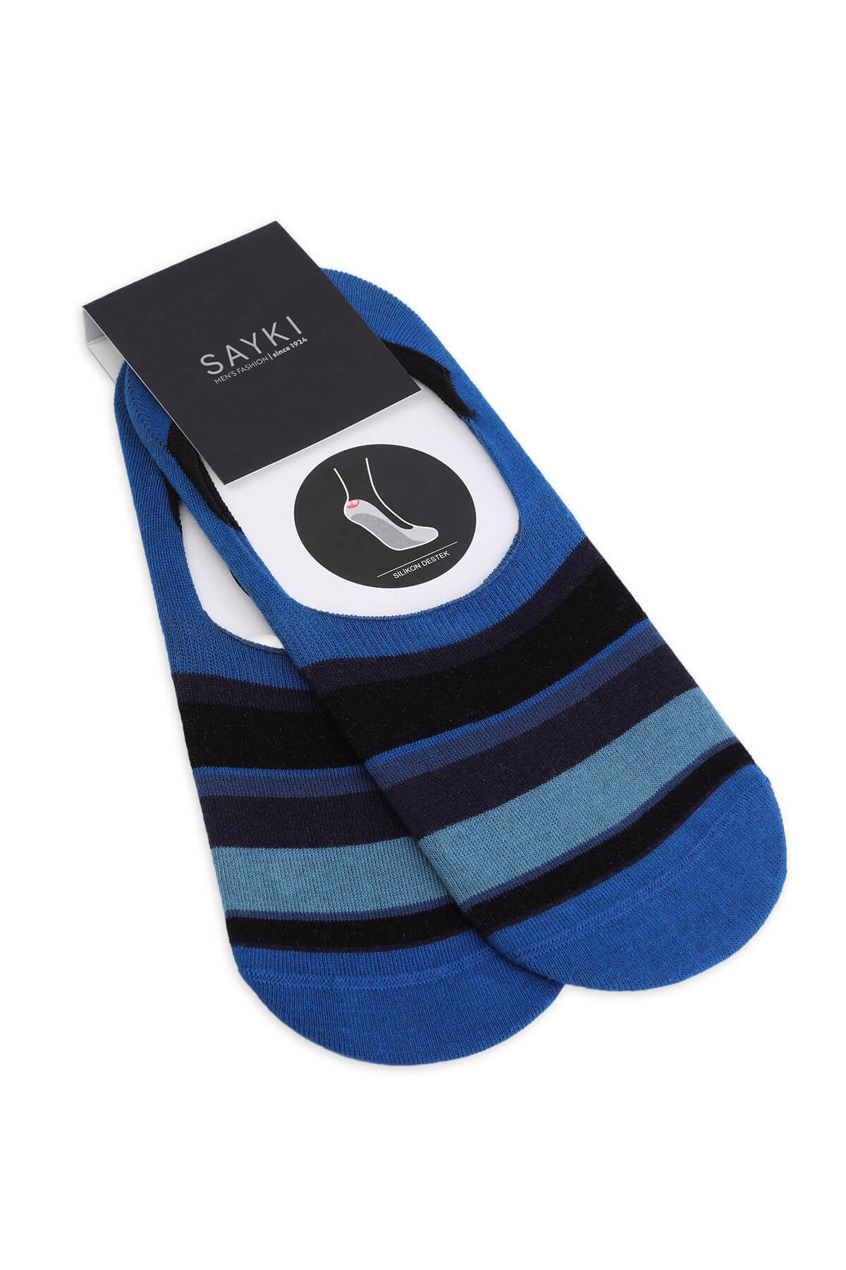 Mavi İkili Çizgili Pamuklu Babet Çorap