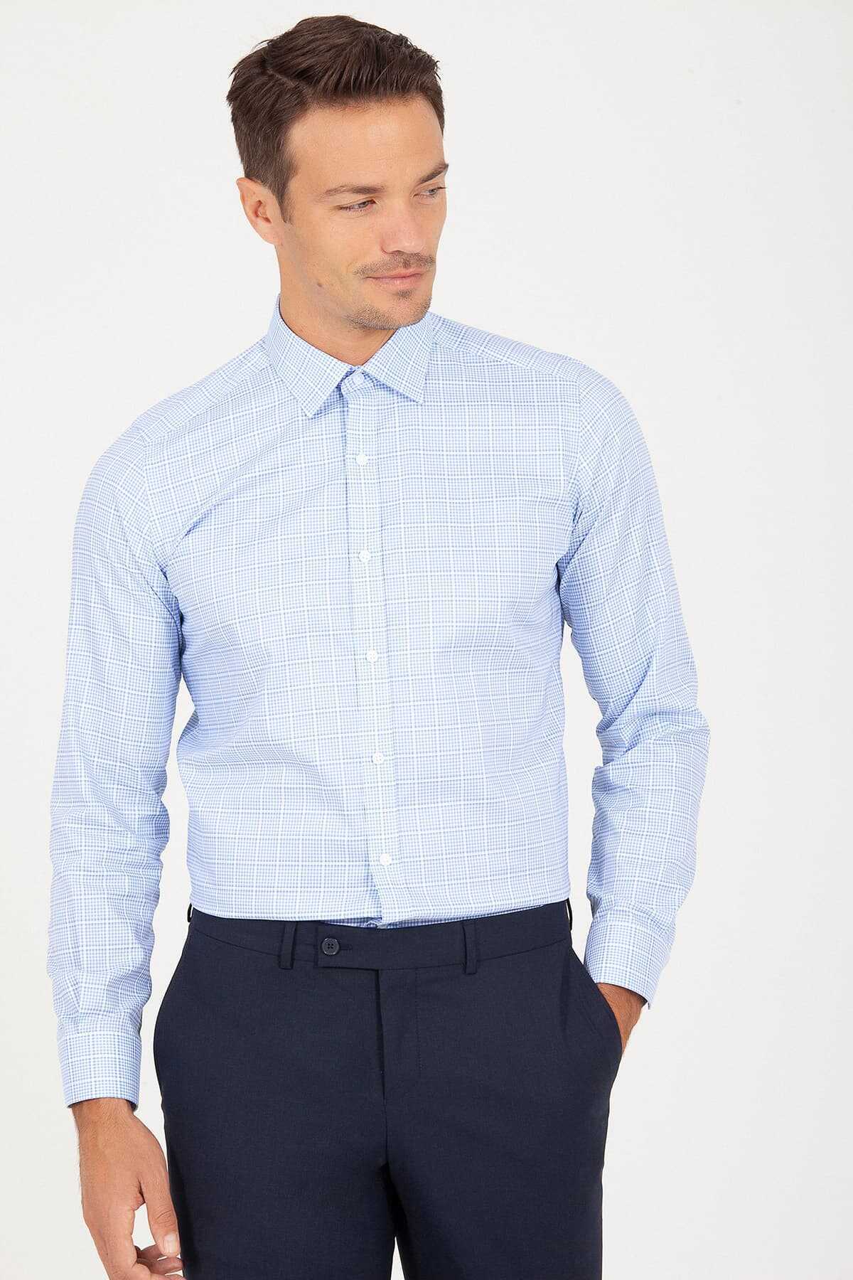 Mavi Slim Fit Kareli 100% Pamuk Uzun Kol Spor Gömlek