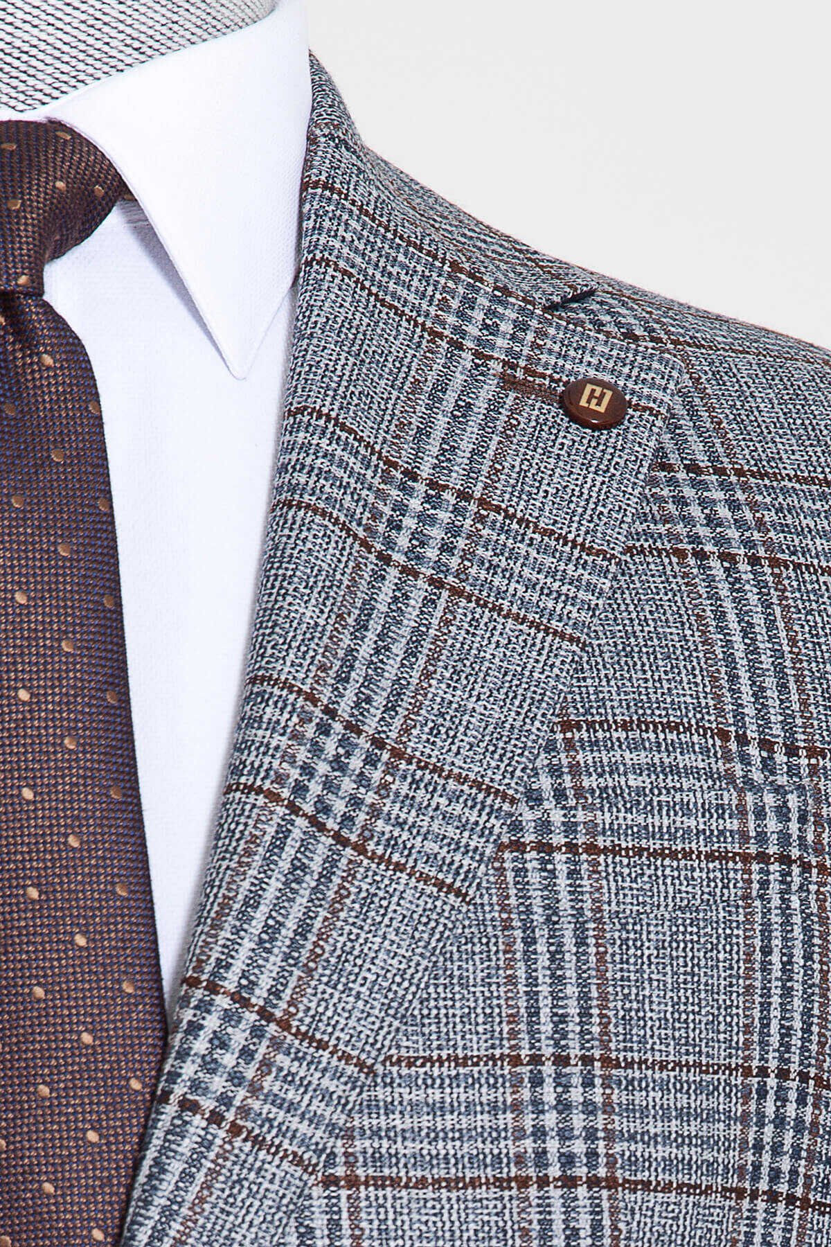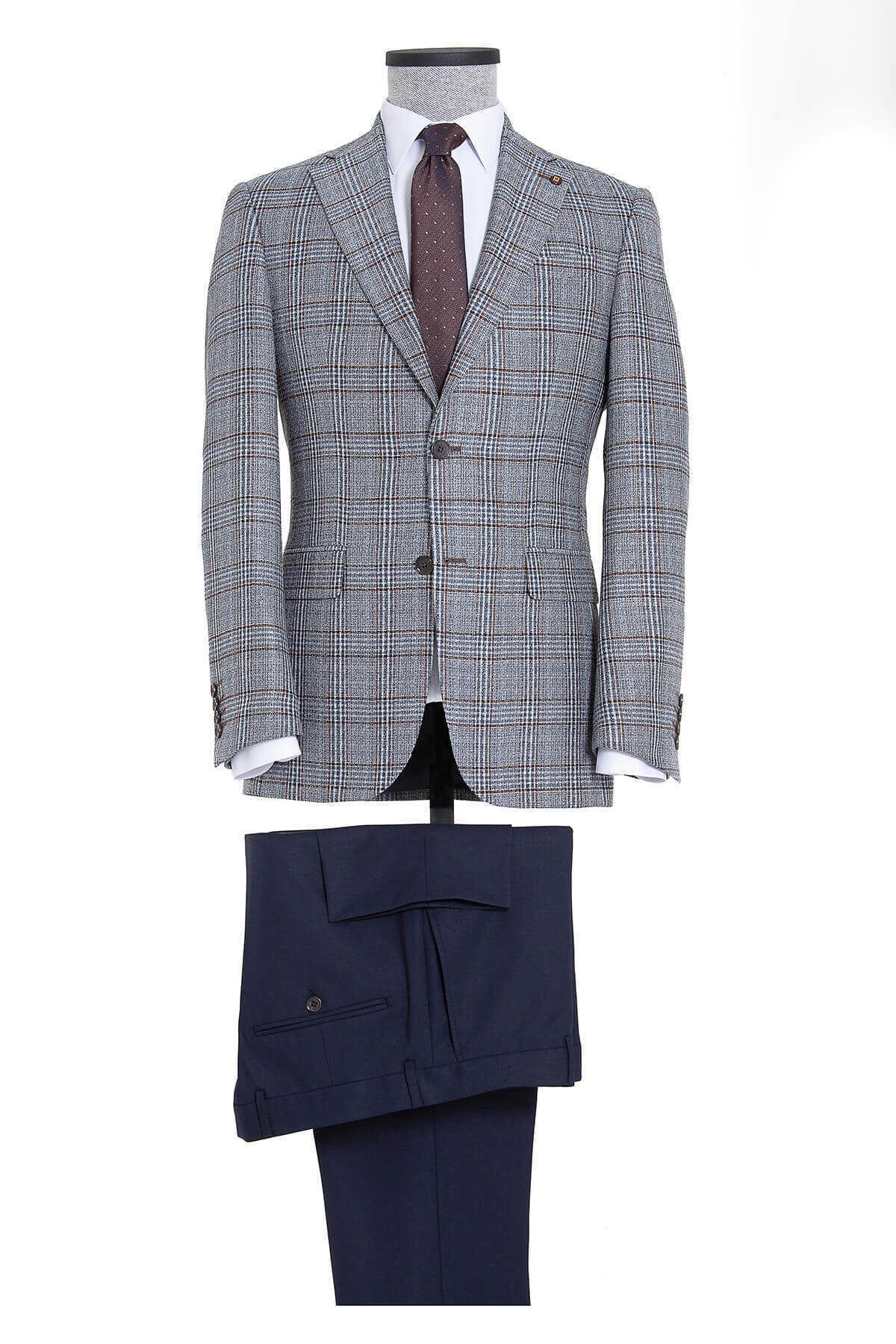 Mavi Kahverengi Kareli Mix Takım Elbise