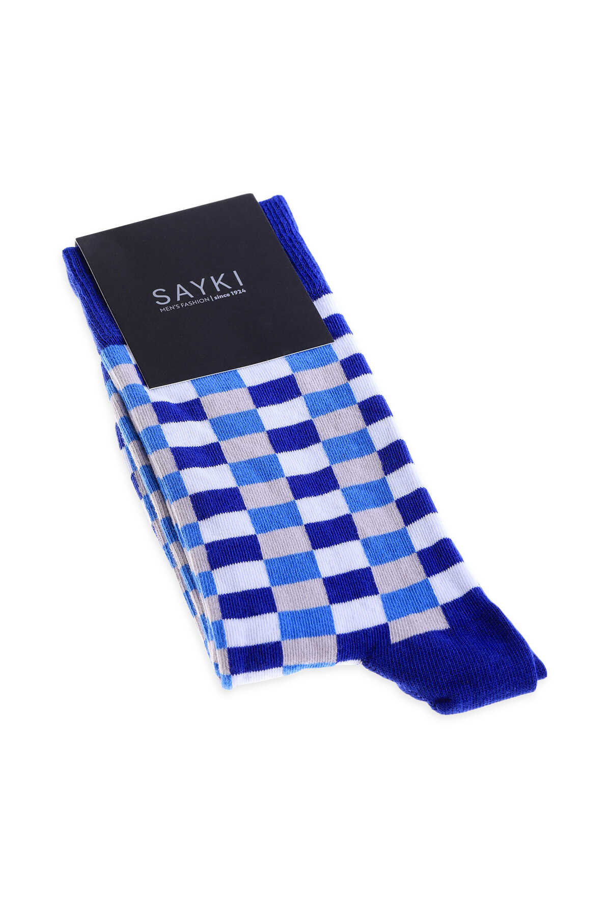 Mavi Kareli Pamuklu Soket Çorap
