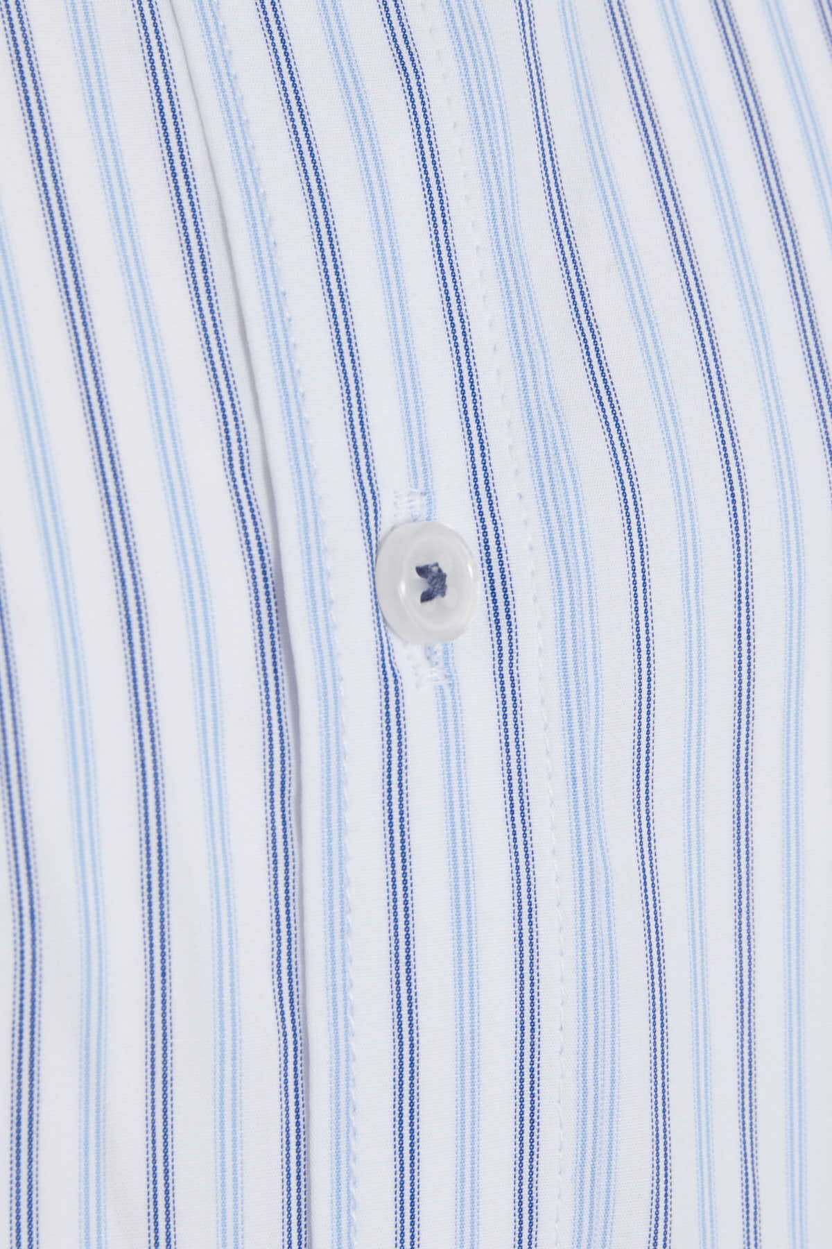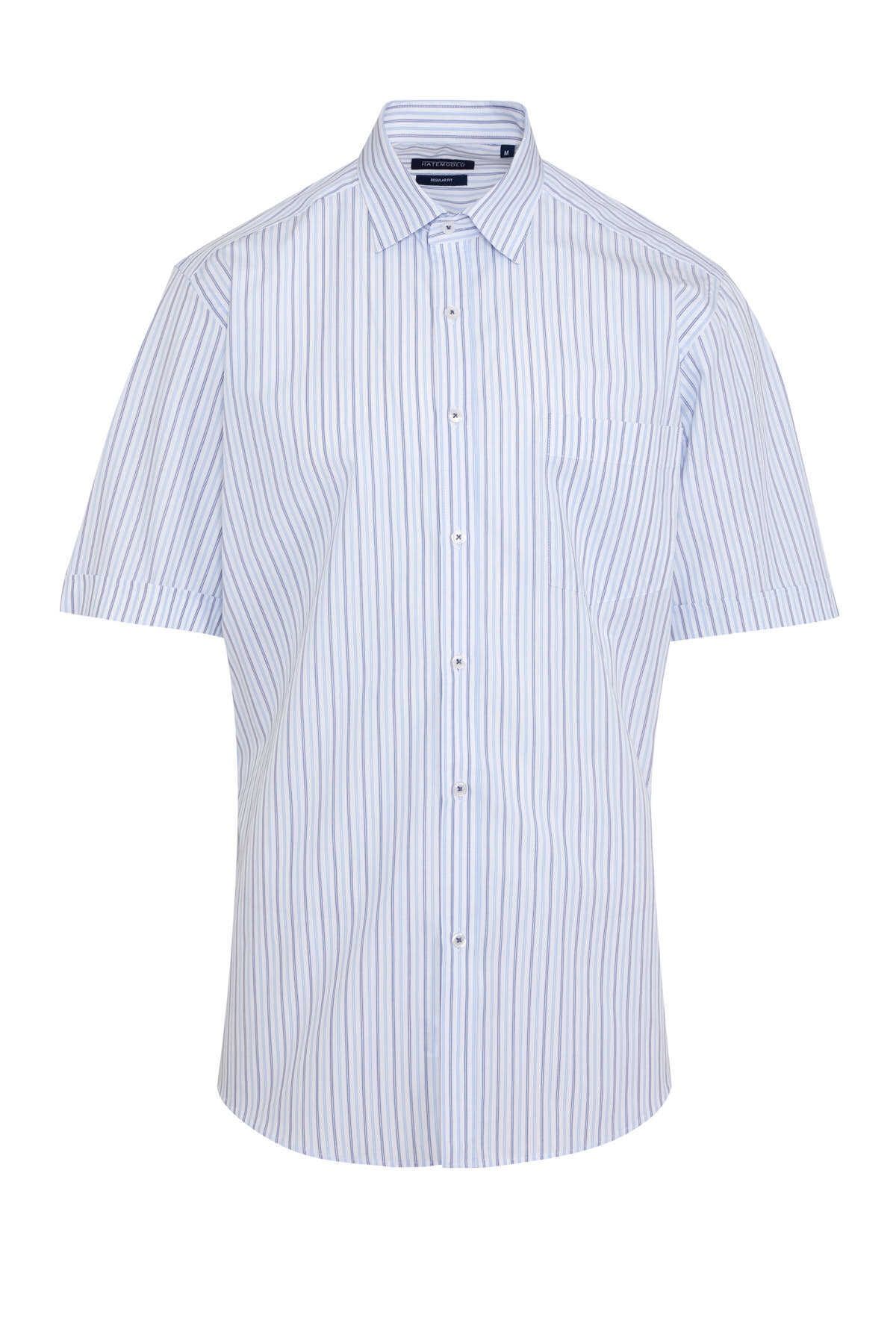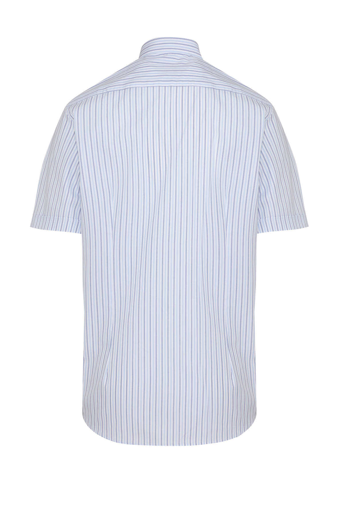 Mavi Klasik Fit Çizgili 100% Pamuk Slim Yaka Kısa Kol Klasik Gömlek