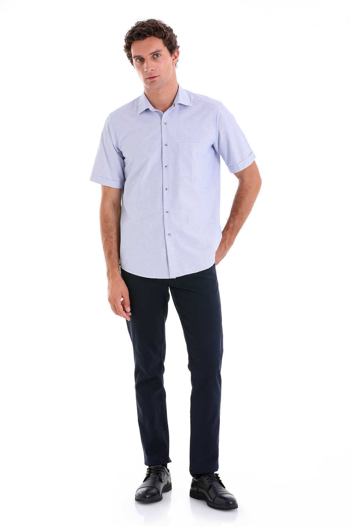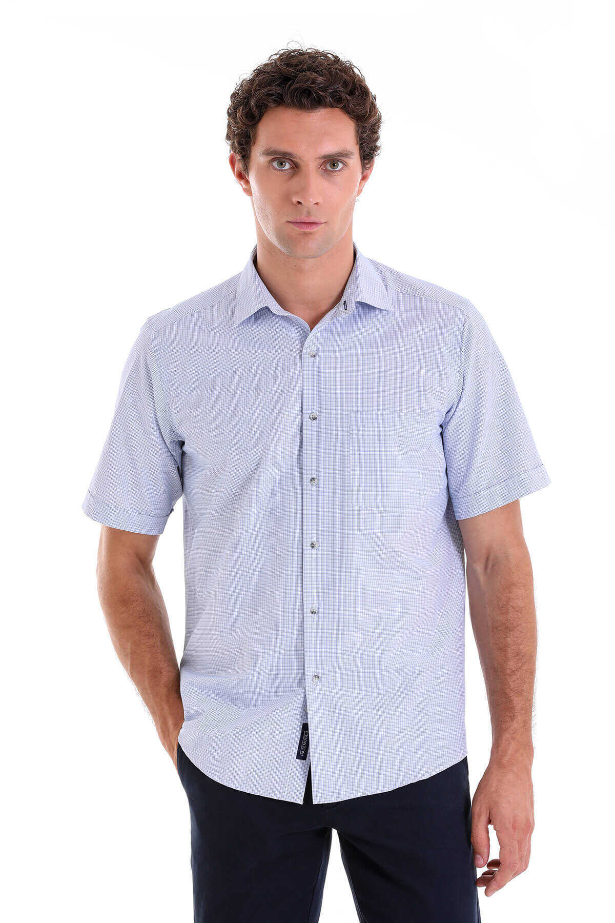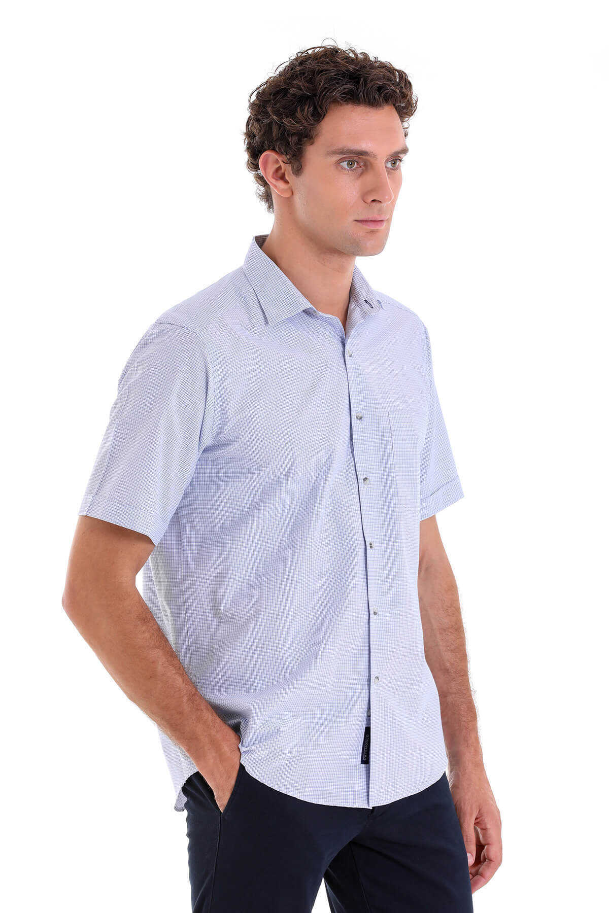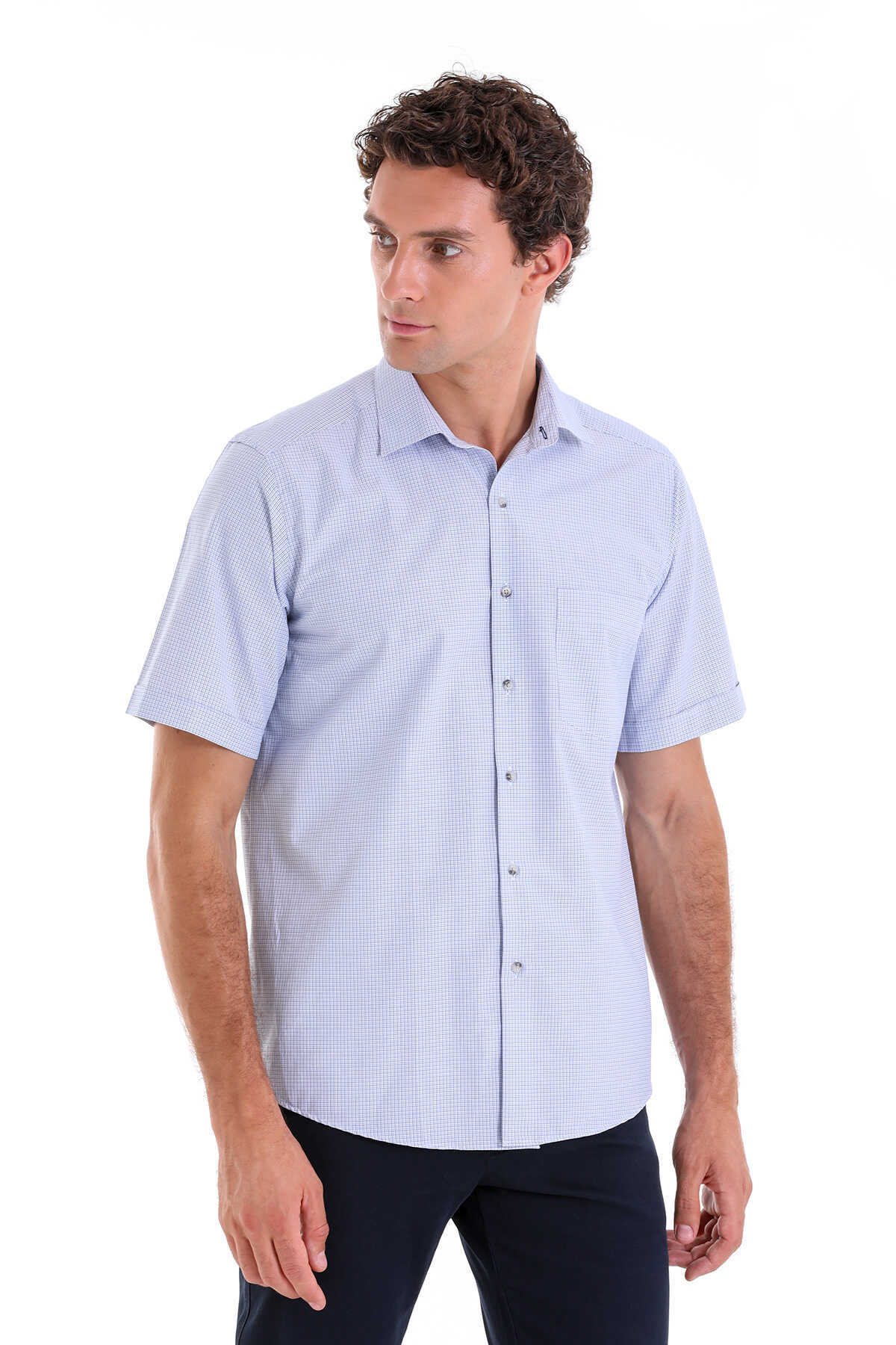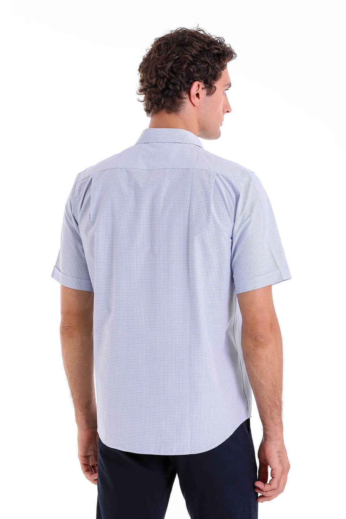 Mavi Regular Fit Kareli Pamuklu Slim Yaka Kısa Kol Klasik Gömlek