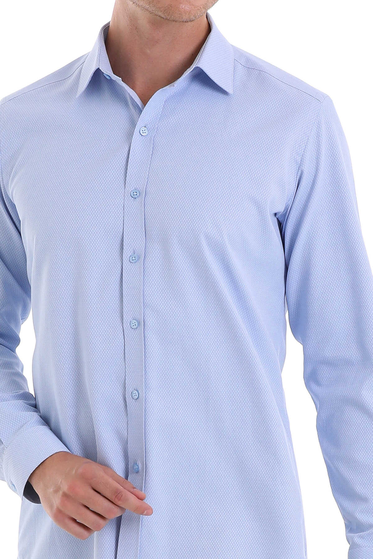 Mavi Slim Fit Desenli Pamuklu Slim Yaka Uzun Kollu Spor Gömlek - 7