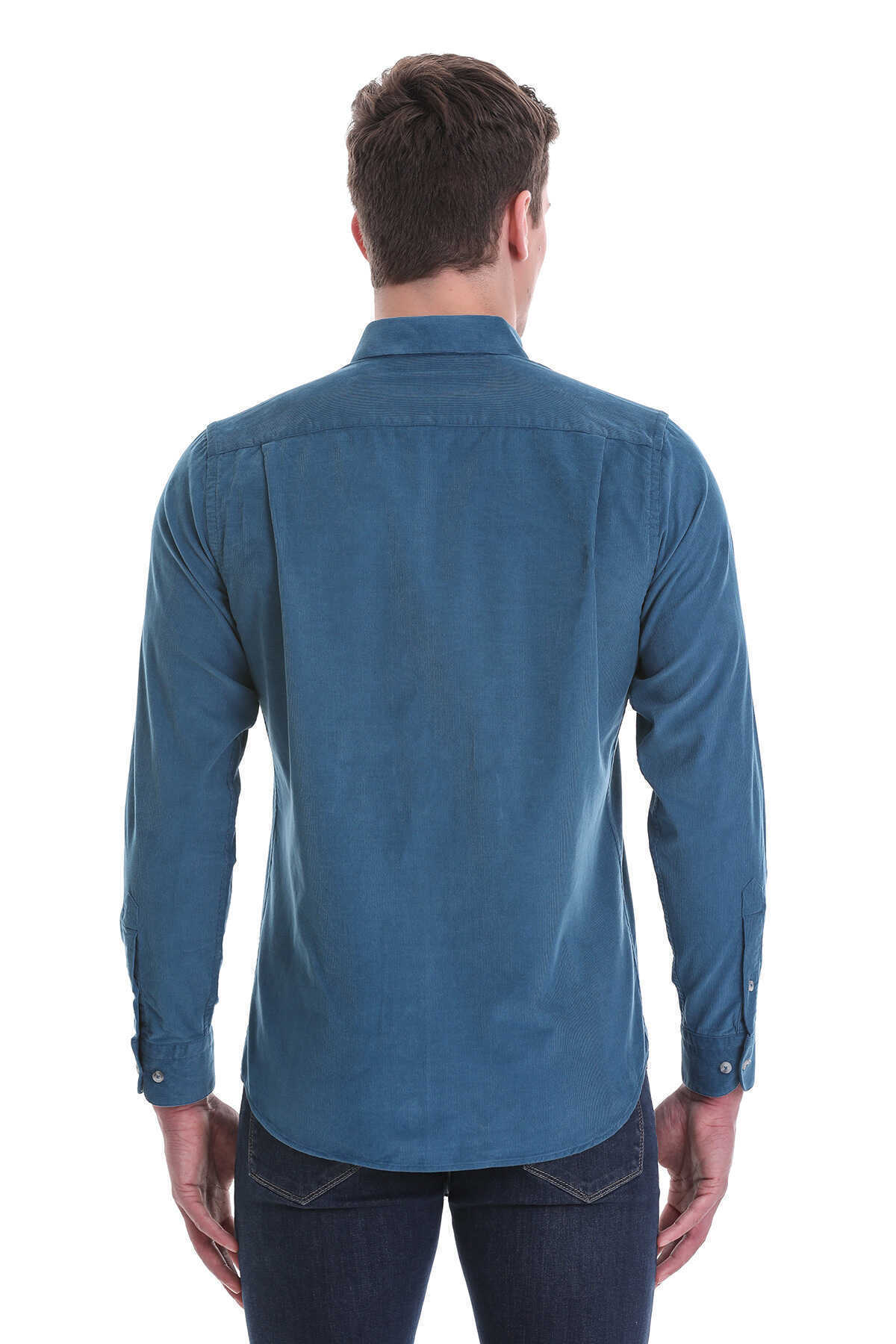 Mavi Slim Fit 100% Pamuklu Düğmeli Yaka Uzun Kollu Klasik Gömlek - 5