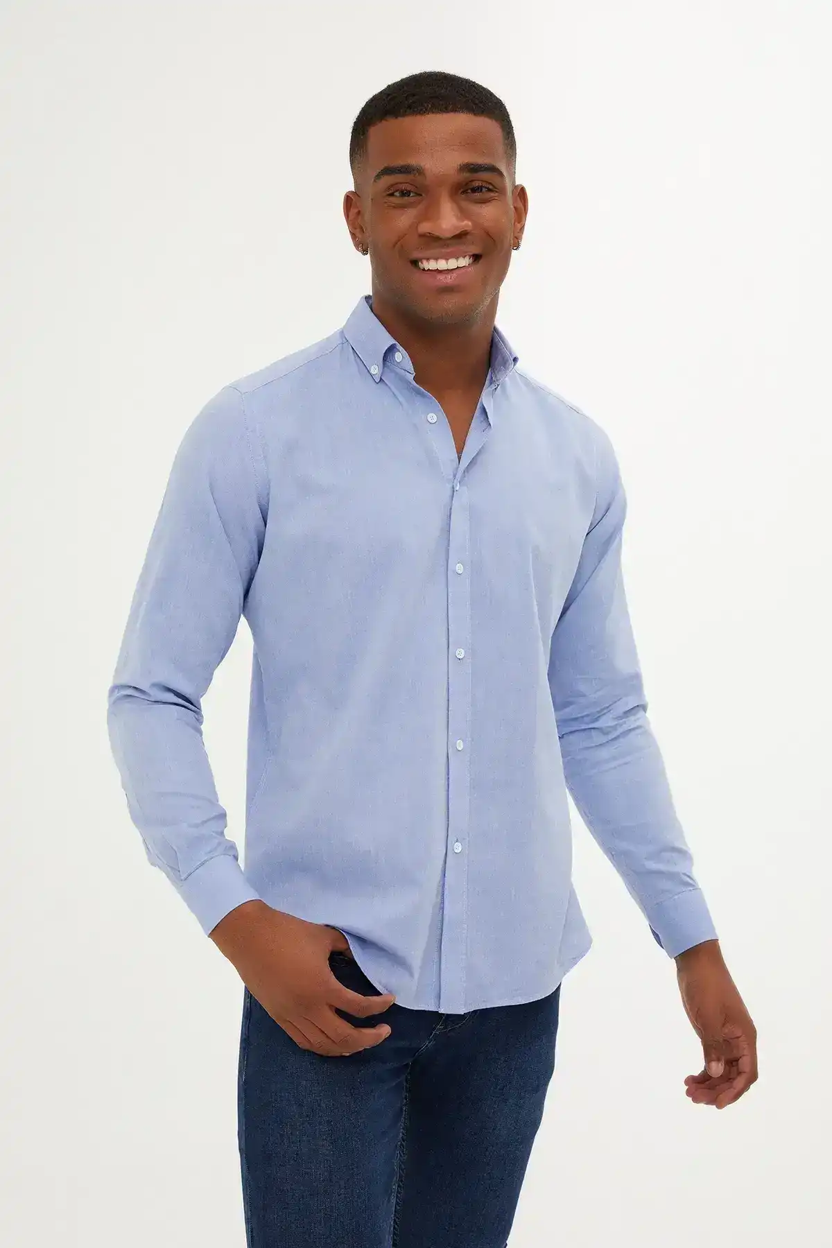 Mavi Slim Fit 100% Pamuk Düğmeli Yaka Uzun Kollu Casual Gömlek