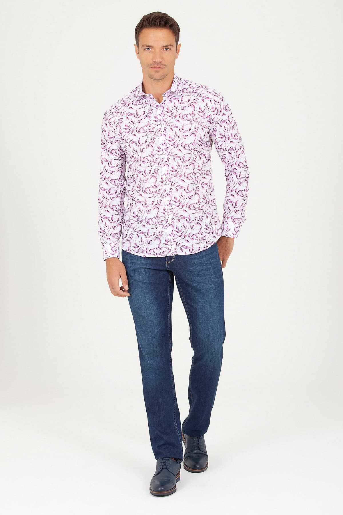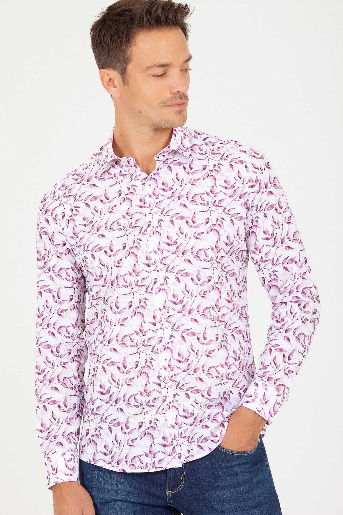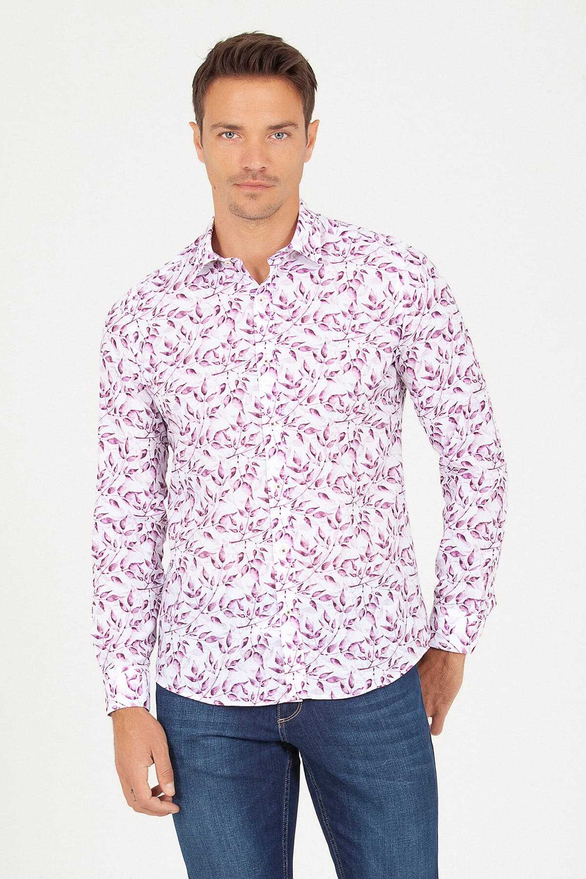Mor Slim Fit Baskılı 100% Pamuk Uzun Kol Spor Gömlek