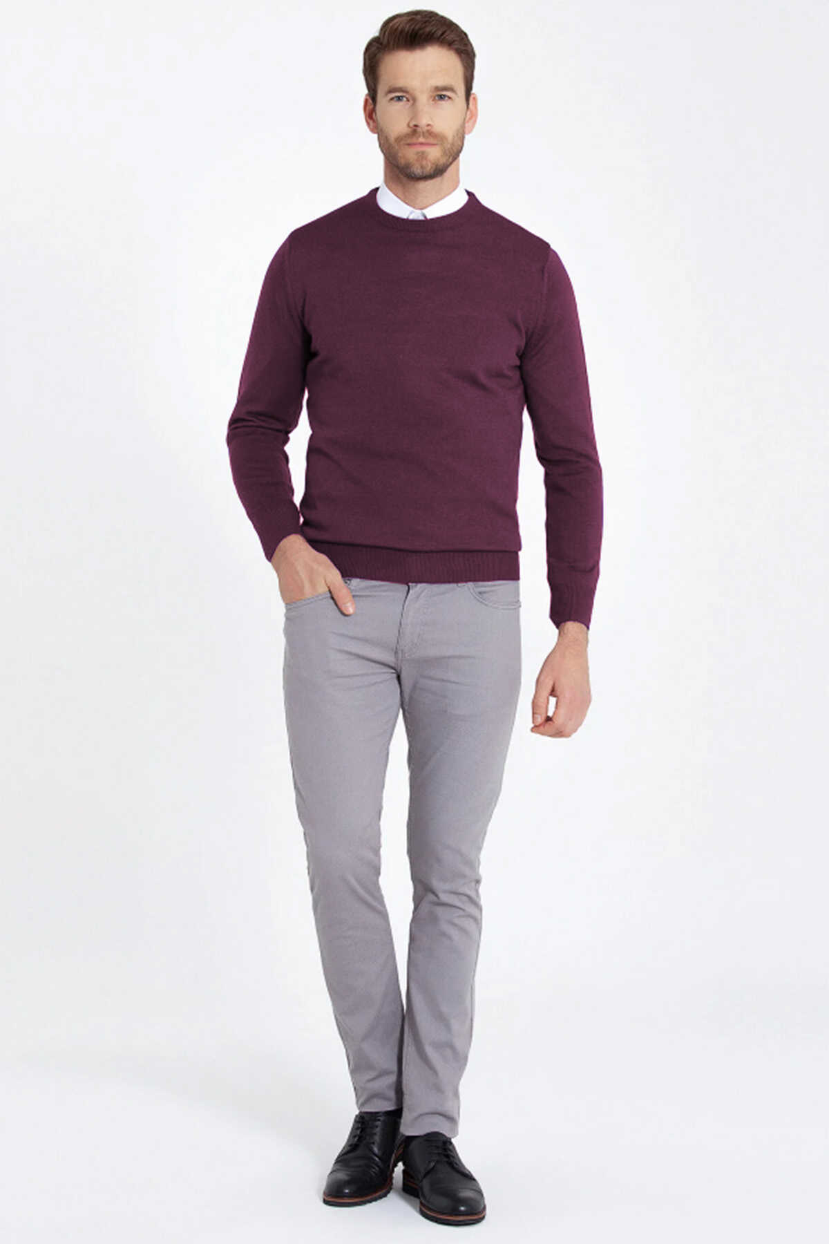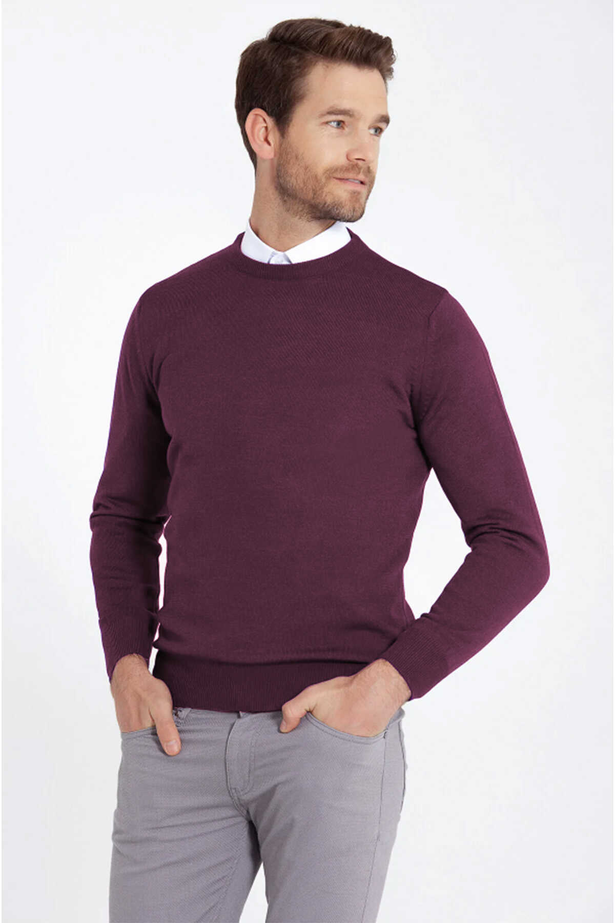 Mor Regular Fit Düz Bisiklet Yaka Triko Kazak