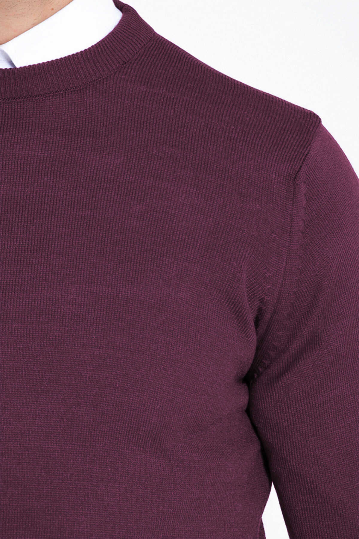 Mor Regular Fit Düz Bisiklet Yaka Triko Kazak - 4