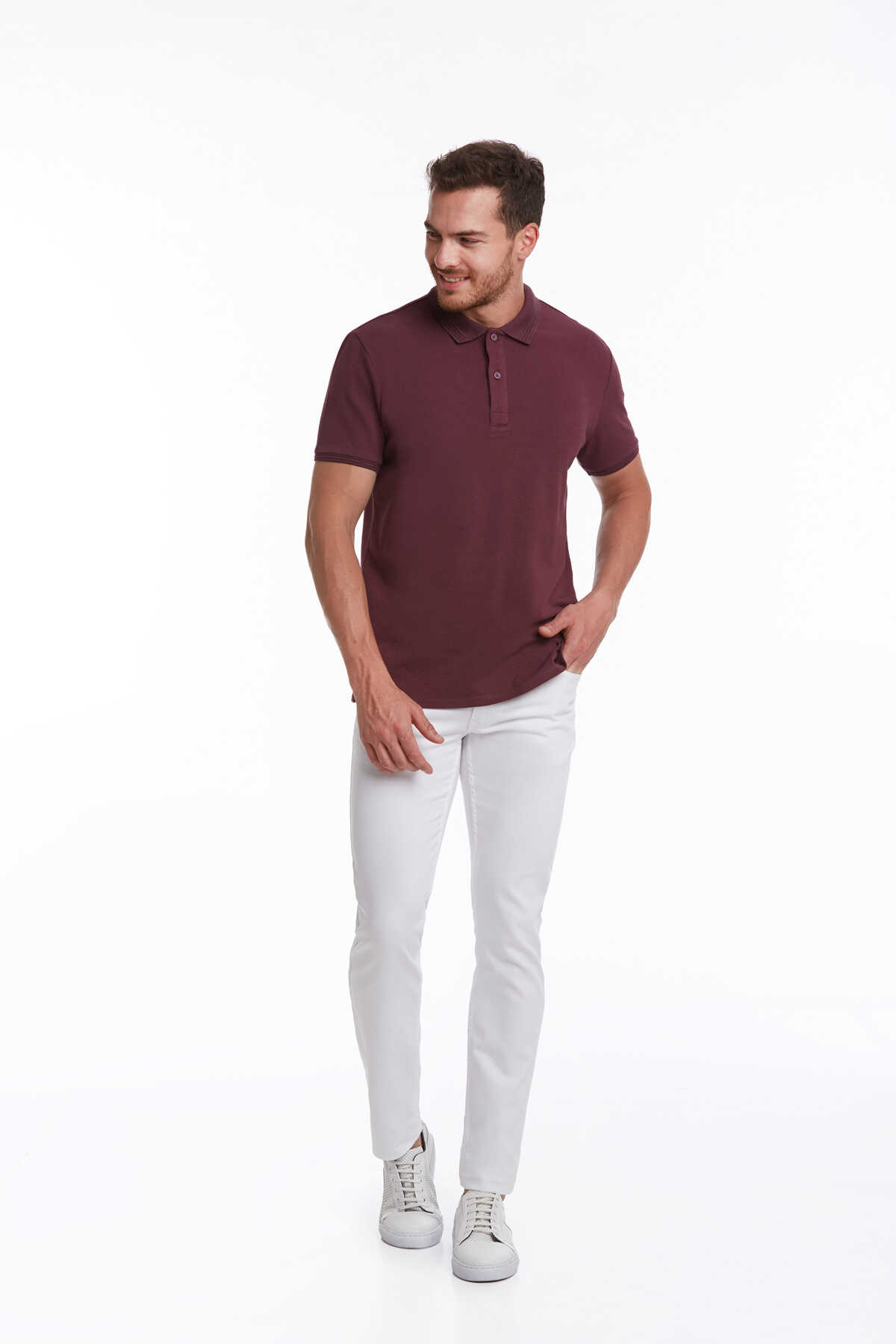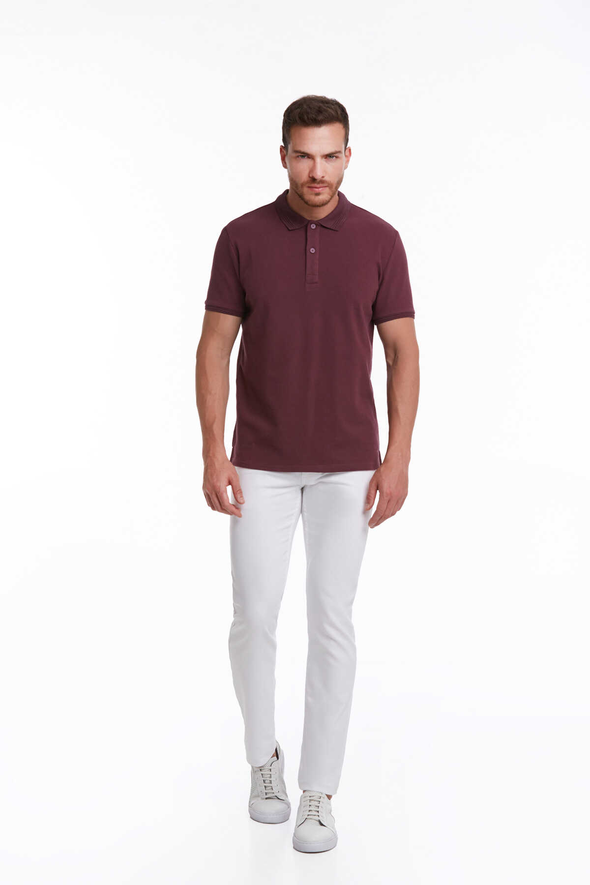 Kırmızı Regular Fit Petek Pamuklu Polo Yaka Tişört