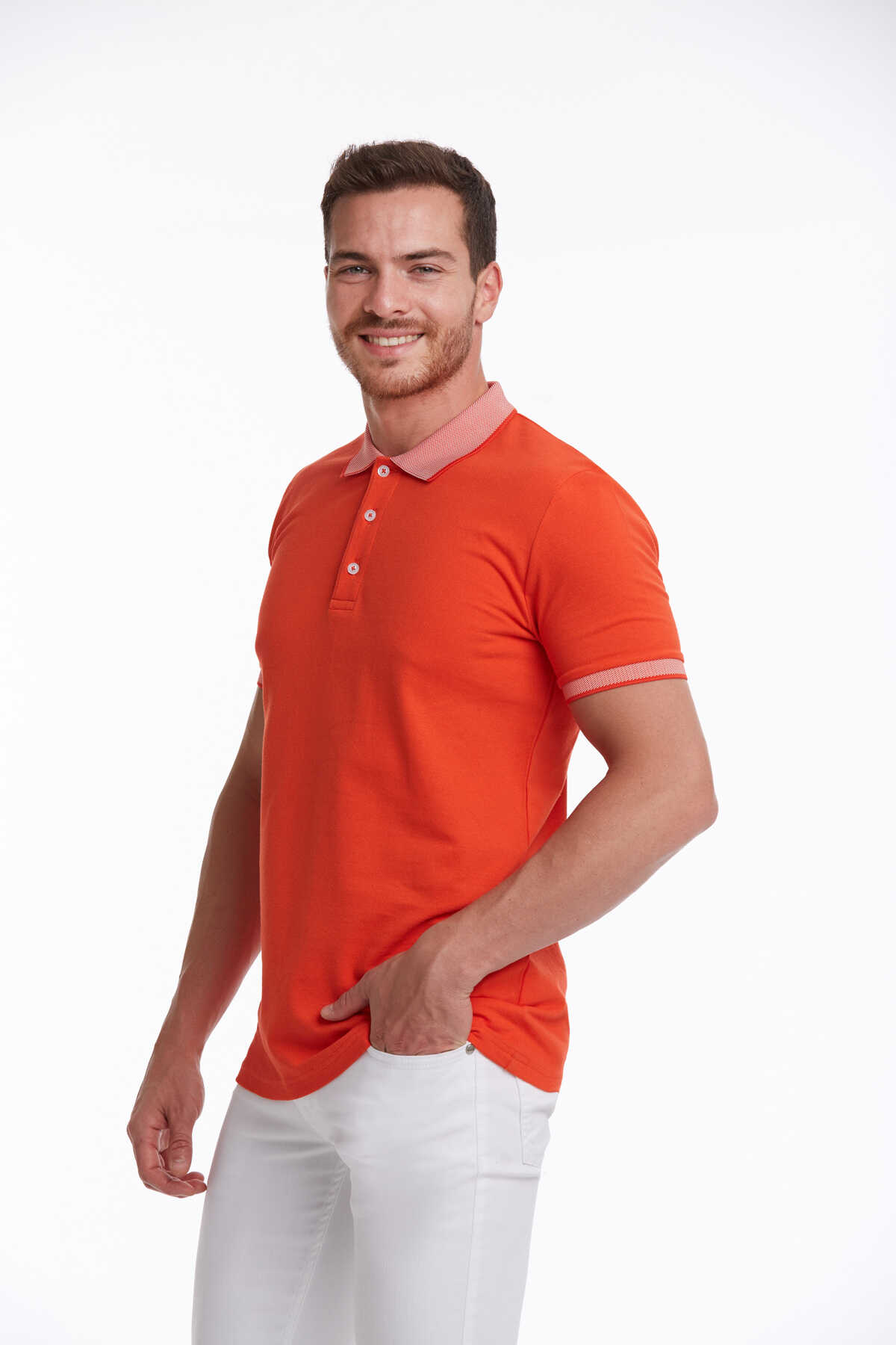 Turuncu Regular Fit 100% Pamuklu Polo Yaka Tişört - 10