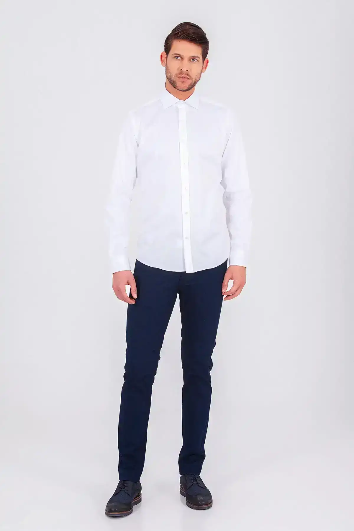 Pembe Slim Fit Baskılı 100% Pamuk Uzun Kol Saten Gömlek