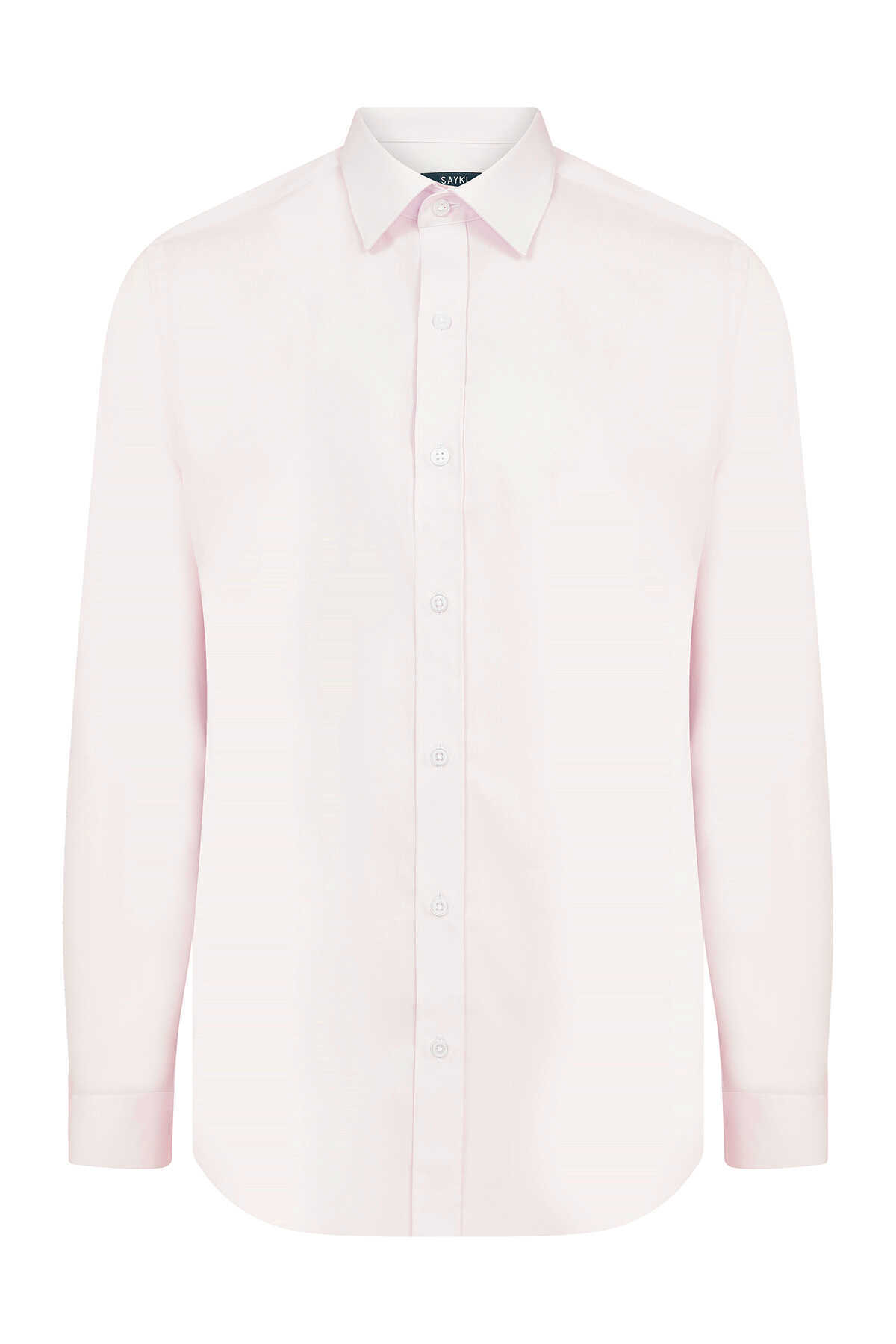 Pembe Slim Fit Düz 100% Pamuk Uzun Kol Spor Gömlek