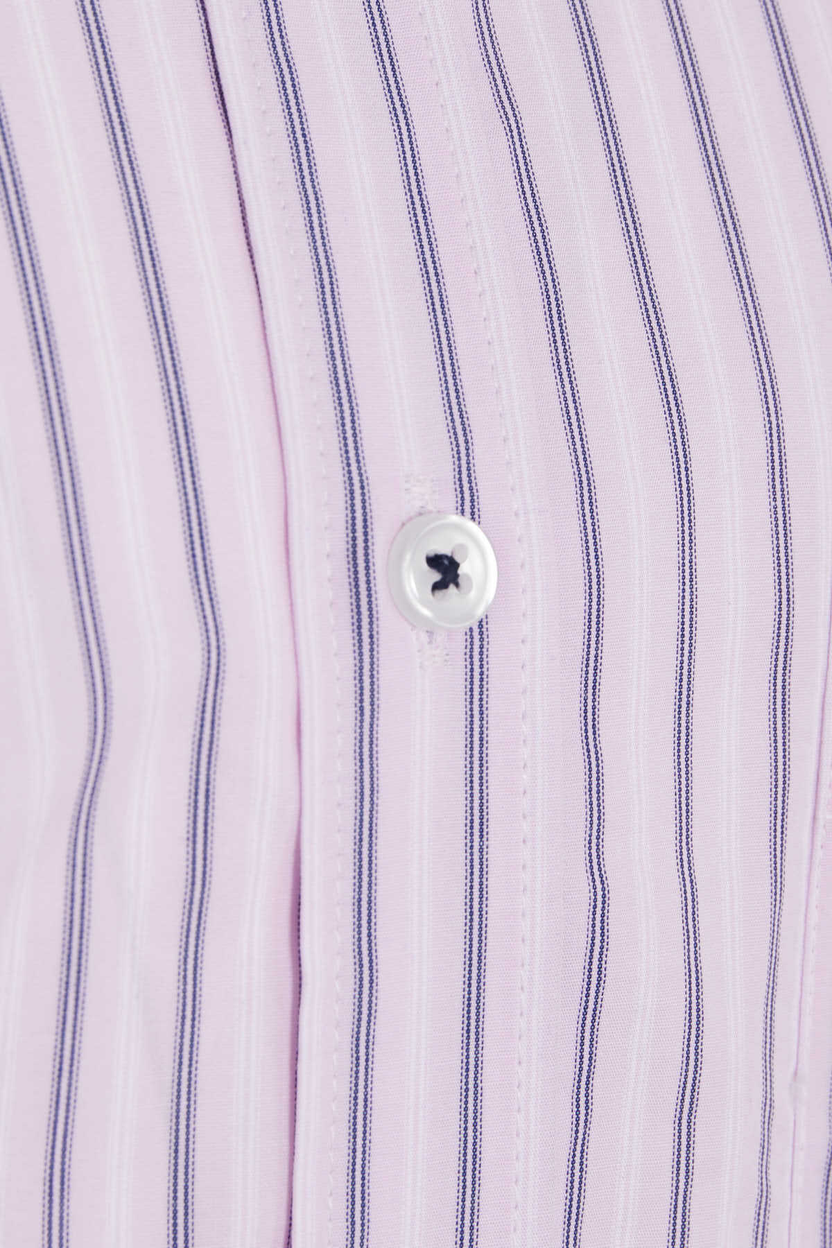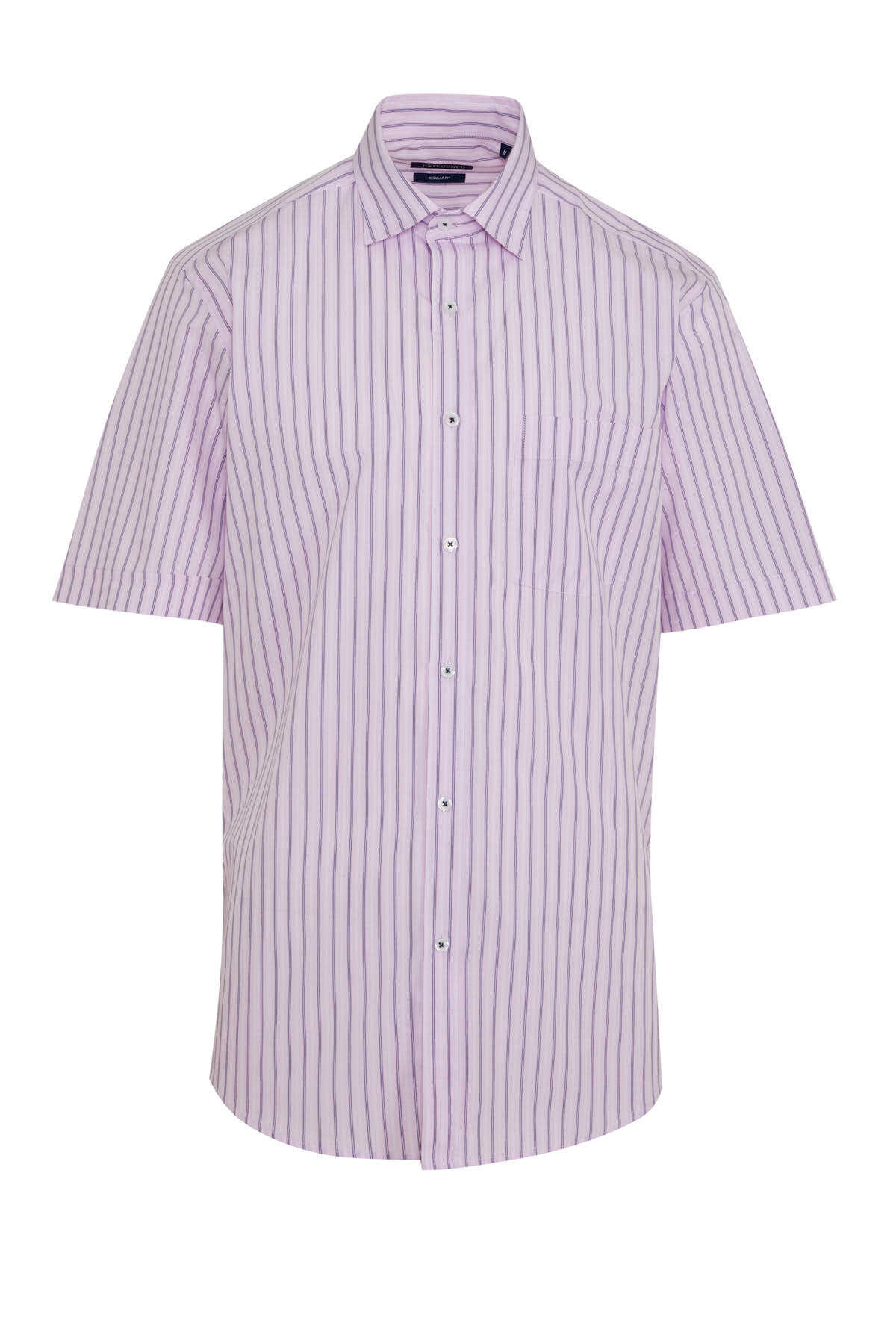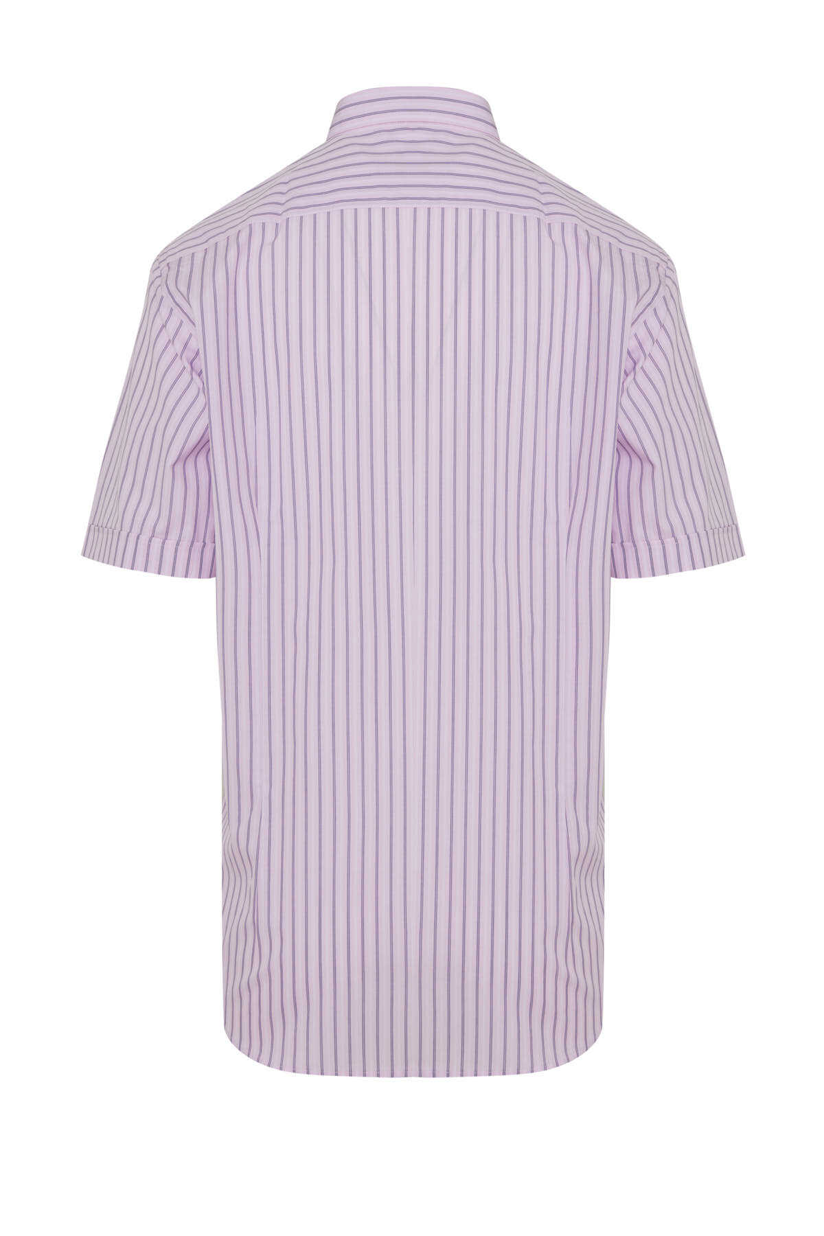 Pembe Klasik Fit Çizgili 100% Pamuk Slim Yaka Kısa Kol Klasik Gömlek
