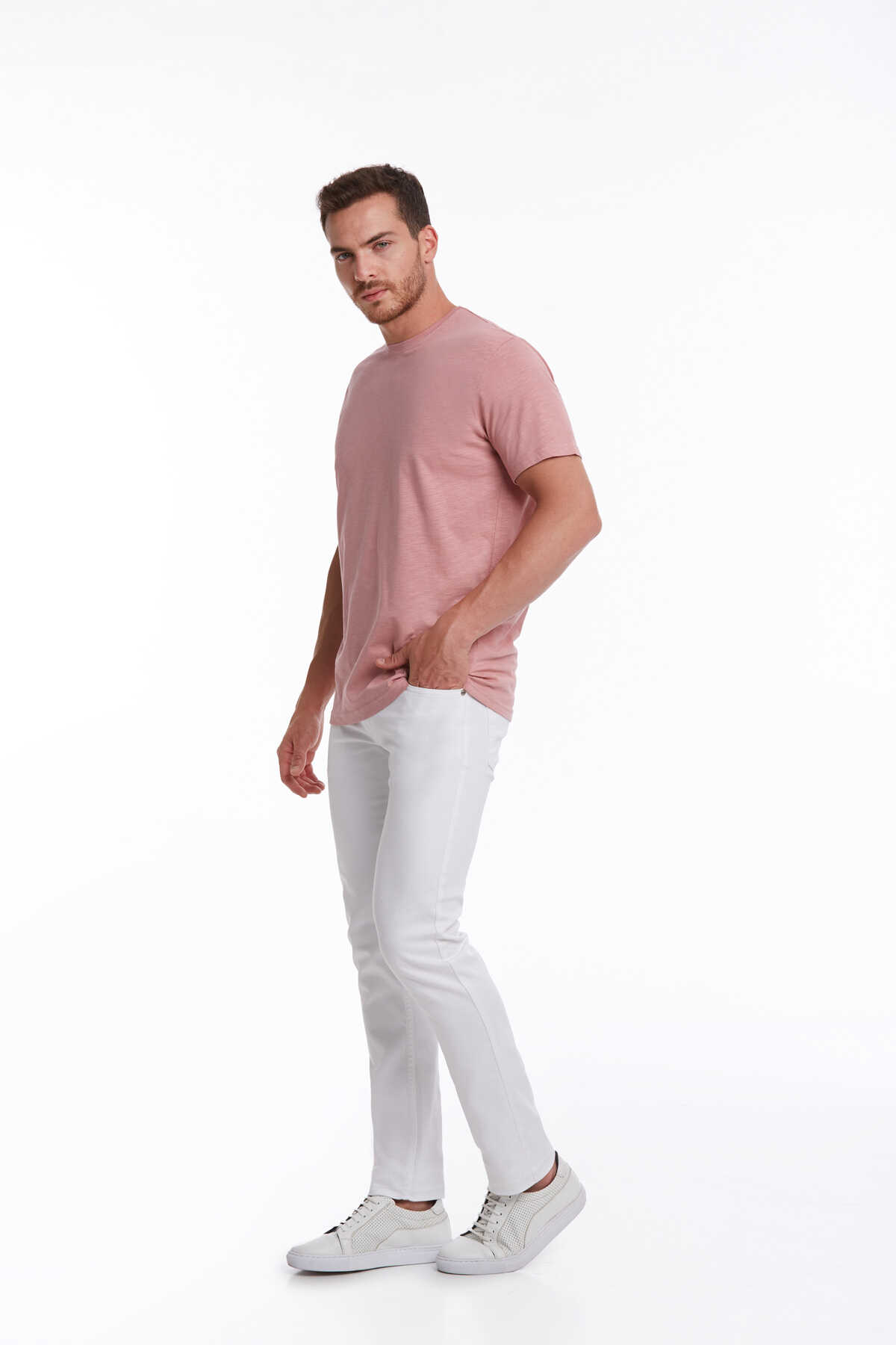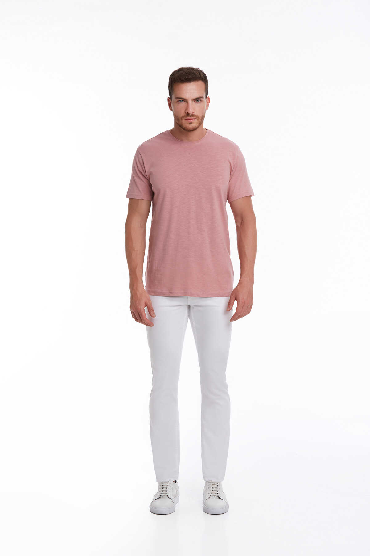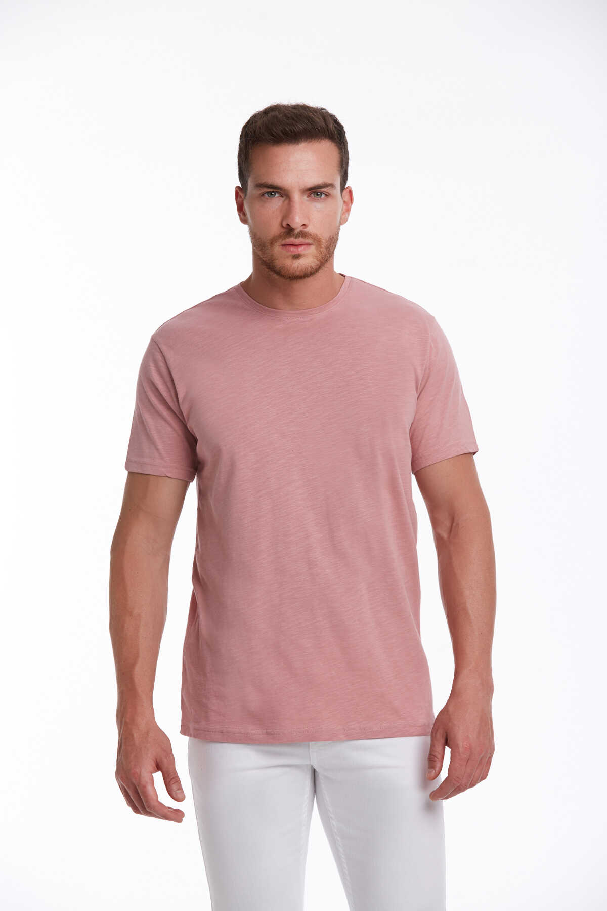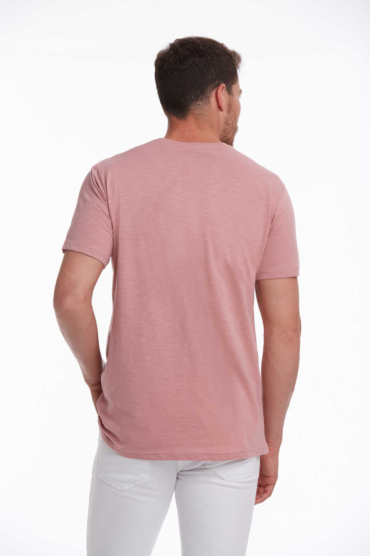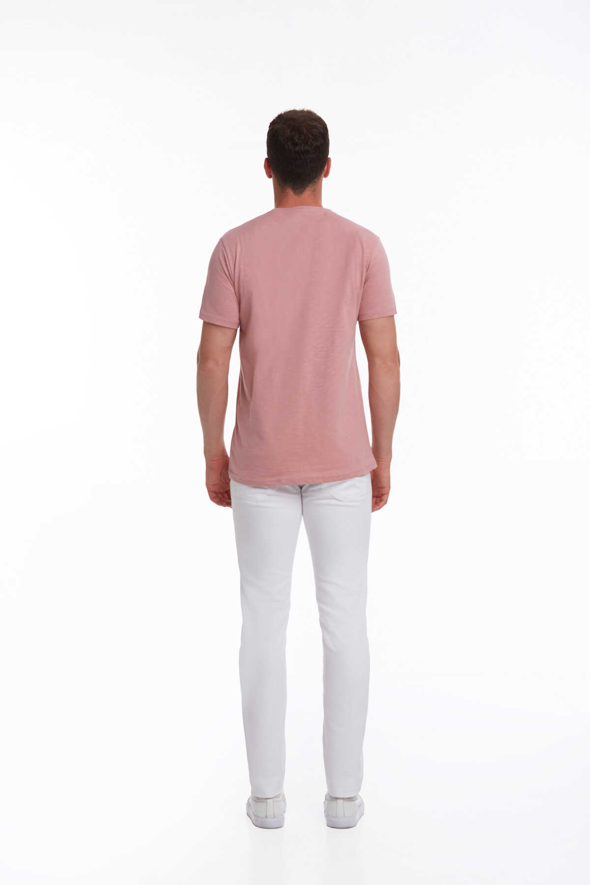 Pembe Slim Fit 100% Pamuk Bisiklet Yaka Tişört