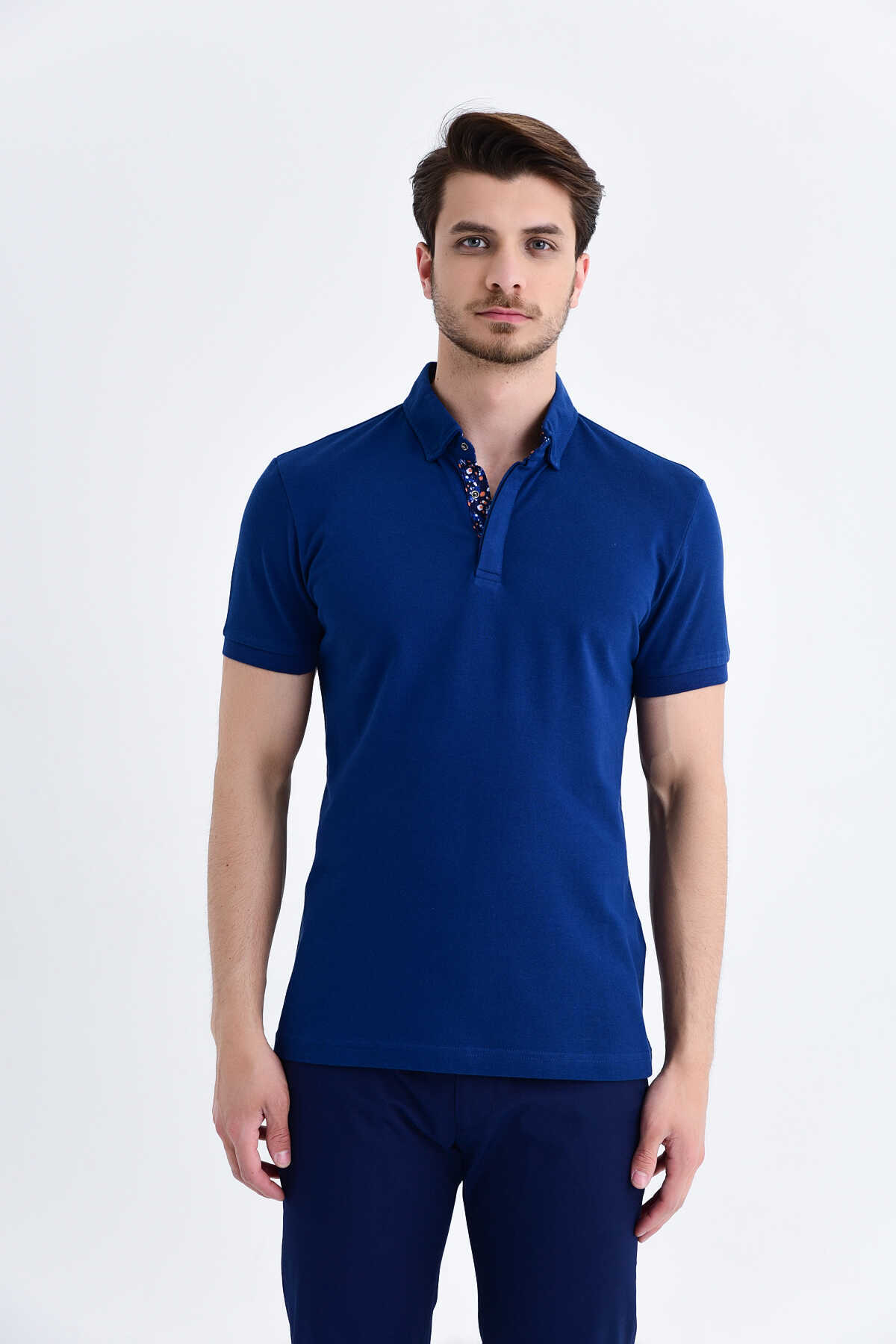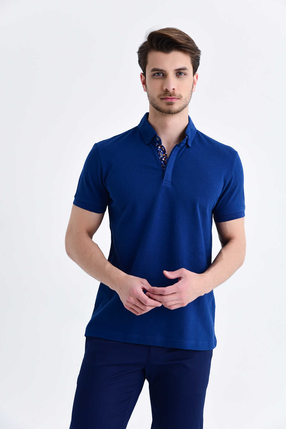 Lacivert Yaka Desenli Polo Yaka Tişört