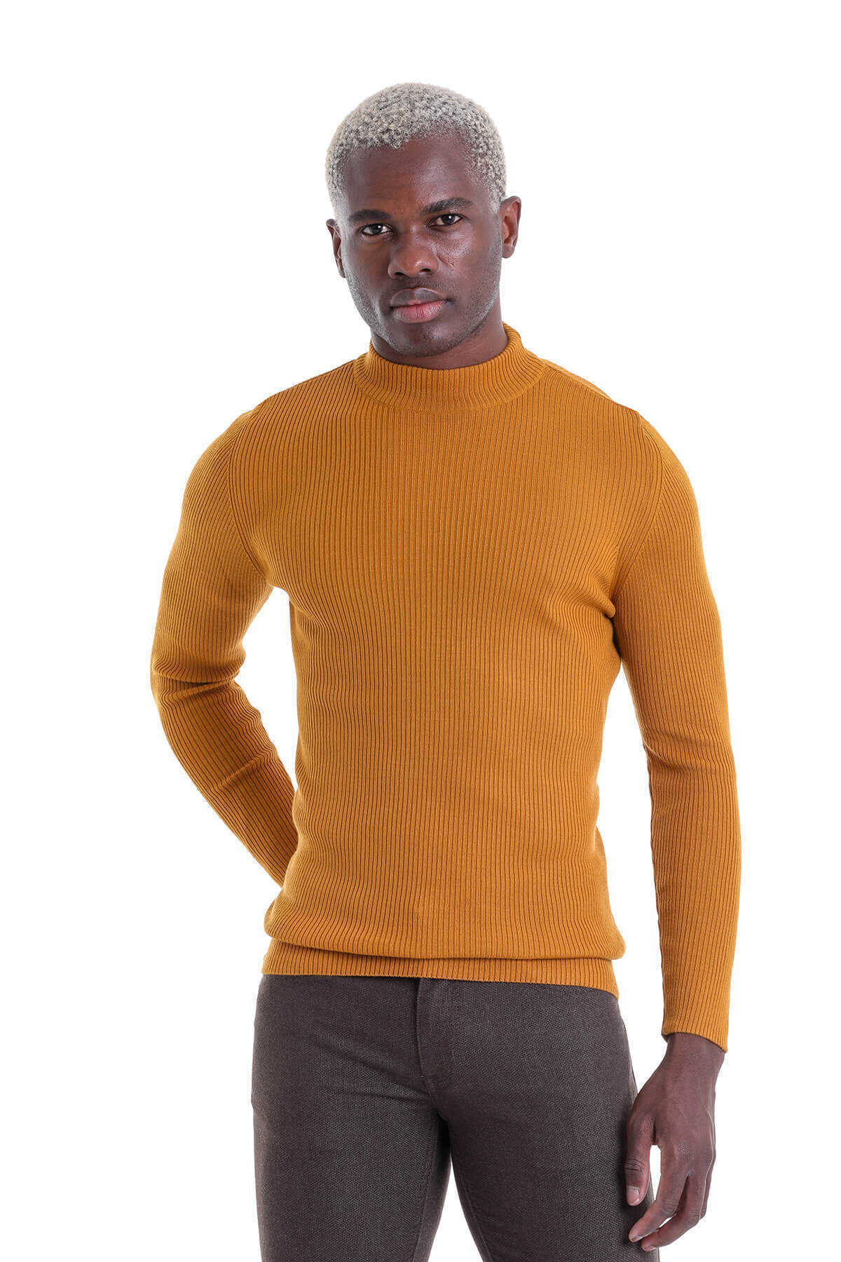 Safran Slim Fit Fitilli Yarım Balıkçı Yaka Yünlü Kazak