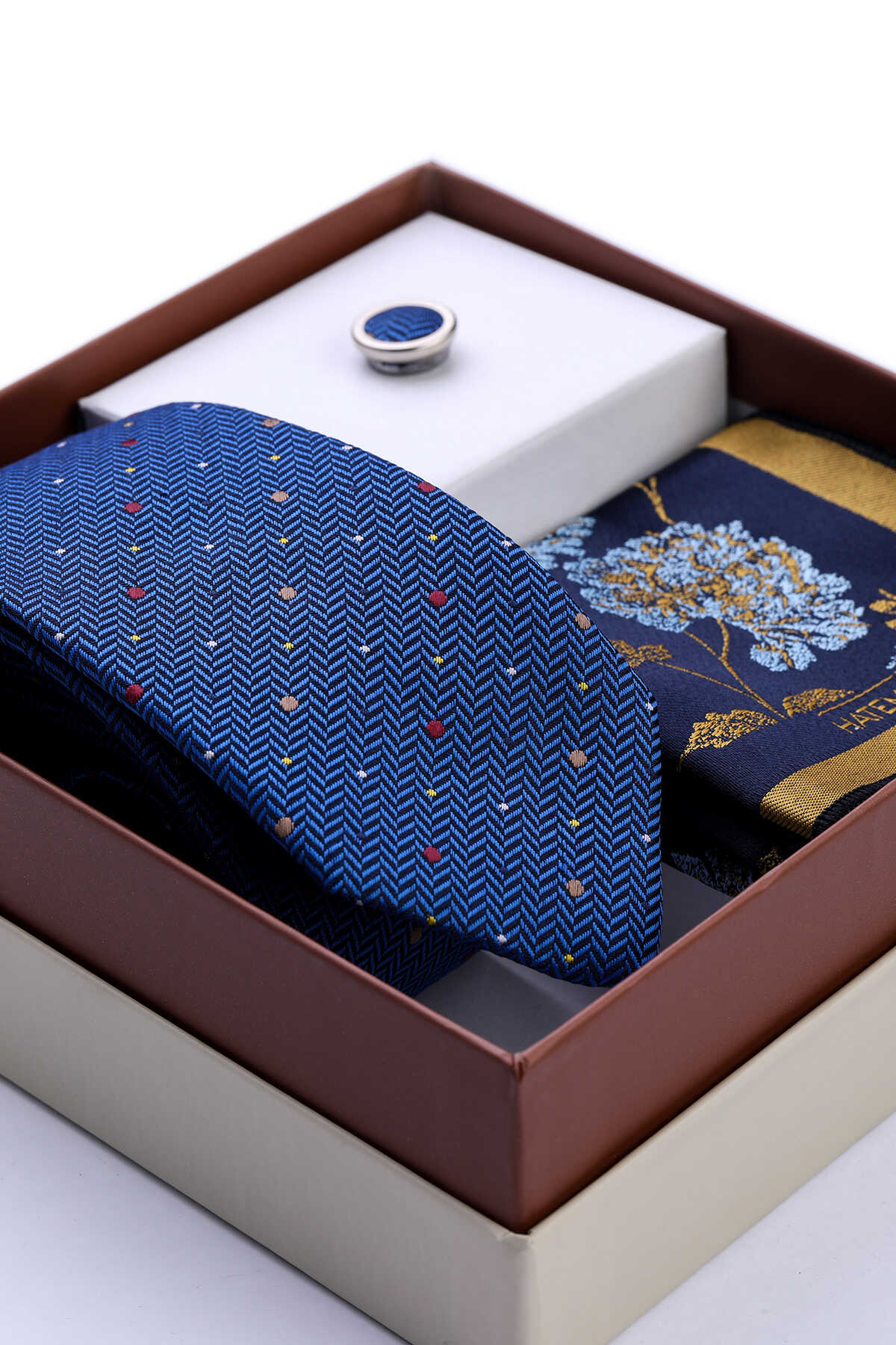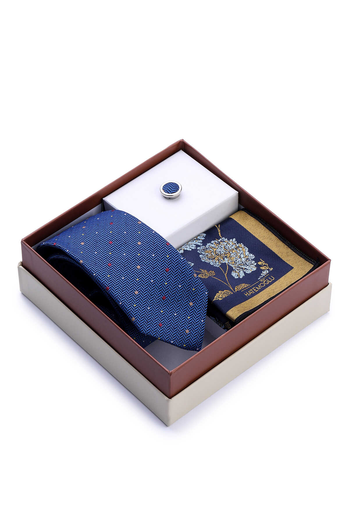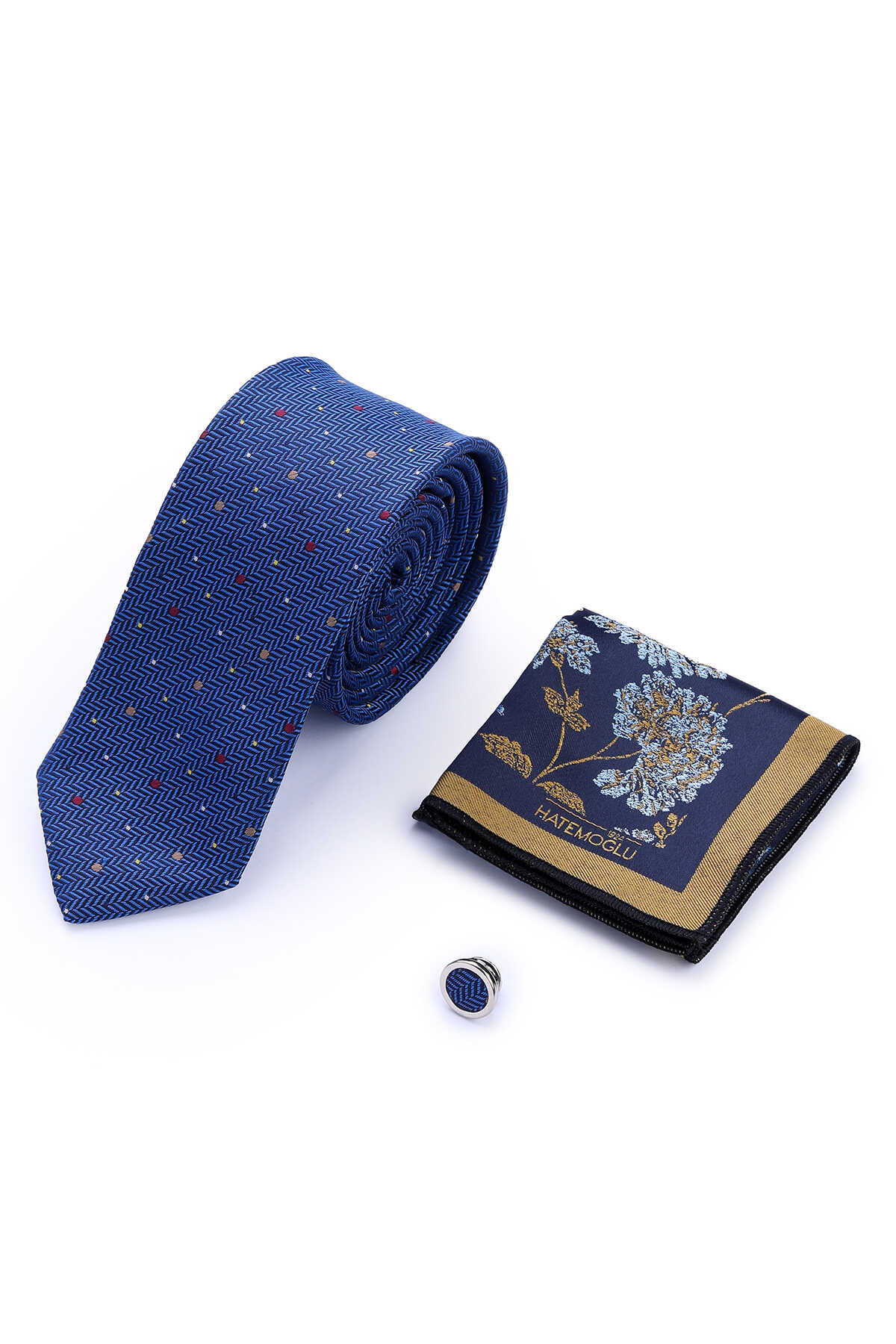 Saks Üçlü Yaka Rozeti Kravat Mendil Set