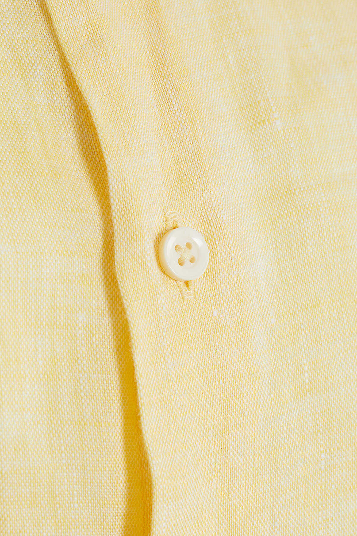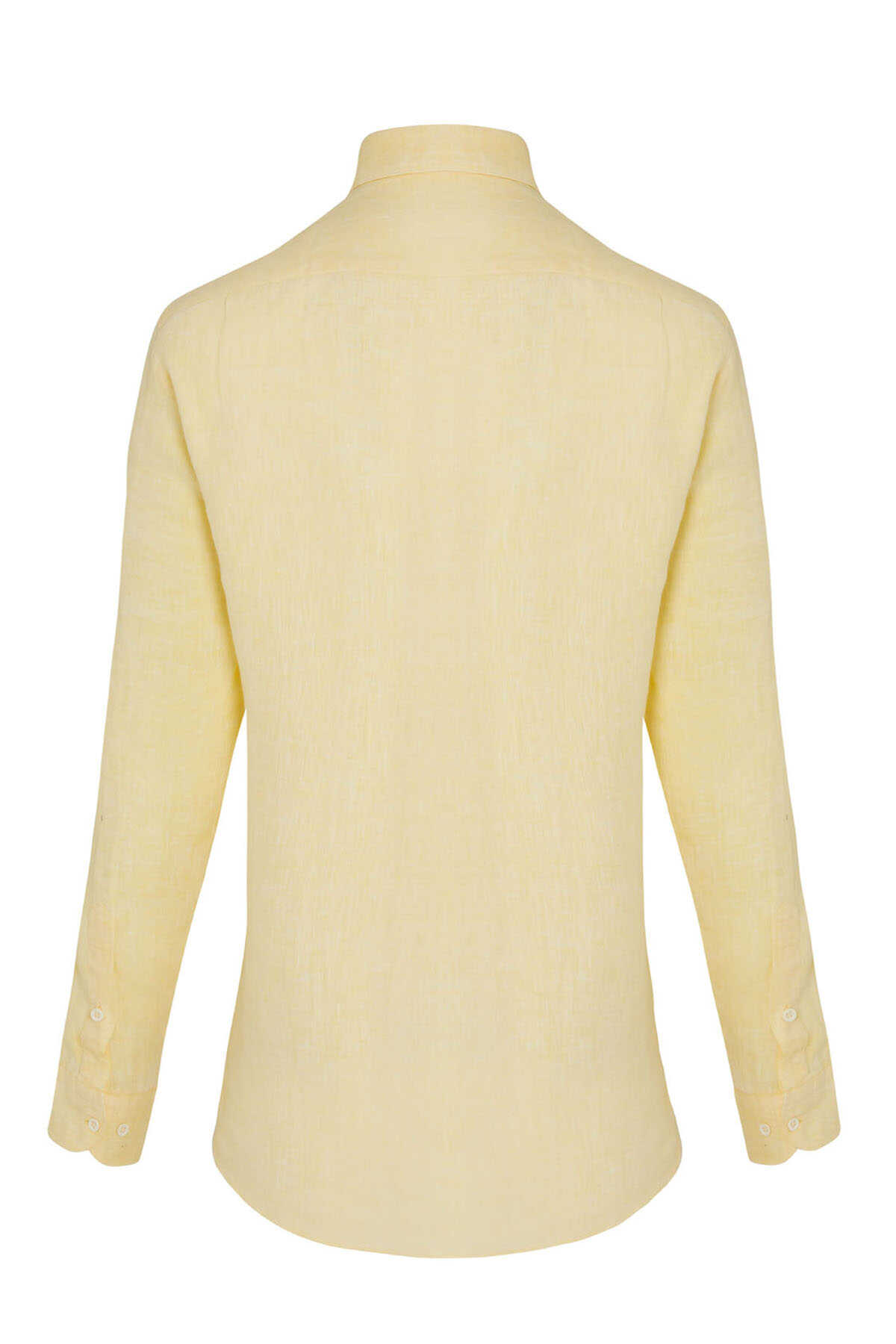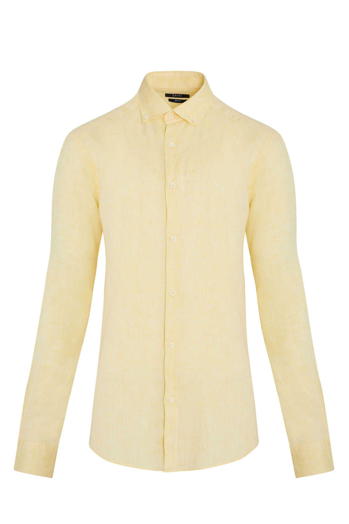 Sarı Regular Fit 100% Keten Uzun Kol Gömlek