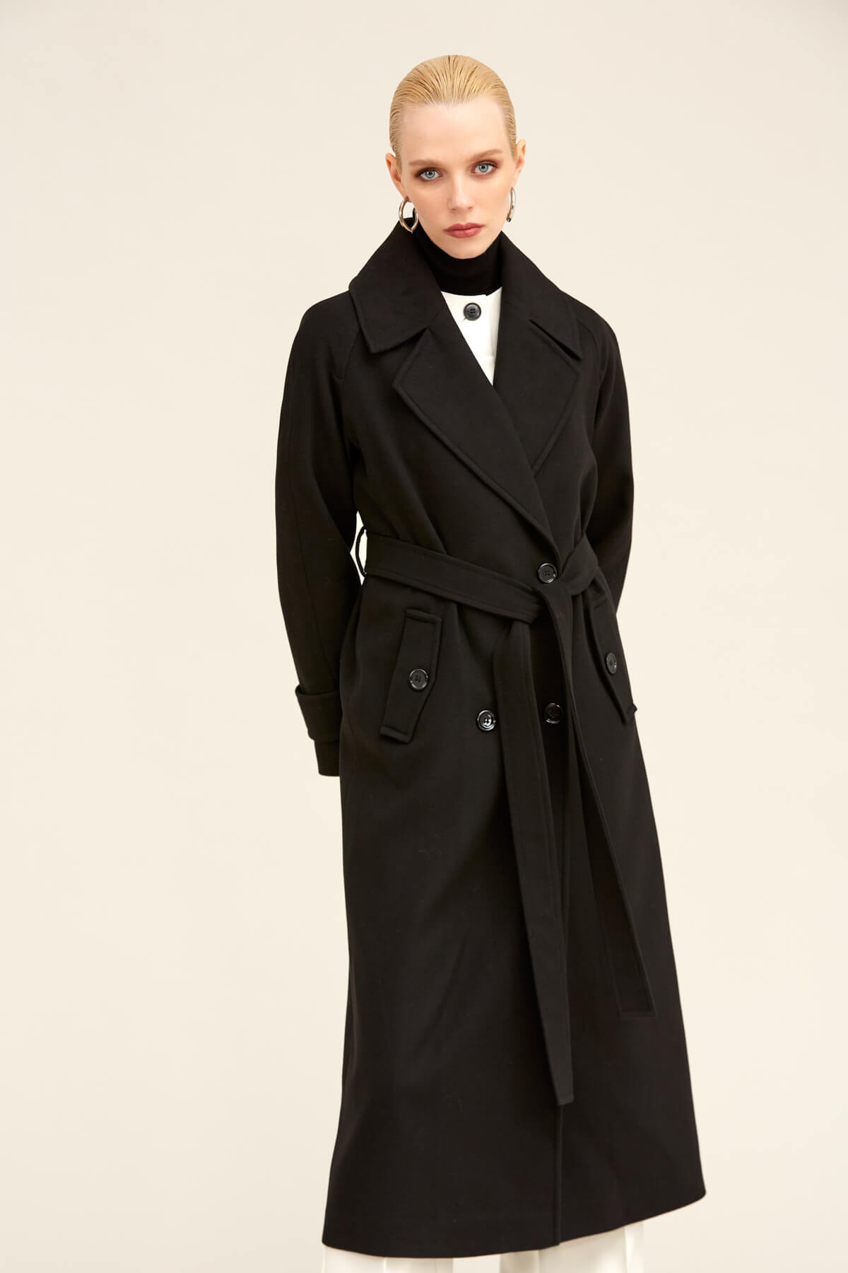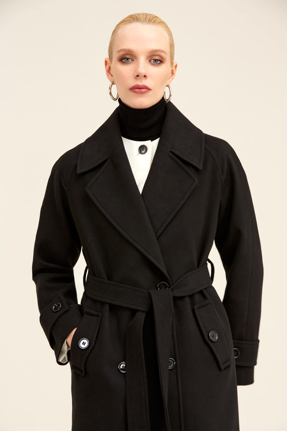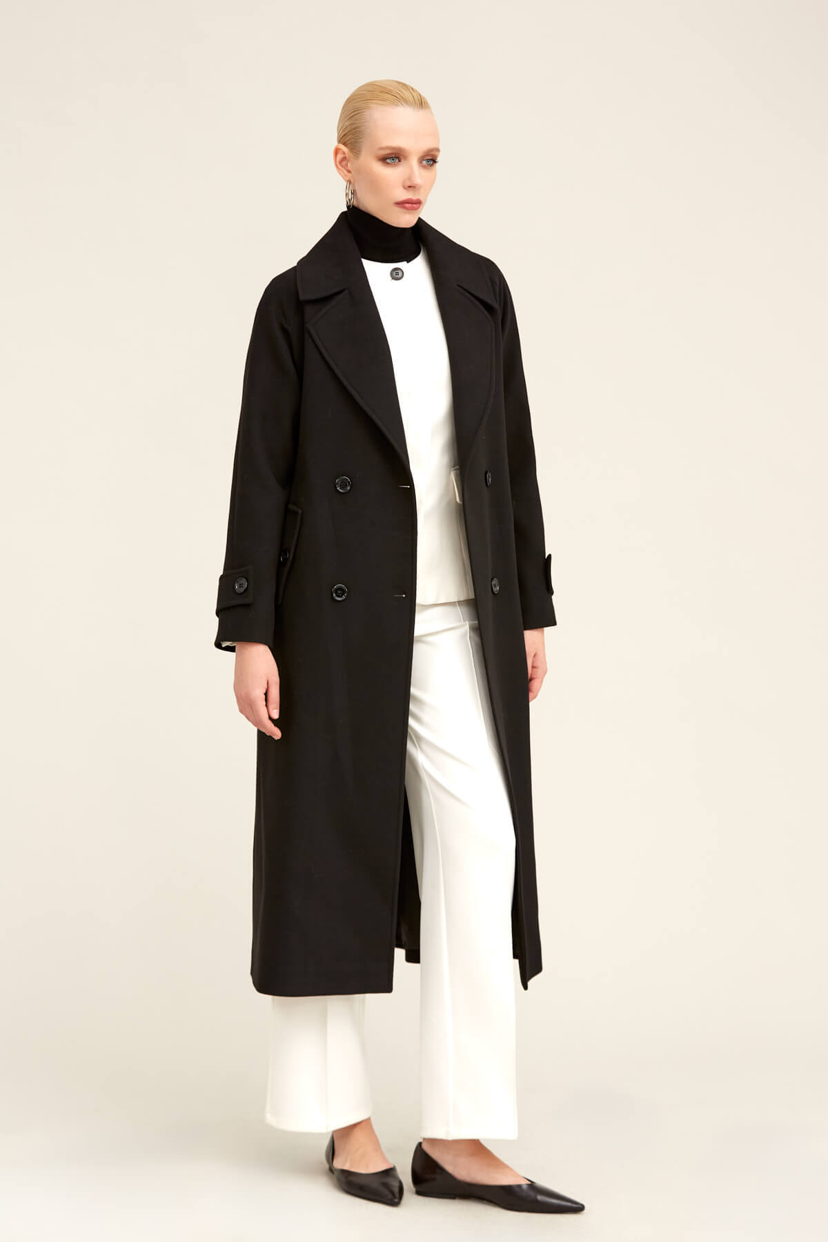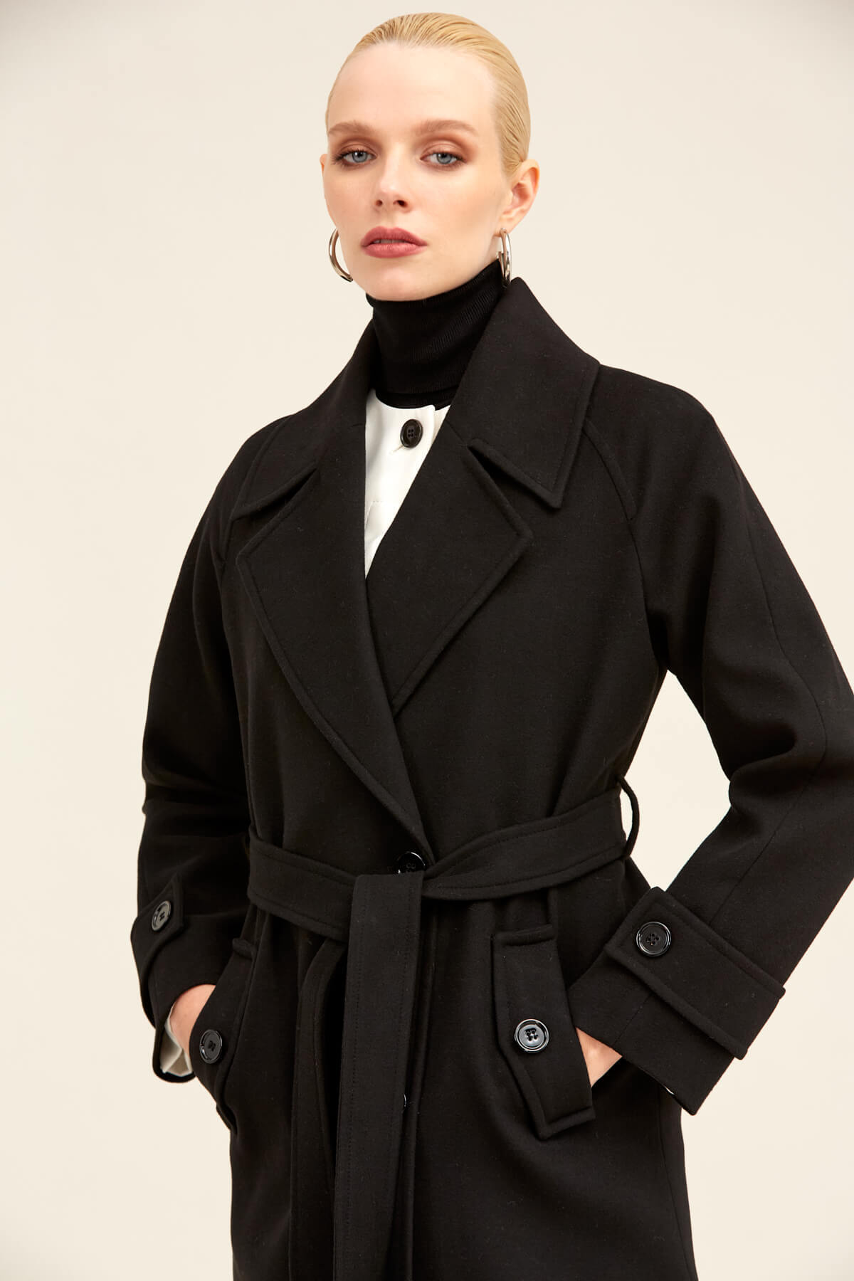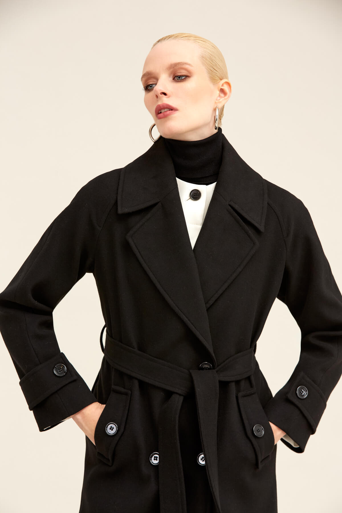 Saykı Woman Siyah Dinamik Fit Ceket Yaka Kaşe Yünlü Manto - 26