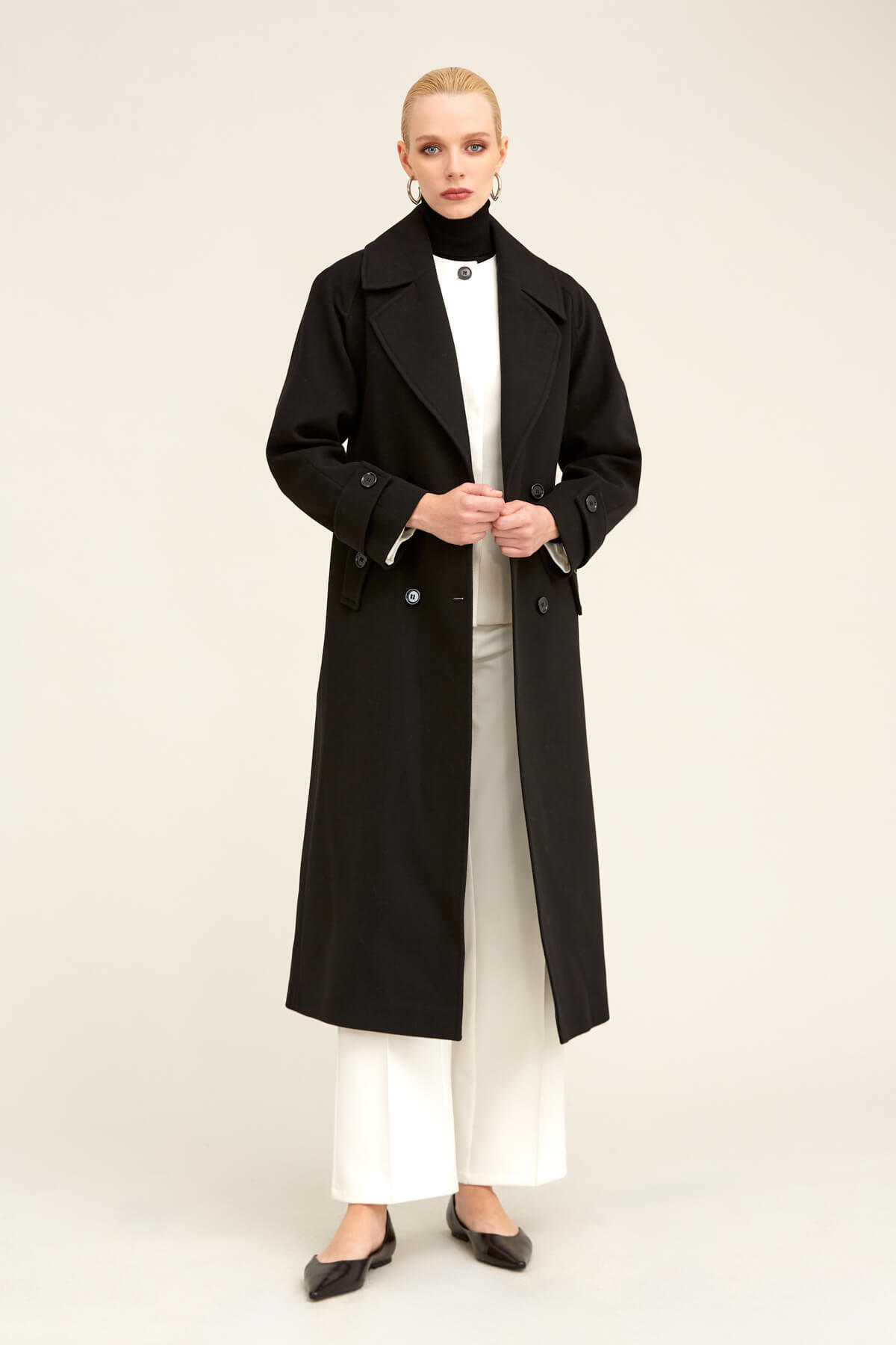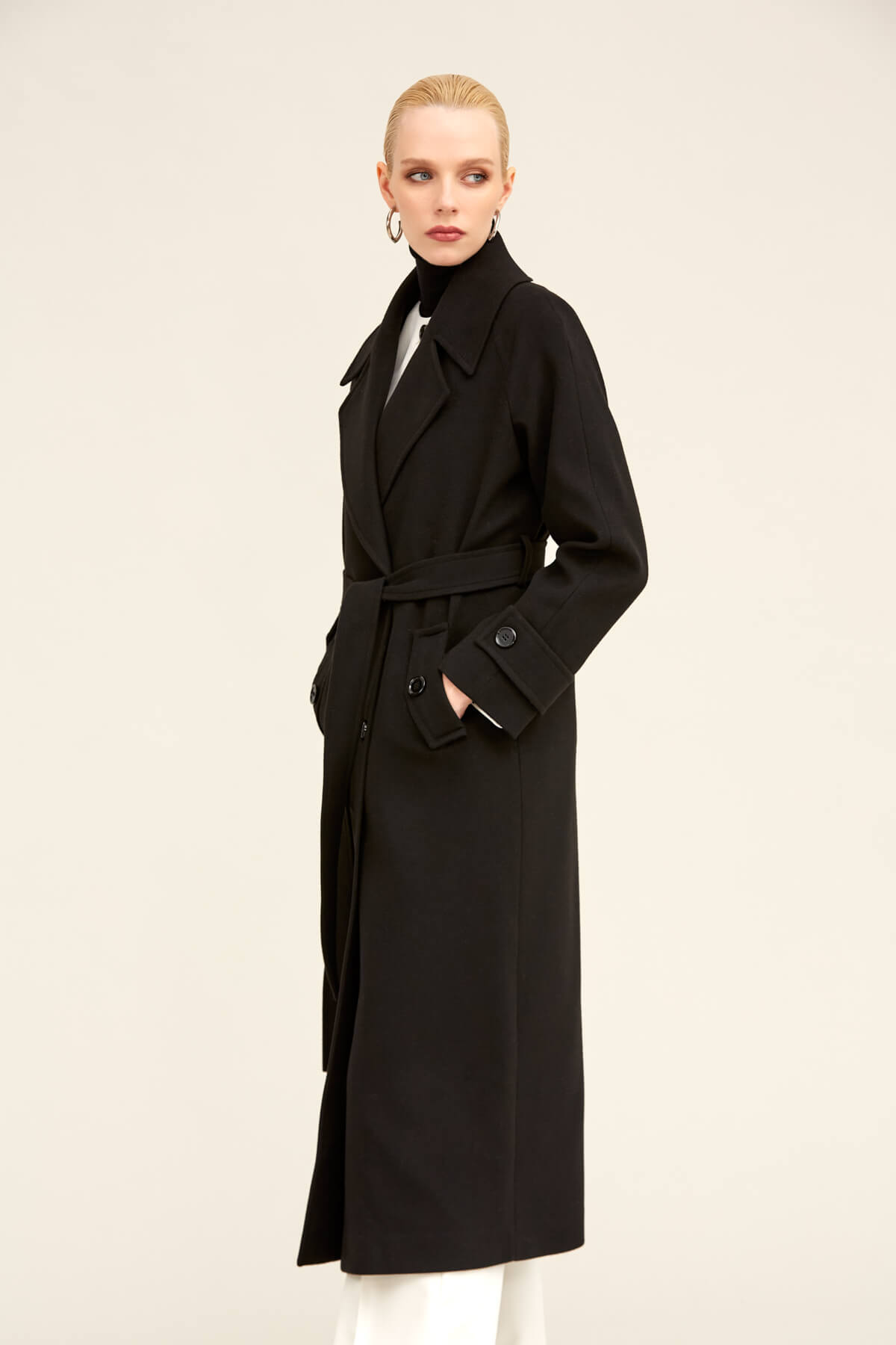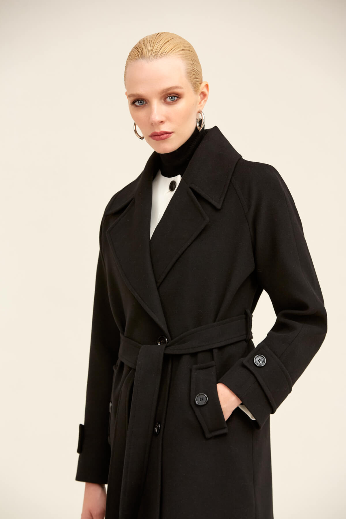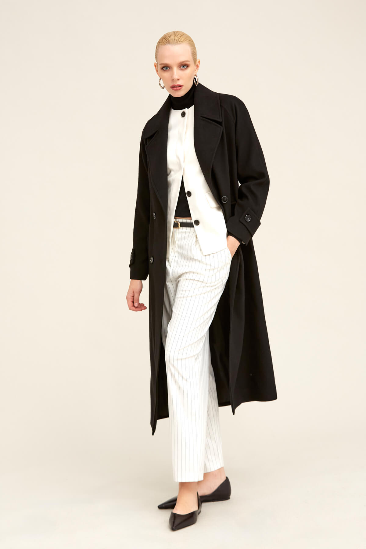 Saykı Woman Siyah Dinamik Fit Ceket Yaka Kaşe Yünlü Manto - 26